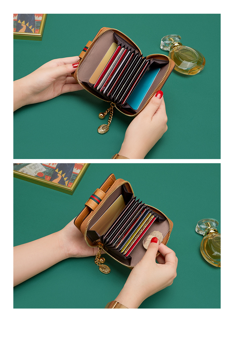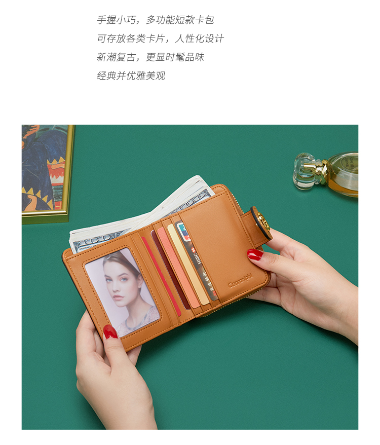 CONRANIPHI官网 卡包女新短款多卡位小巧女士卡包大容量零钱包银行卡包钱夹七夕情人节生日礼物送女友送老婆实用 石英棕
