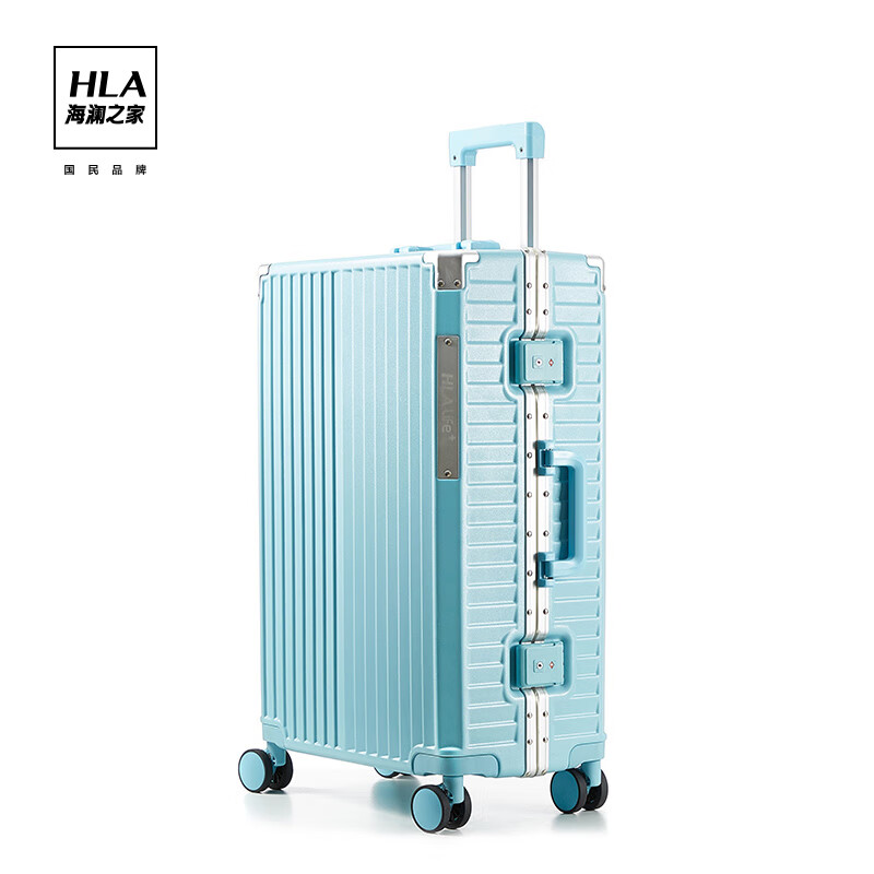 海澜之家行李箱男女学生铝框拉杆箱旅行登机密码托运皮箱 冰川蓝24英寸