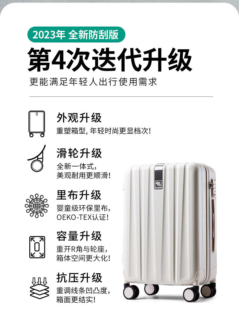汉客(HANKE)行李箱男拉杆箱女旅行箱80多升大容量26英寸黛蓝色密码箱再次升级
