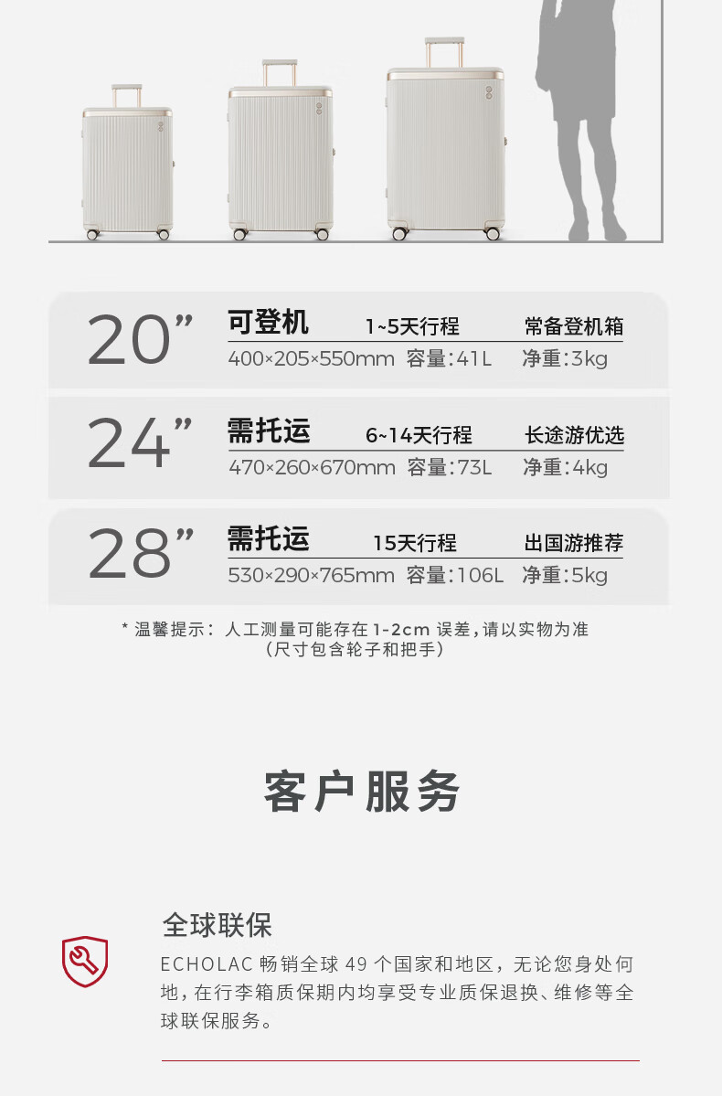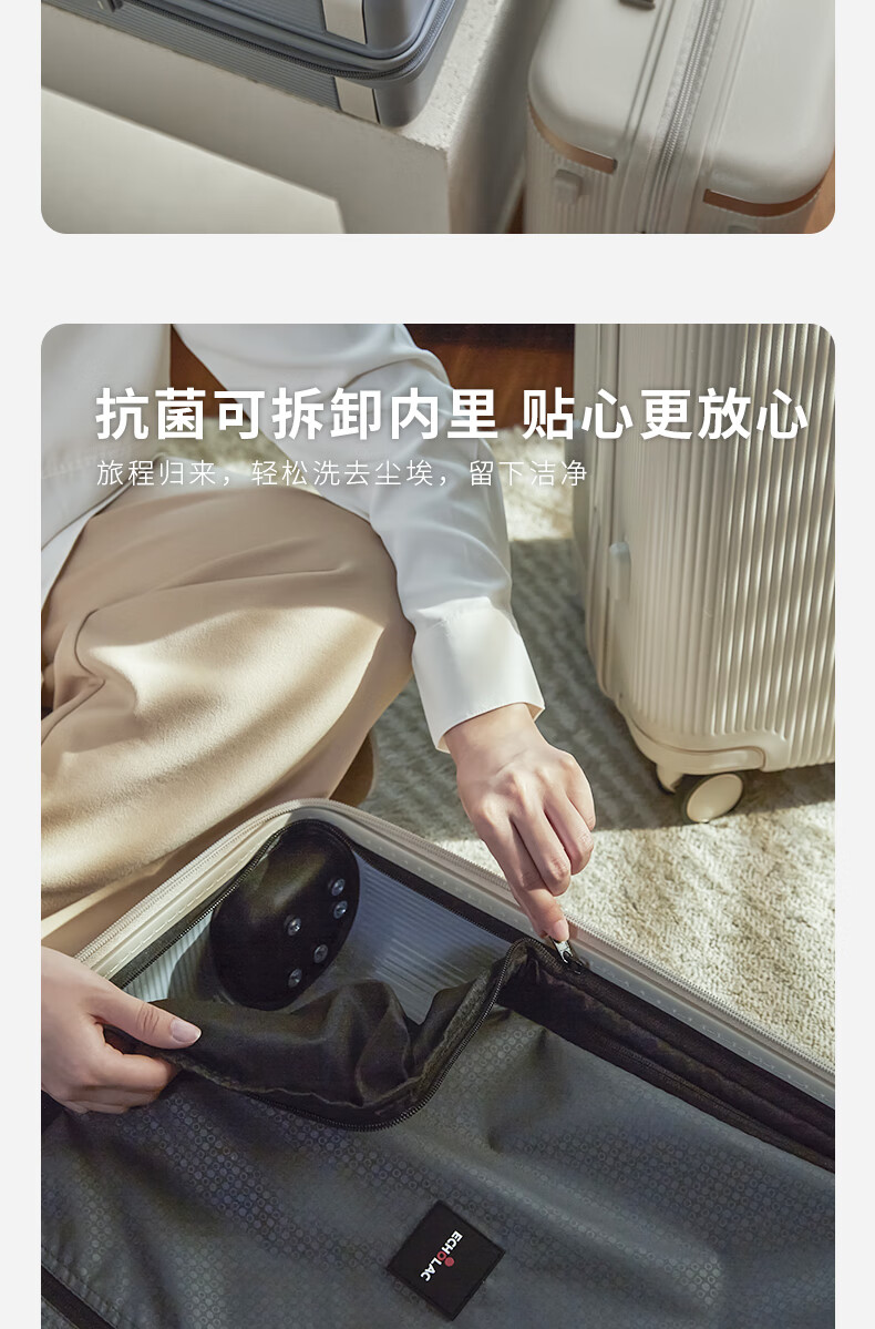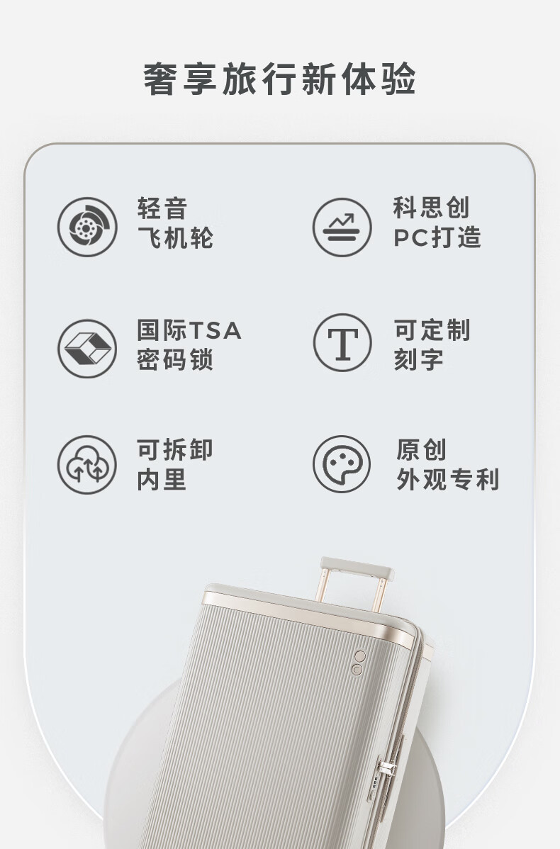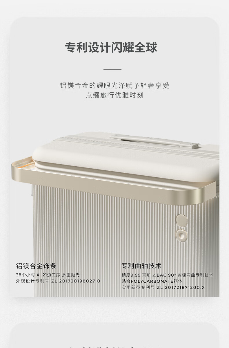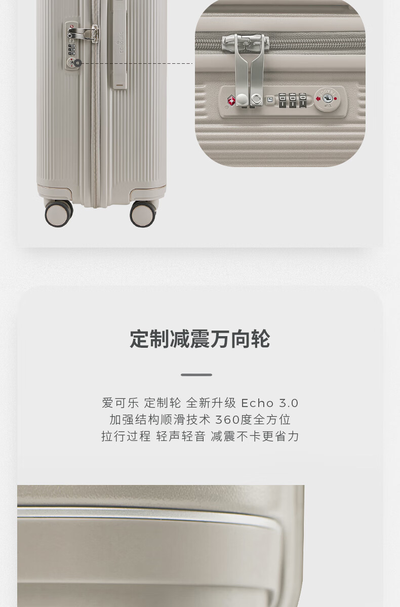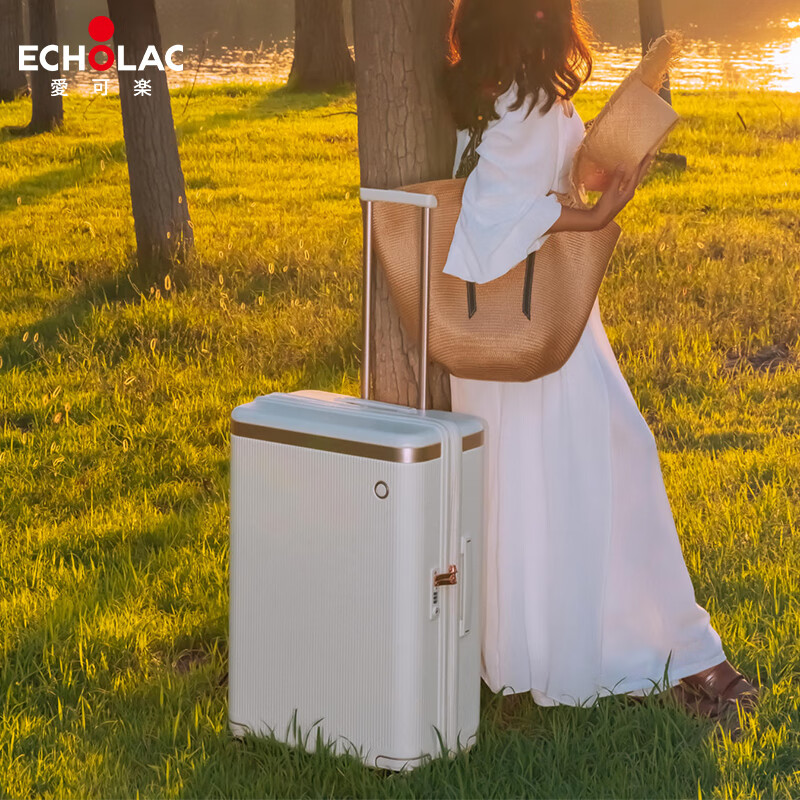 爱可乐(Echolac)大容量行李箱防刮PC拉杆箱万向轮旅行箱王朝PC142白色24吋密码箱
