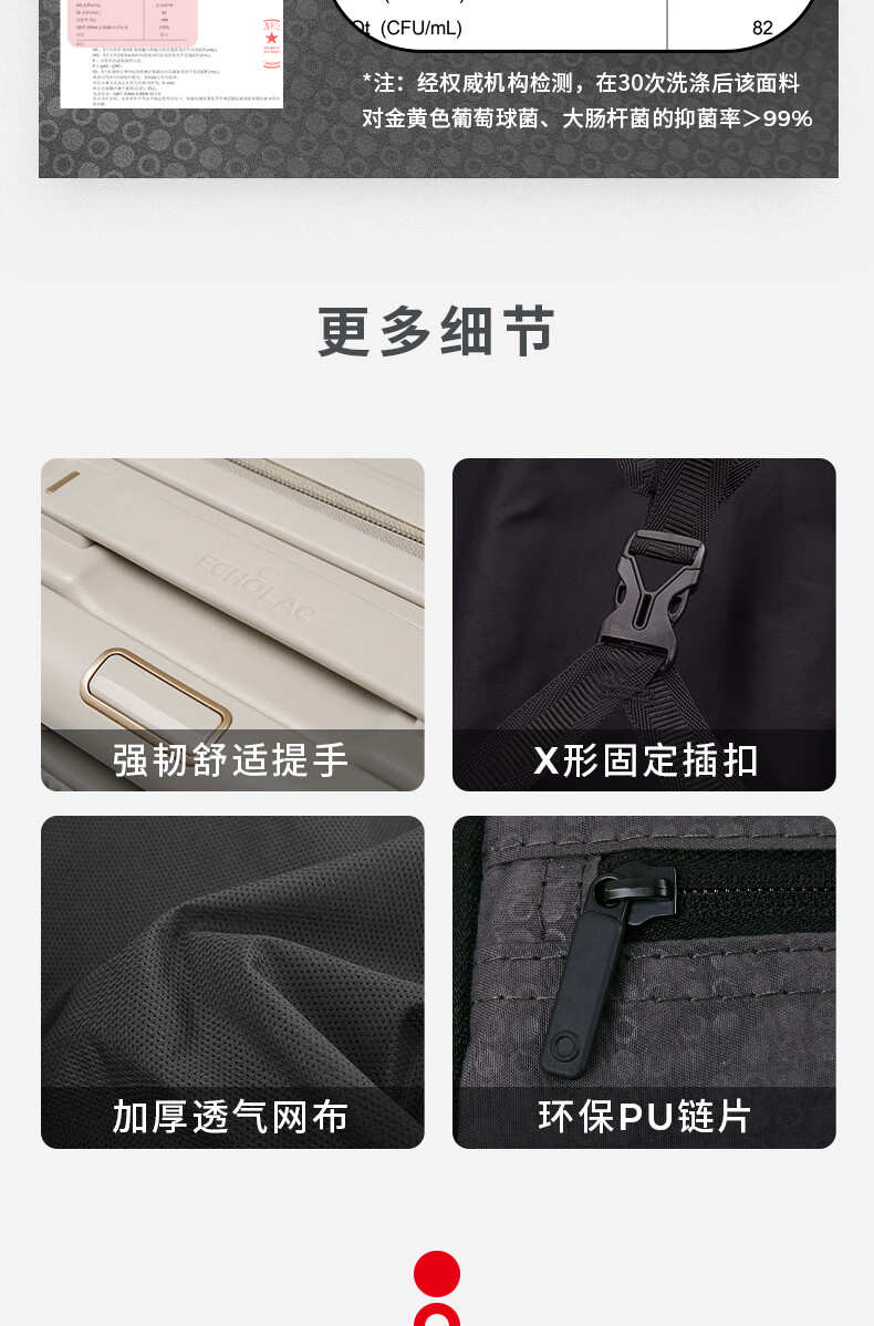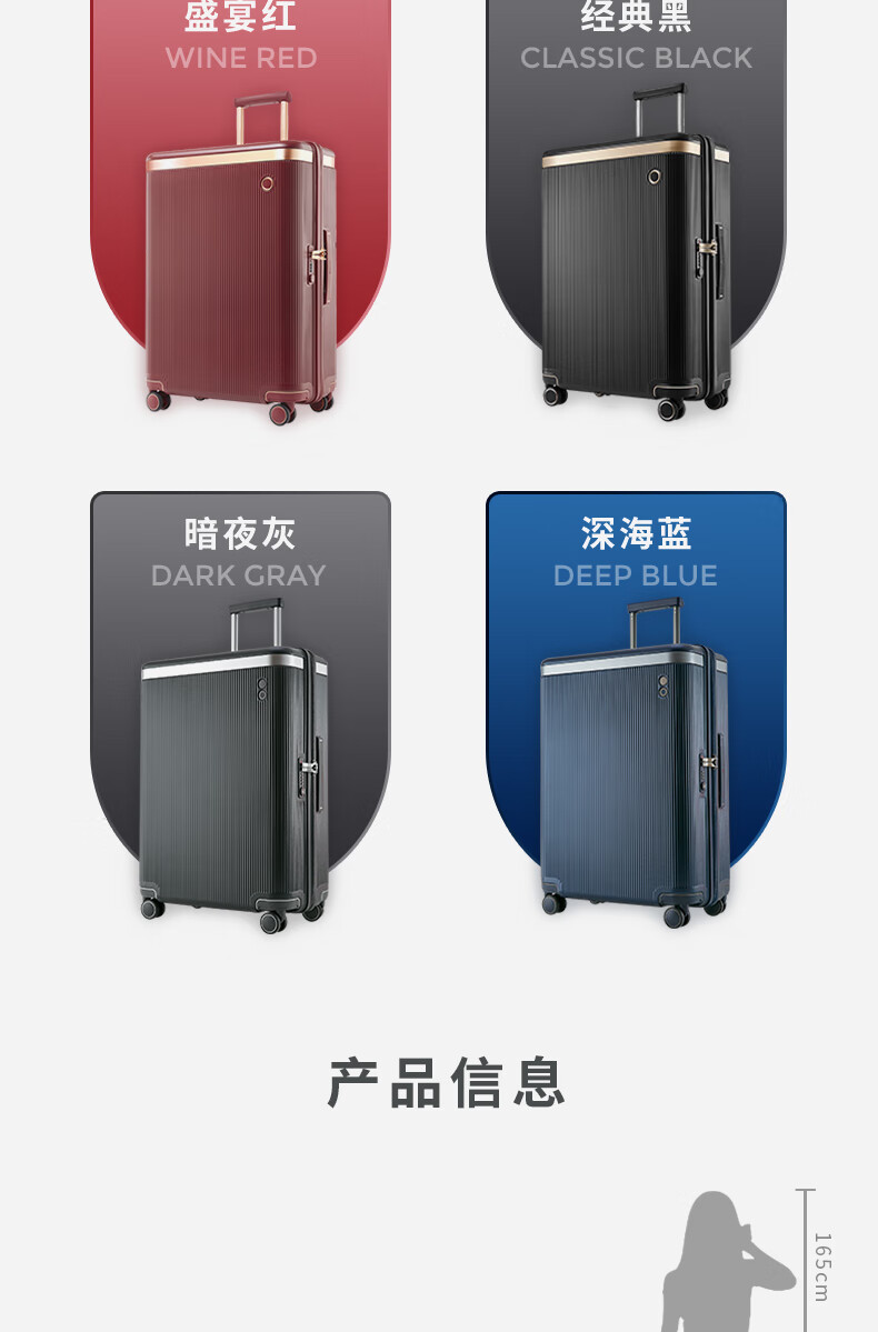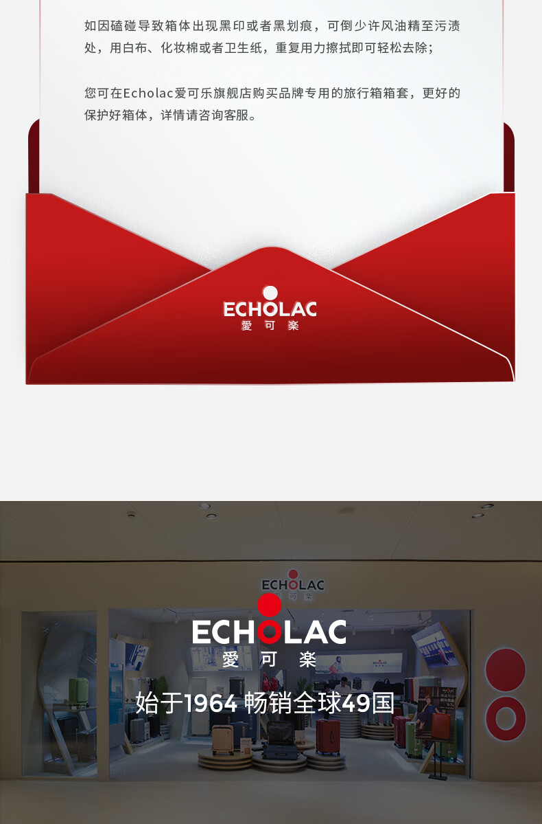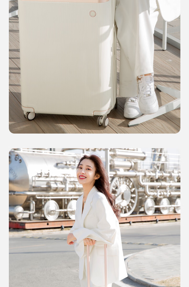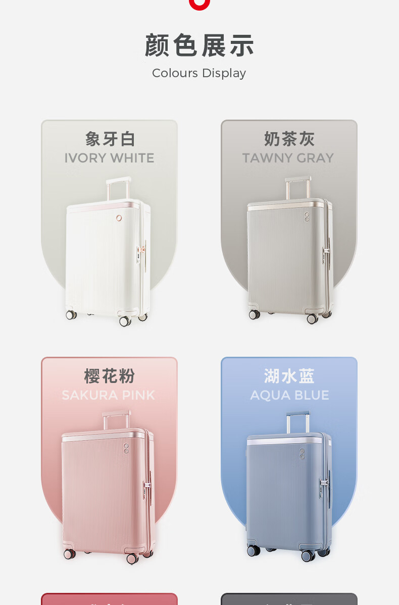 爱可乐(Echolac)大容量行李箱防刮PC拉杆箱万向轮旅行箱王朝PC142白色24吋密码箱