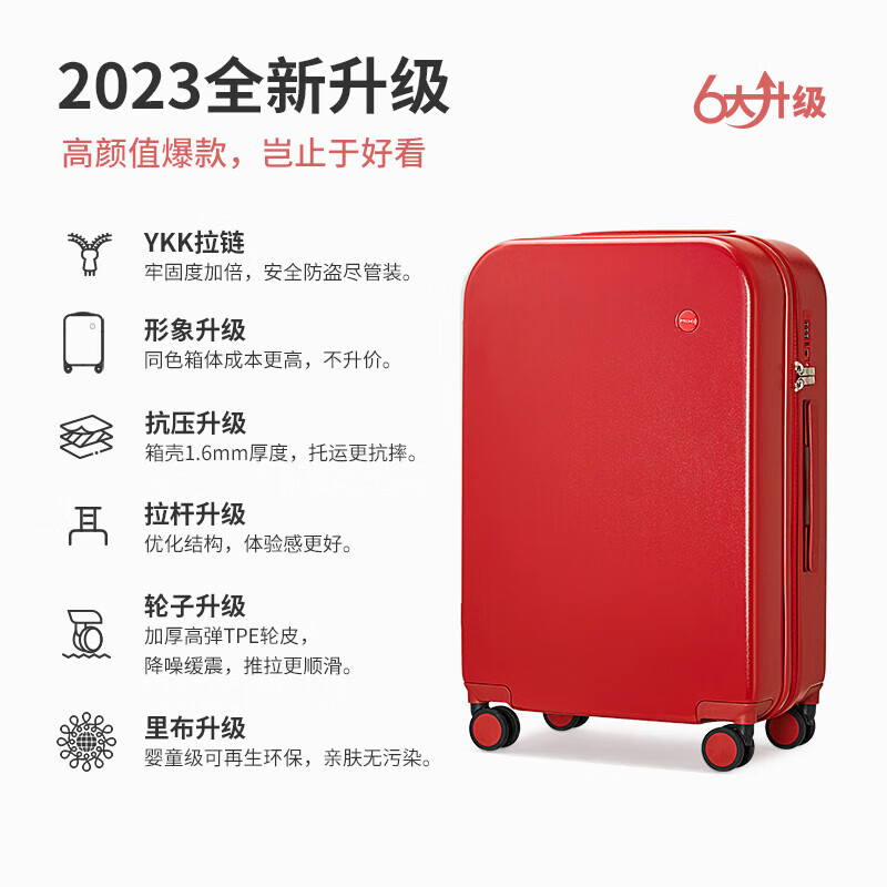 米熙红色拉杆箱子行李箱结婚登机箱男旅行箱包密码箱女20英寸高颜值36