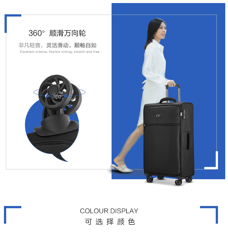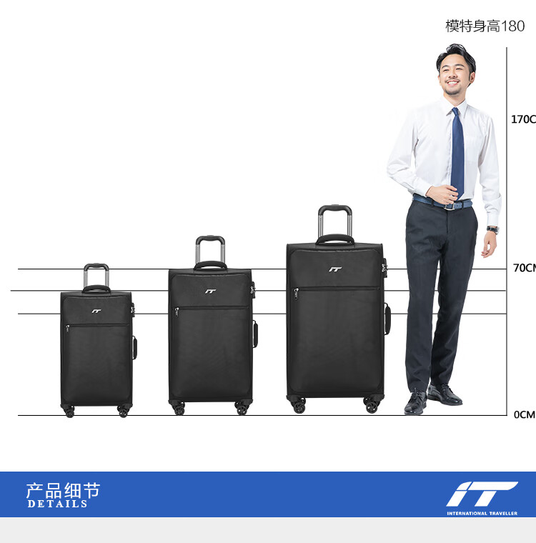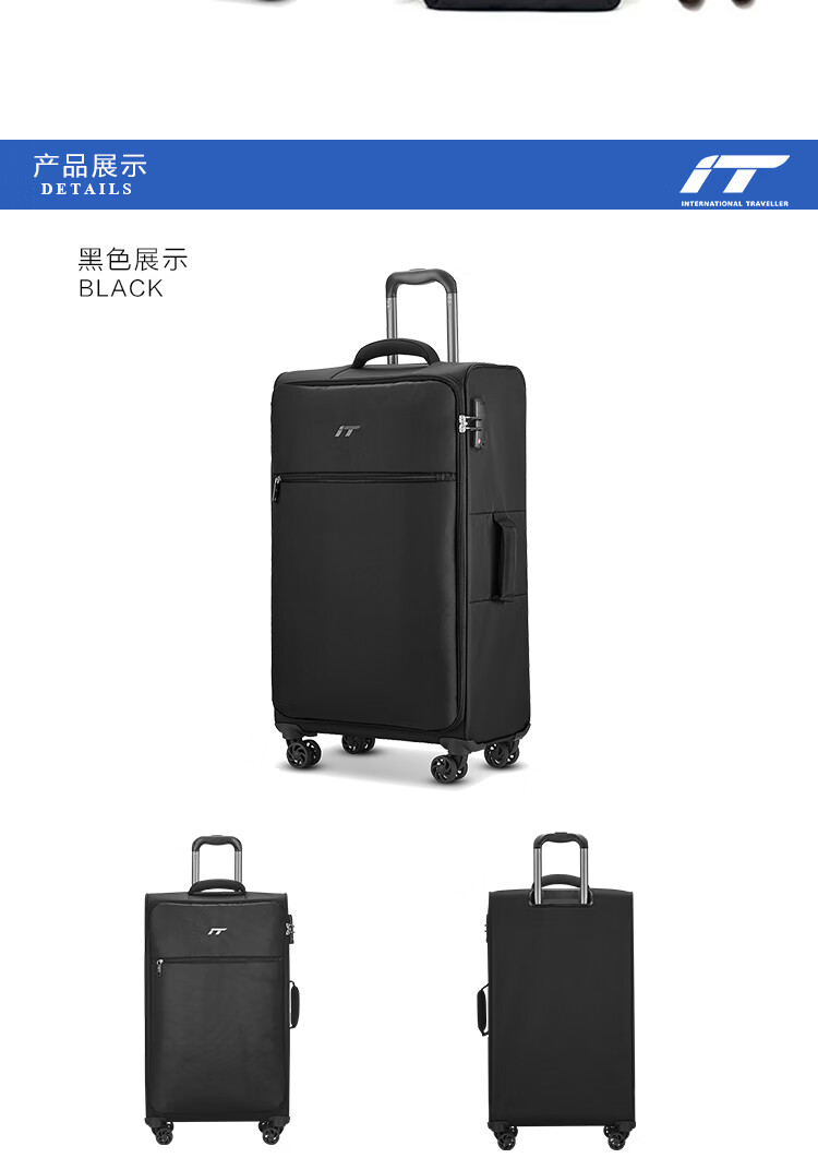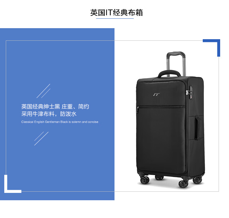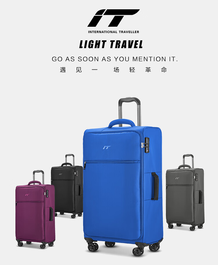 INTERNATIONAL TRAVELLER英国IT拉杆箱登机旅行箱万向轮超轻行李箱20英寸软布箱1191蓝色