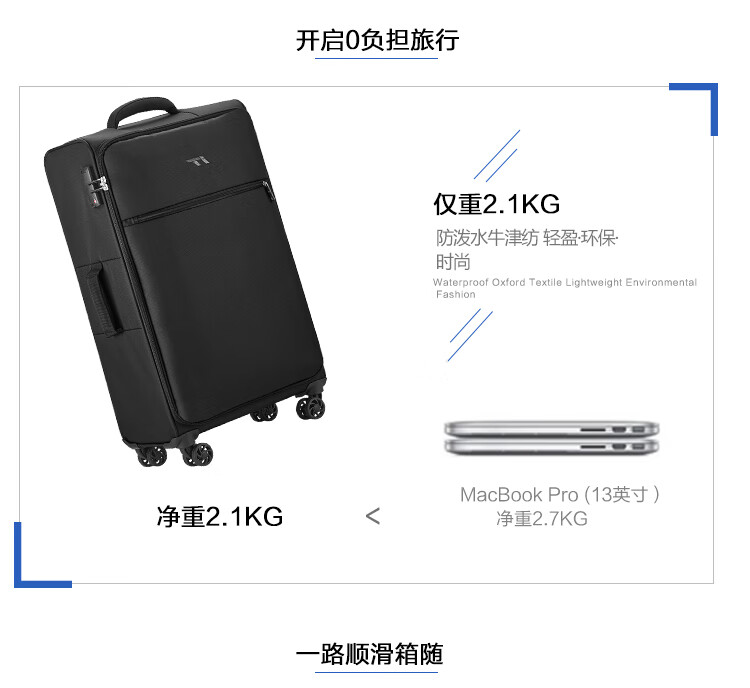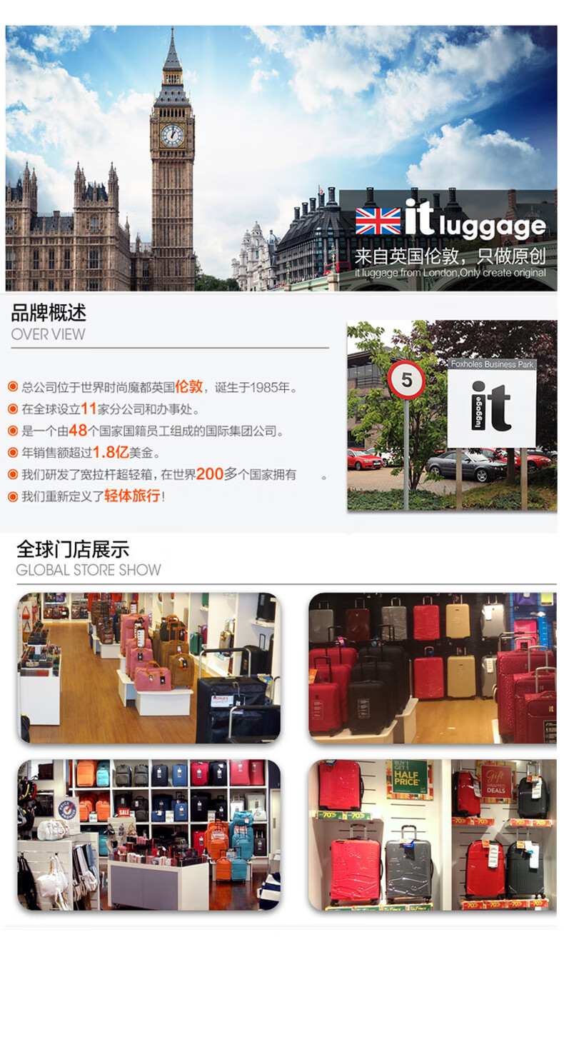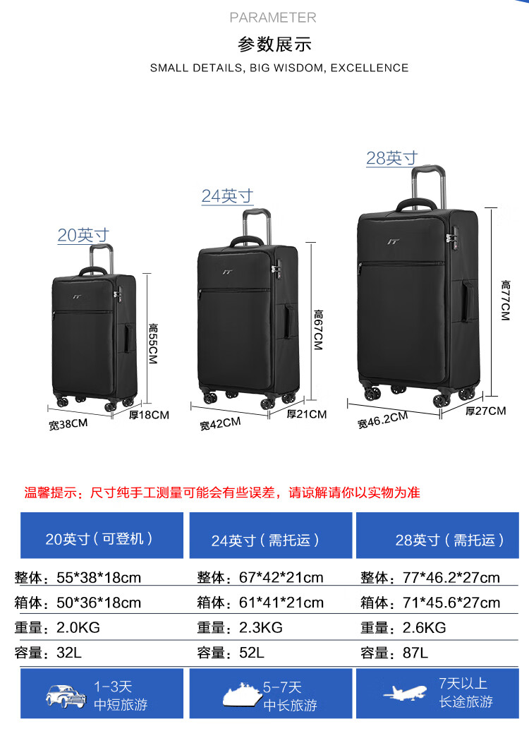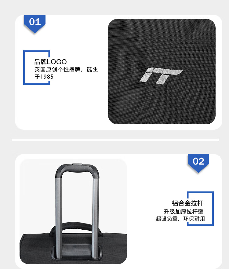 INTERNATIONAL TRAVELLER英国IT拉杆箱登机旅行箱万向轮超轻行李箱20英寸软布箱1191蓝色