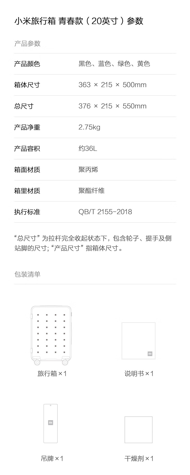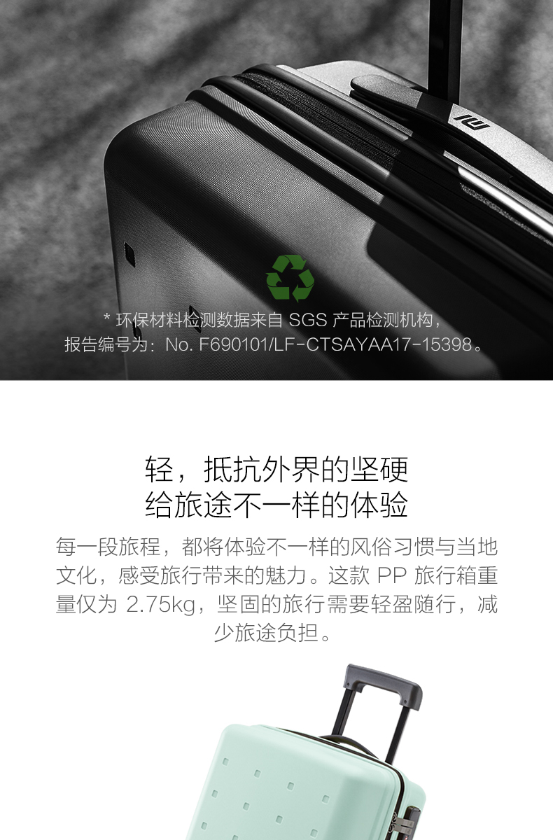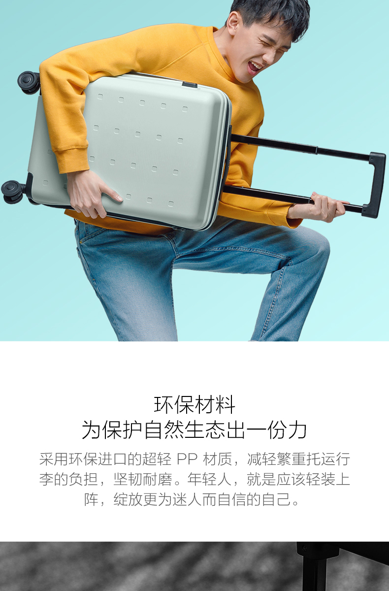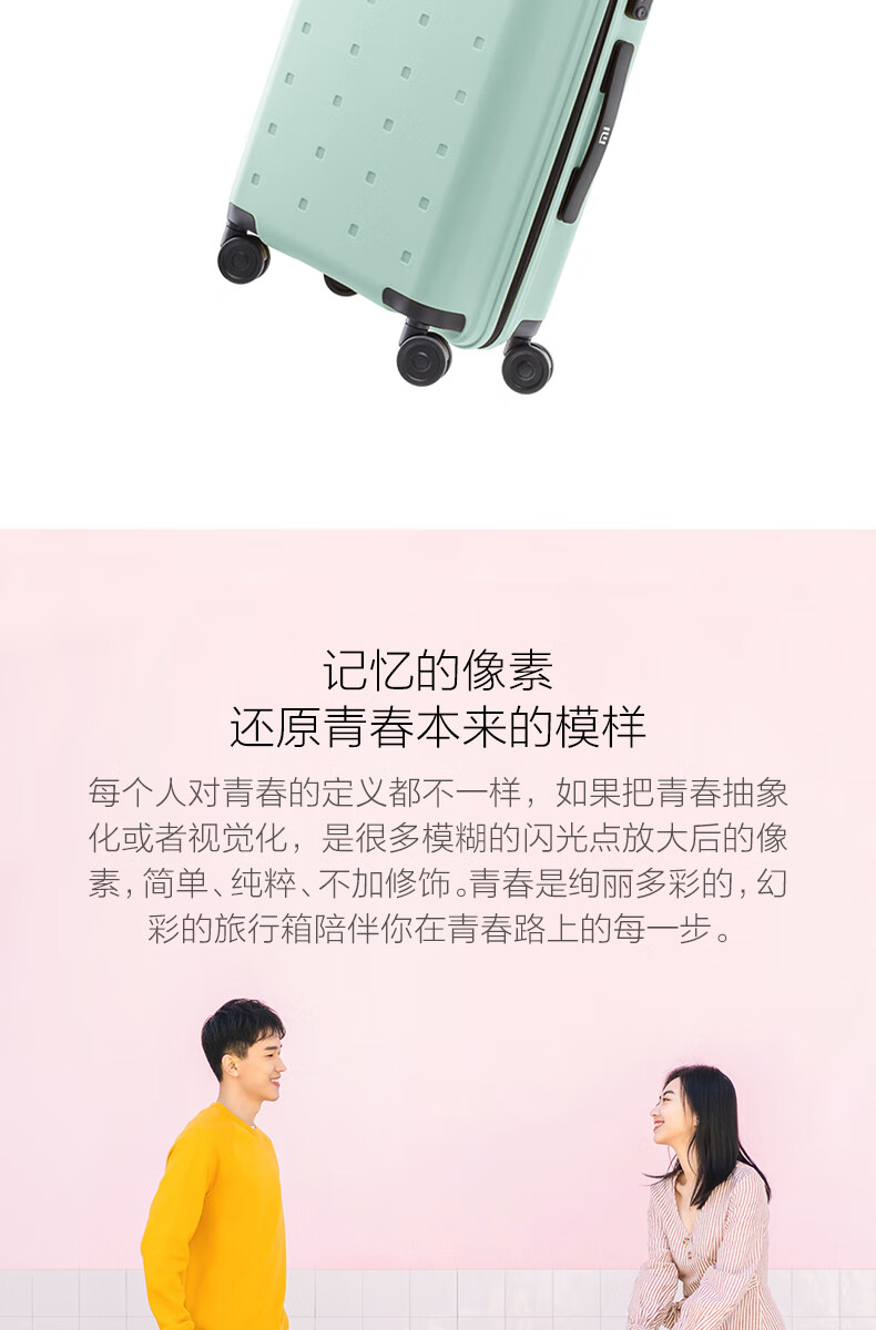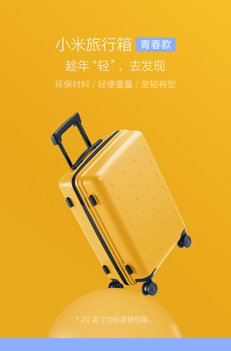 小米行李箱青春款 20英寸黑色 拉杆箱万向轮旅行箱男女学生密码箱 天生颜值高坚韧环保材料【可支持定制】