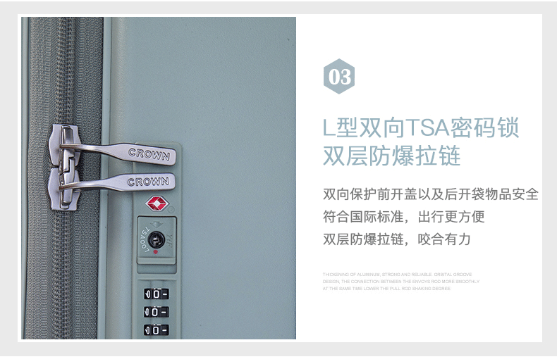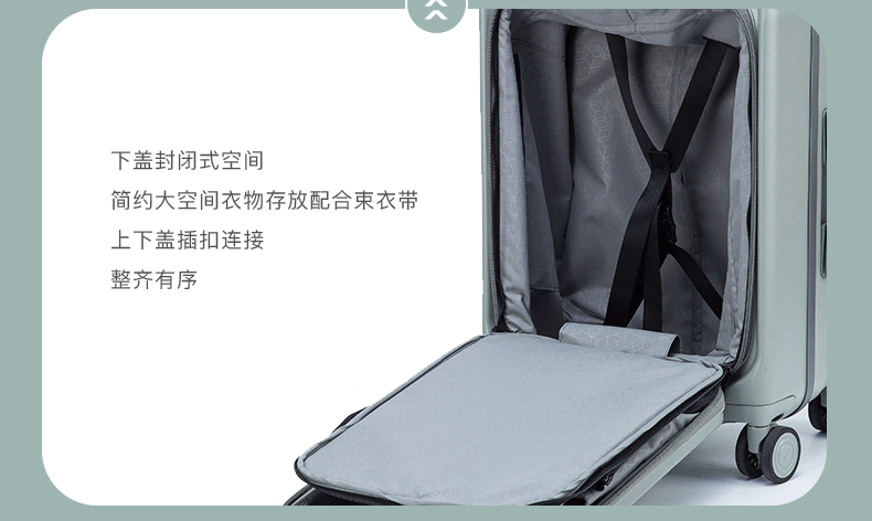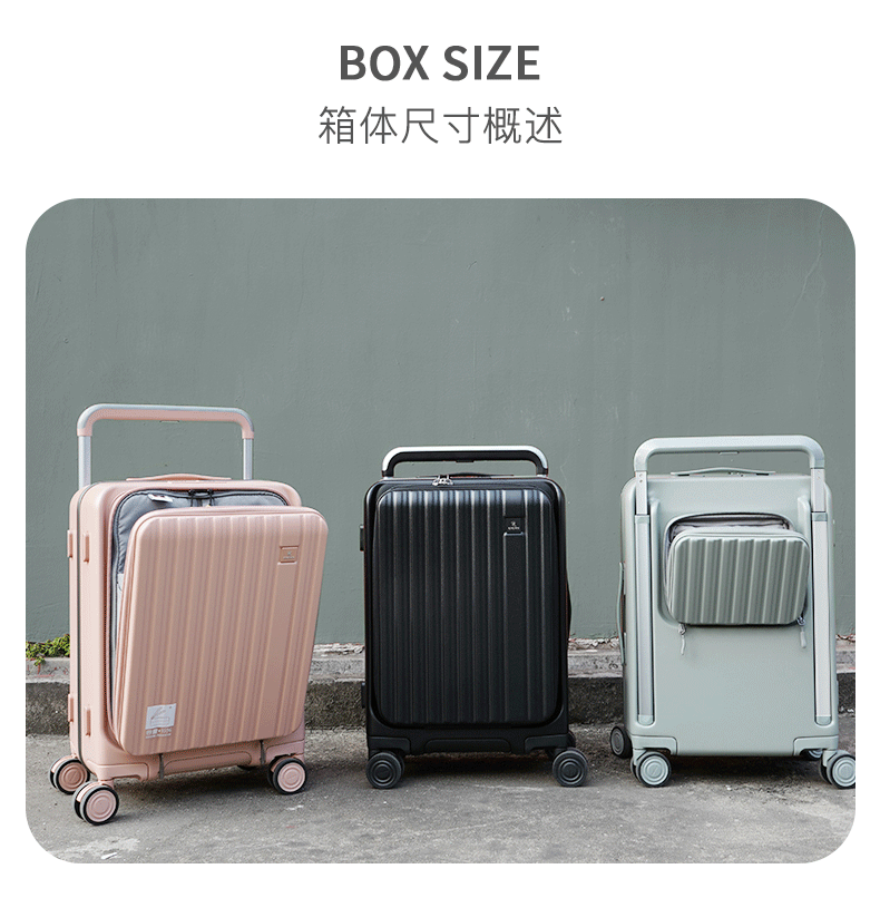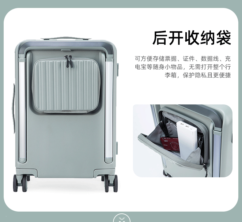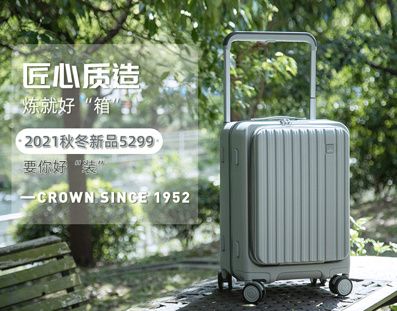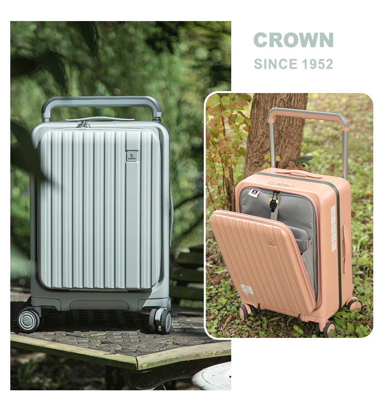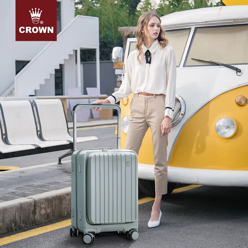 皇冠(CROWN)多功能前后开盖宽拉杆箱行李箱小型旅行箱5299-20-青玉色