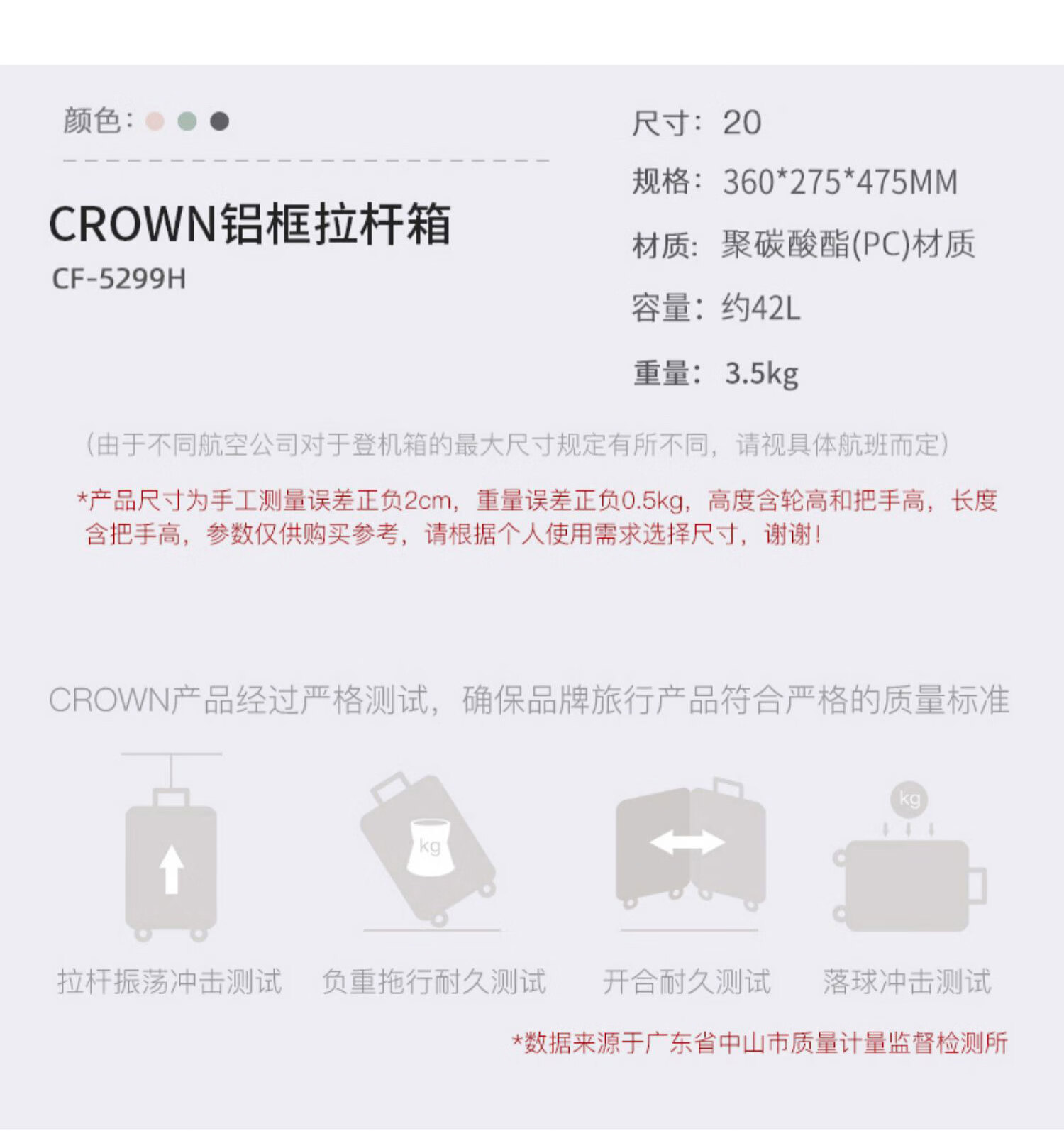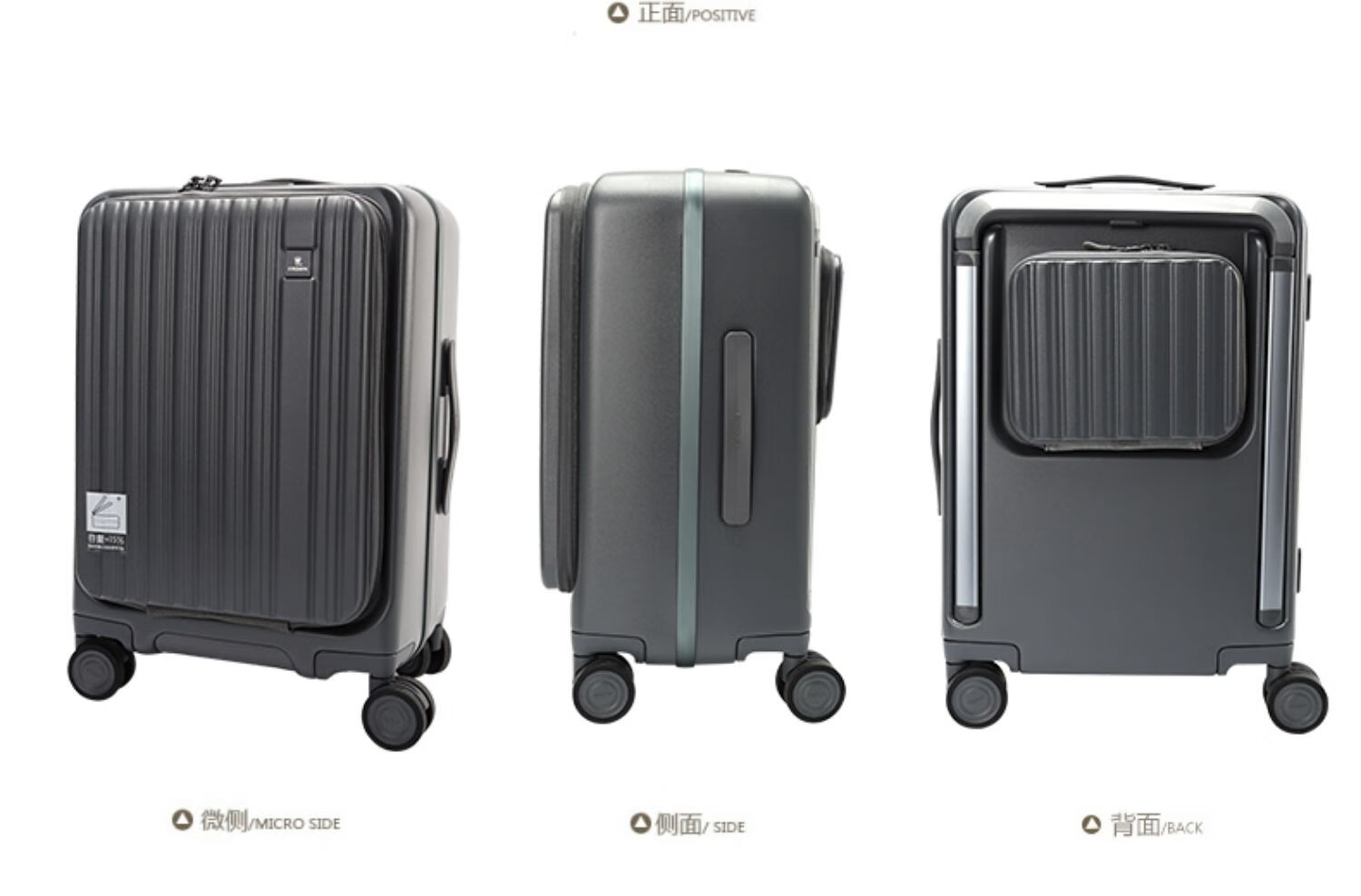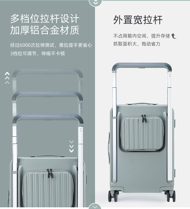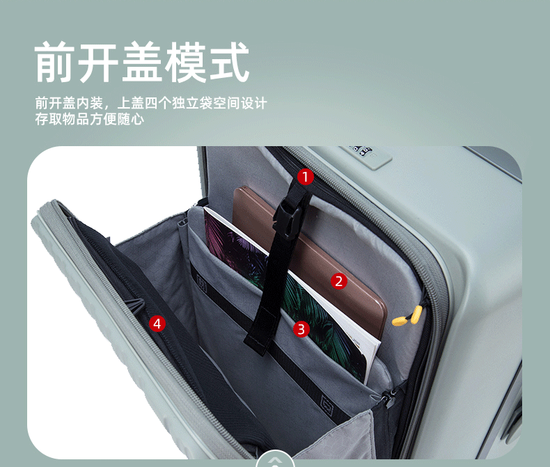 皇冠(CROWN)多功能前后开盖宽拉杆箱行李箱小型旅行箱5299-20-青玉色