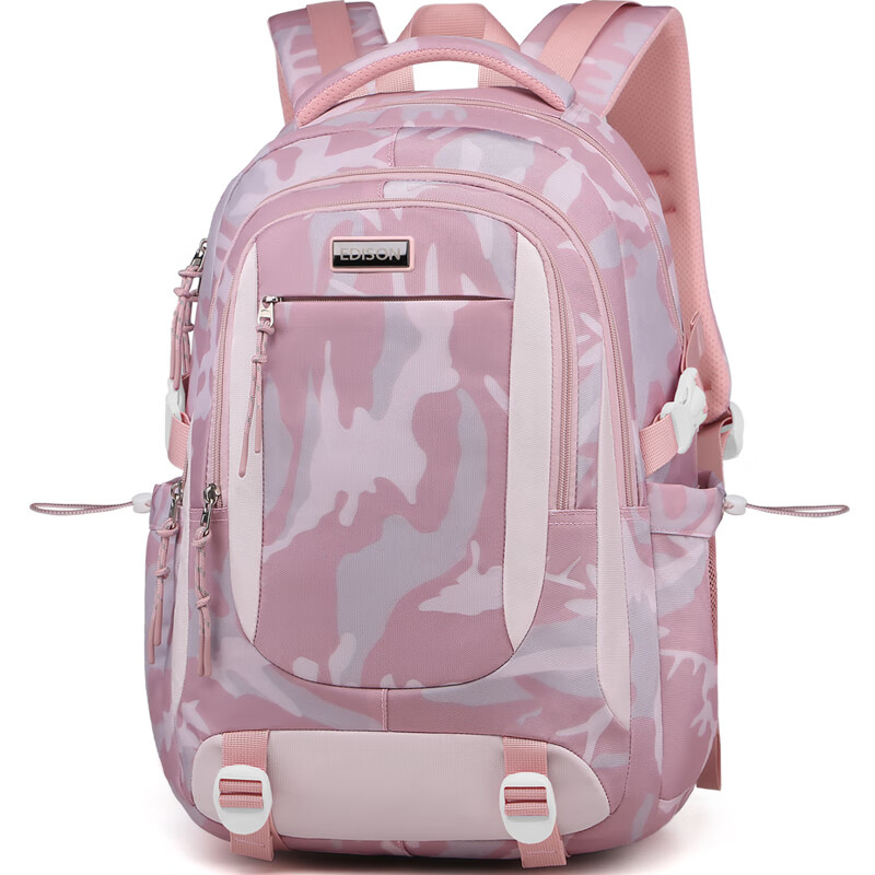 Edison爱迪生高中生书包大容量初中大学生双肩包旅行背包K052-29G迷彩粉