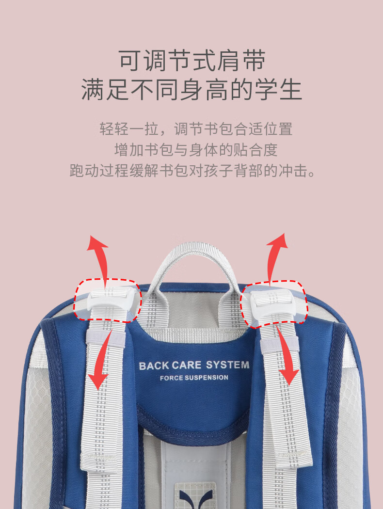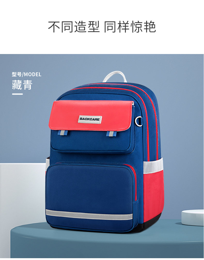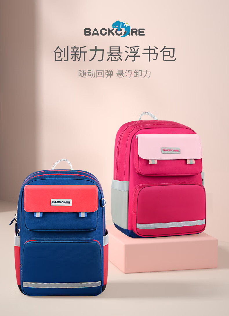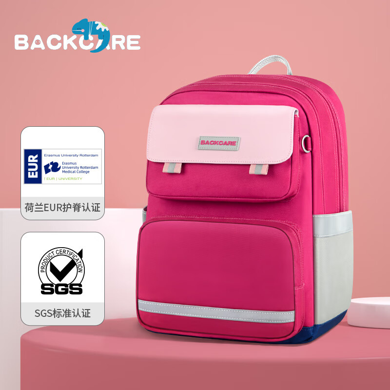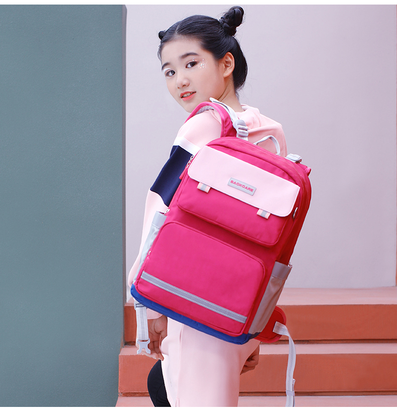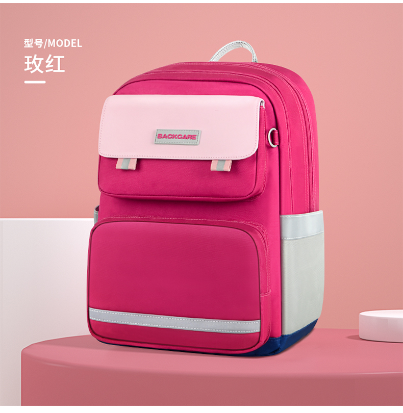 Back care背舒小学生书包男童三至六年级时尚送礼女孩轻便护脊减负双肩包安全反光儿童书包爵士玫红/Y219716B