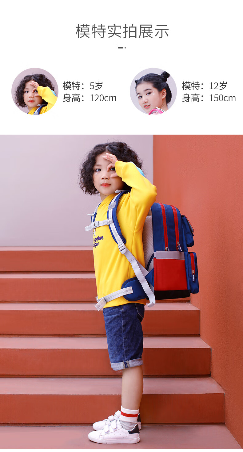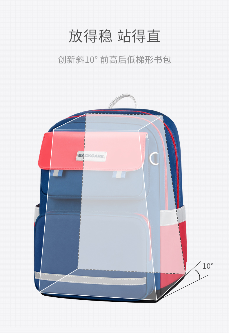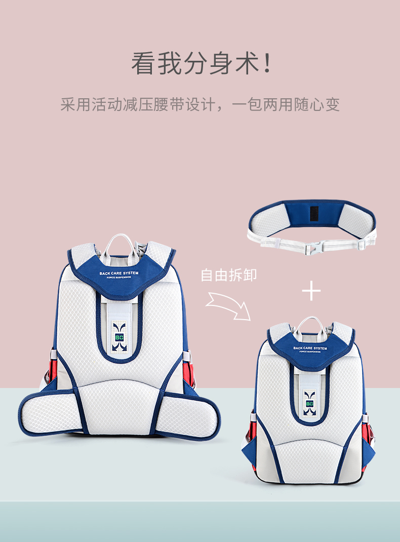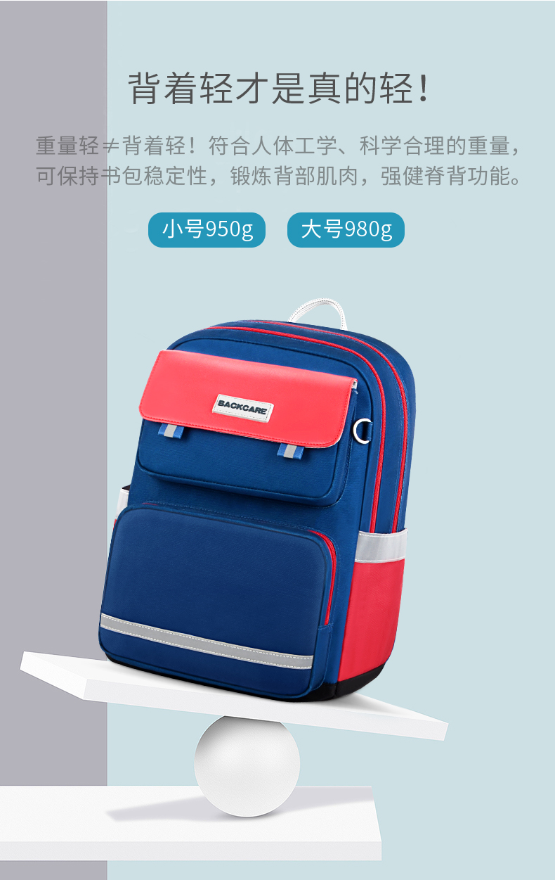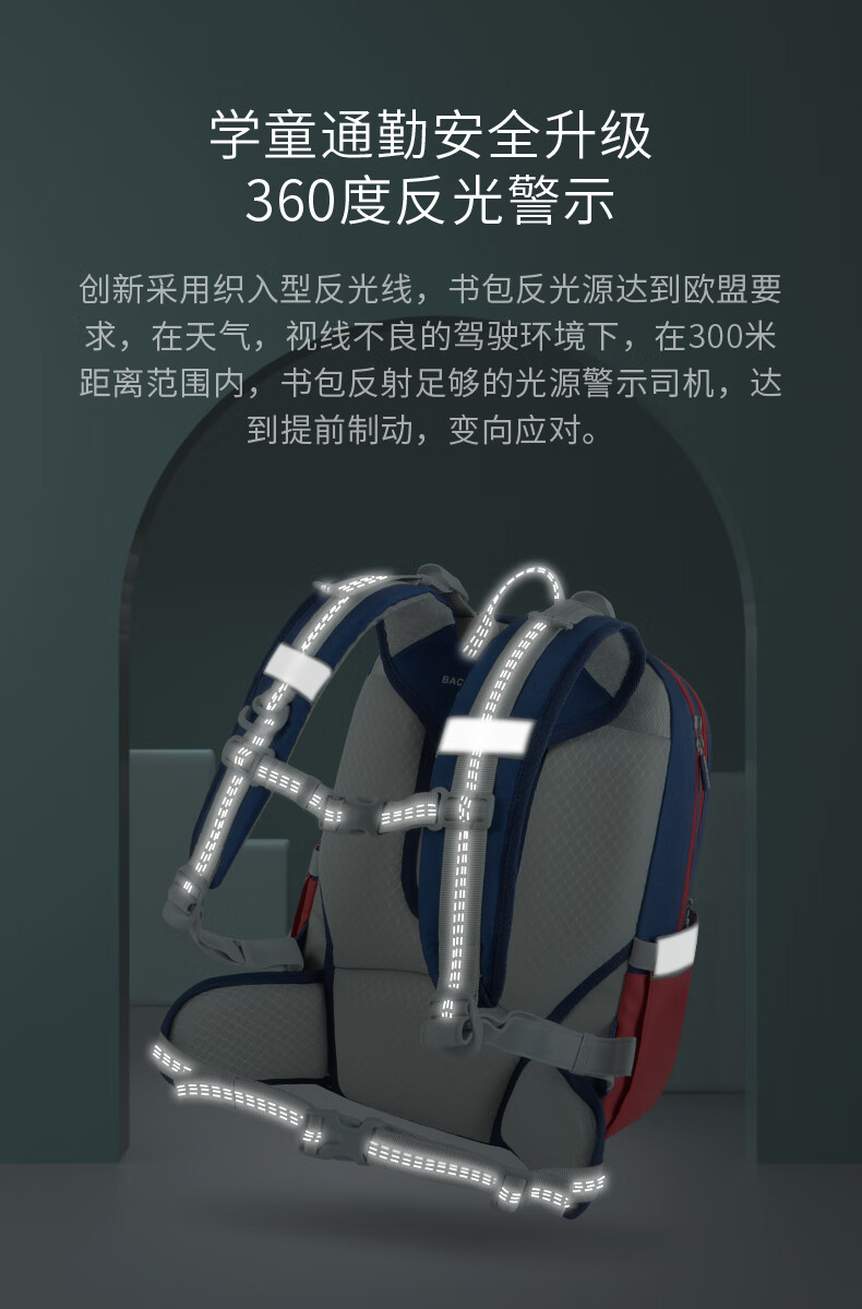 Back care背舒小学生书包男童三至六年级时尚送礼女孩轻便护脊减负双肩包安全反光儿童书包爵士玫红/Y219716B