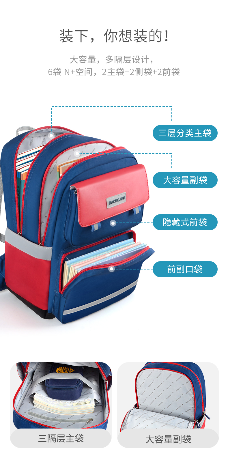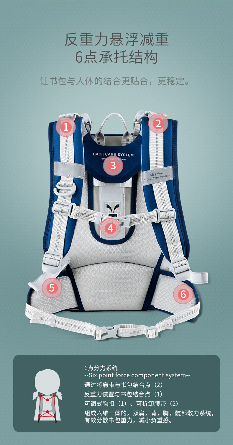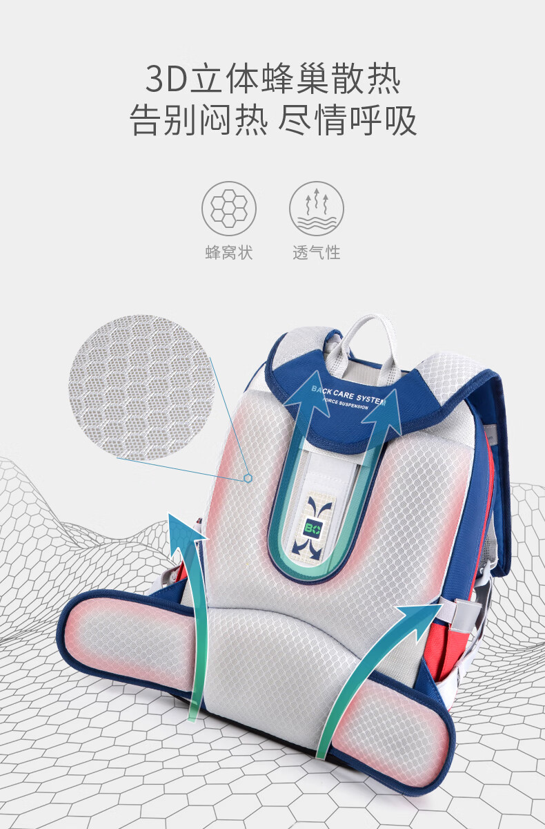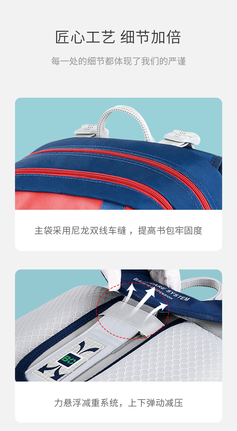 Back care背舒小学生书包男童三至六年级时尚送礼女孩轻便护脊减负双肩包安全反光儿童书包爵士玫红/Y219716B