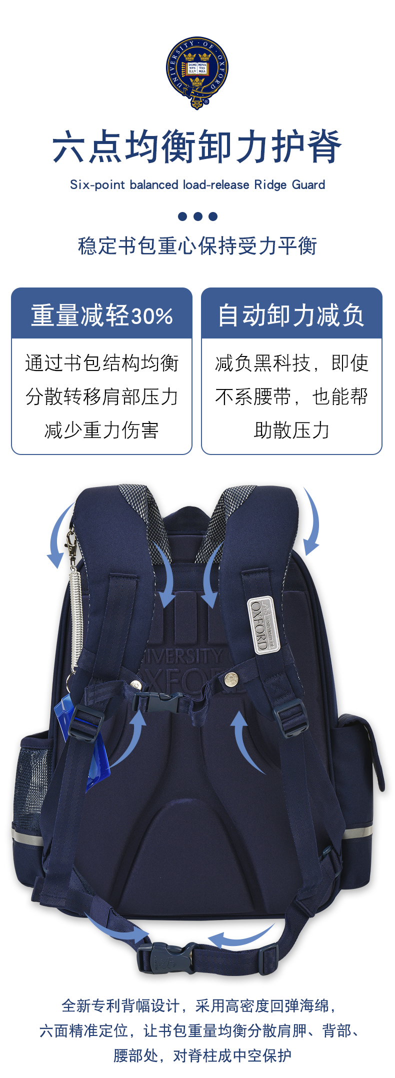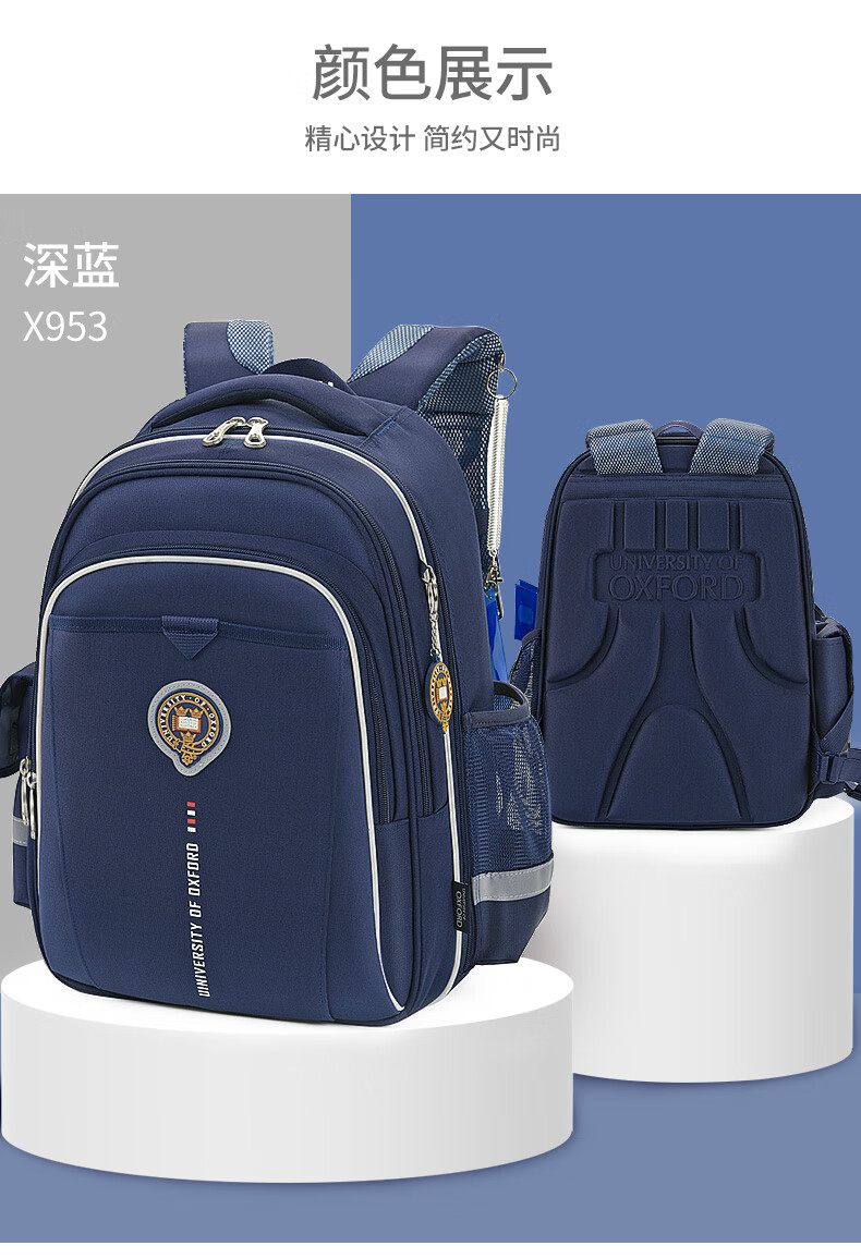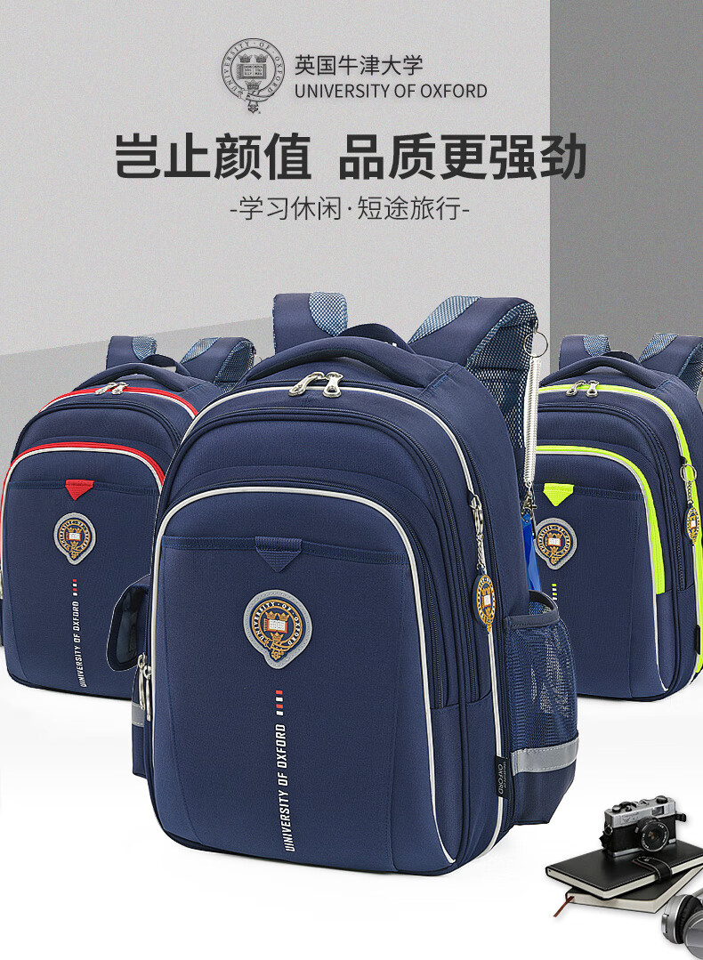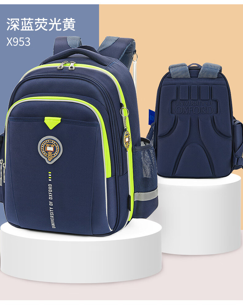 UNIVERSITY OF OXFORD小学生书包男孩3-6年级护脊儿童书包双肩背包X953深蓝/荧光黄