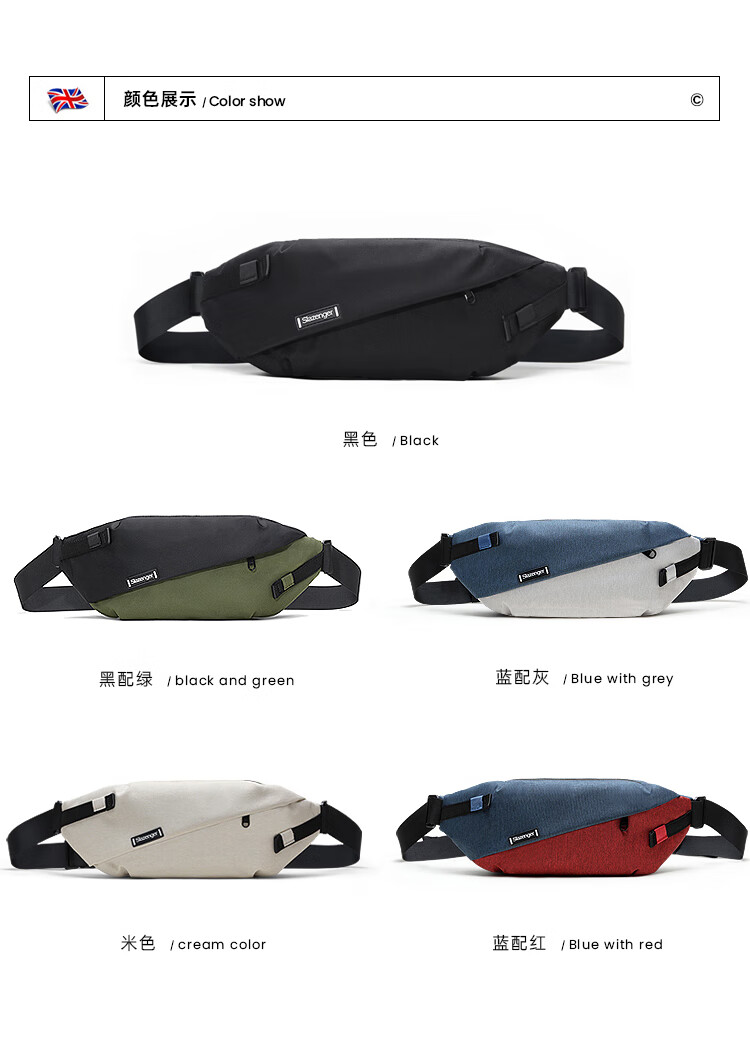 史莱辛格(Slazenger)斜挎包男士单肩包女胸腰包运动骑行跑步学生小背包休闲通勤手机包