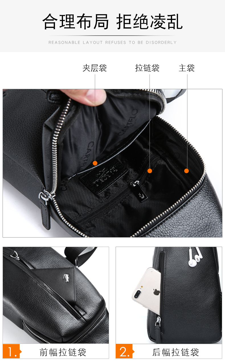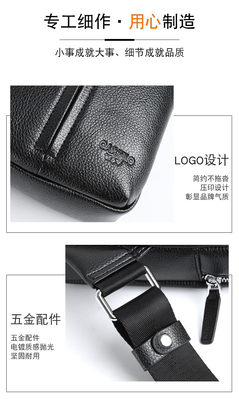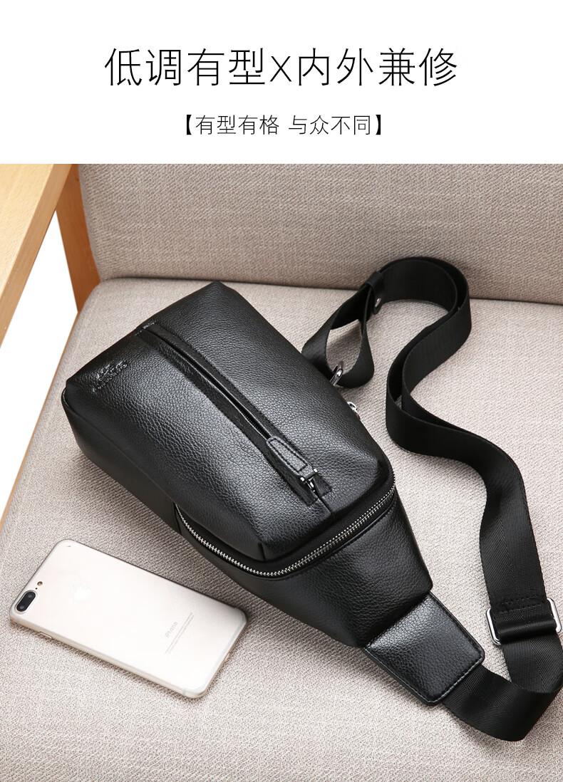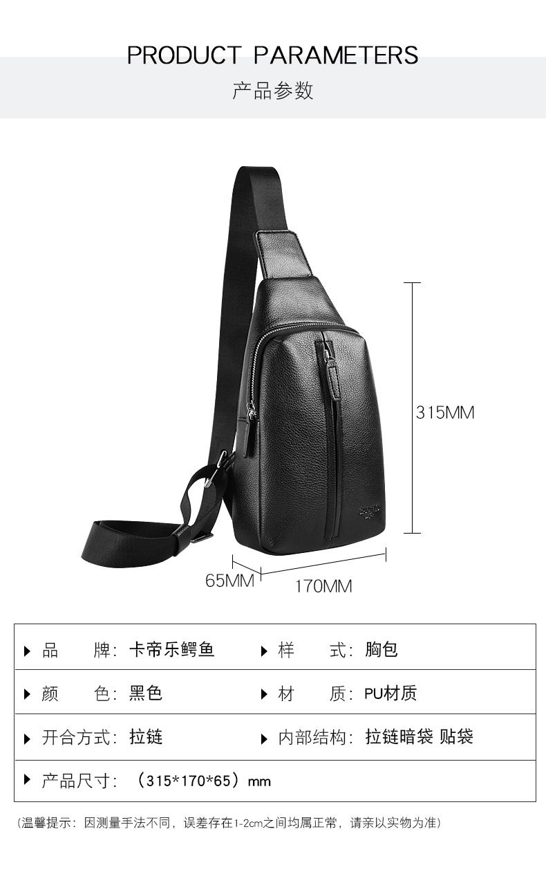 卡帝乐鳄鱼(CARTELO)男士胸包单肩包时尚大容量斜挎包多功能小背包旅行挎包黑色