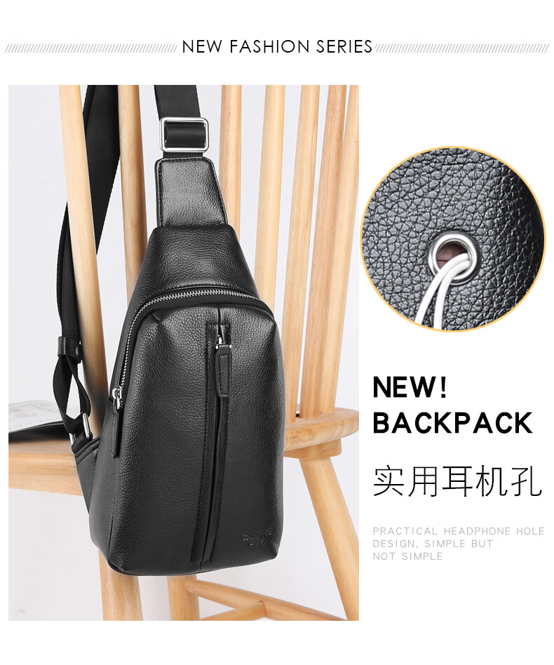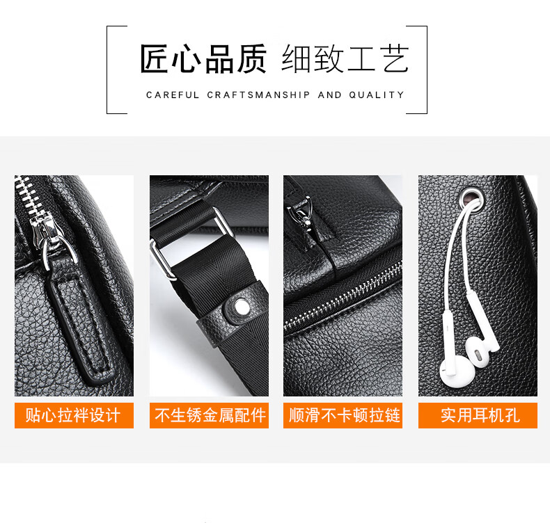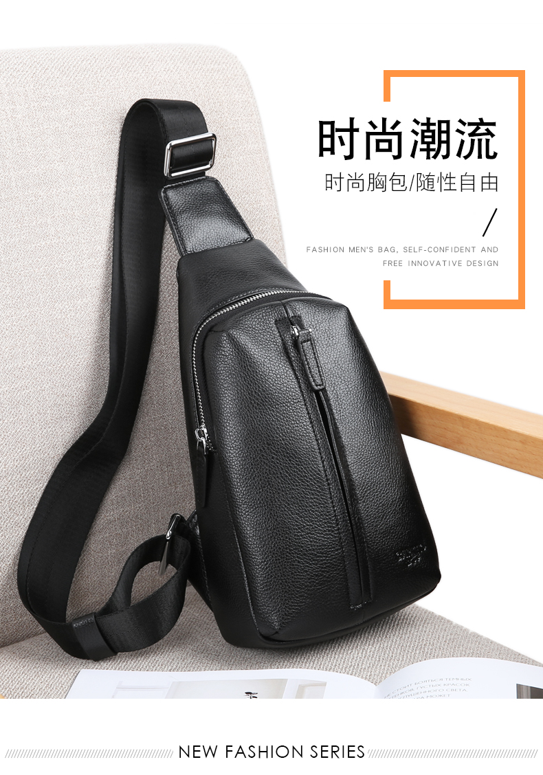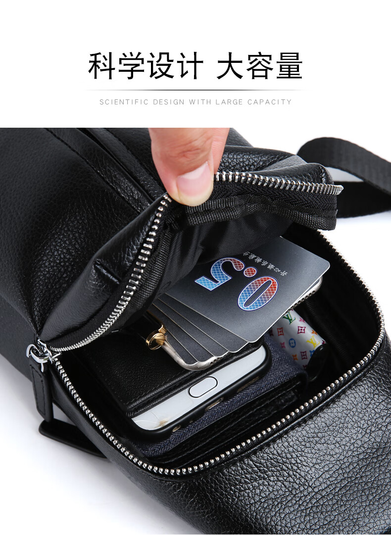 卡帝乐鳄鱼(CARTELO)男士胸包单肩包时尚大容量斜挎包多功能小背包旅行挎包黑色