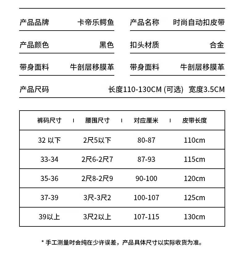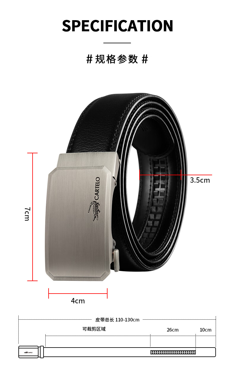 卡帝乐鳄鱼 卡帝乐鳄鱼 皮带男 自动扣裤带 百搭腰带 110-120cm