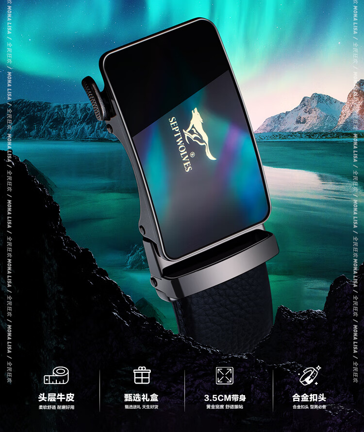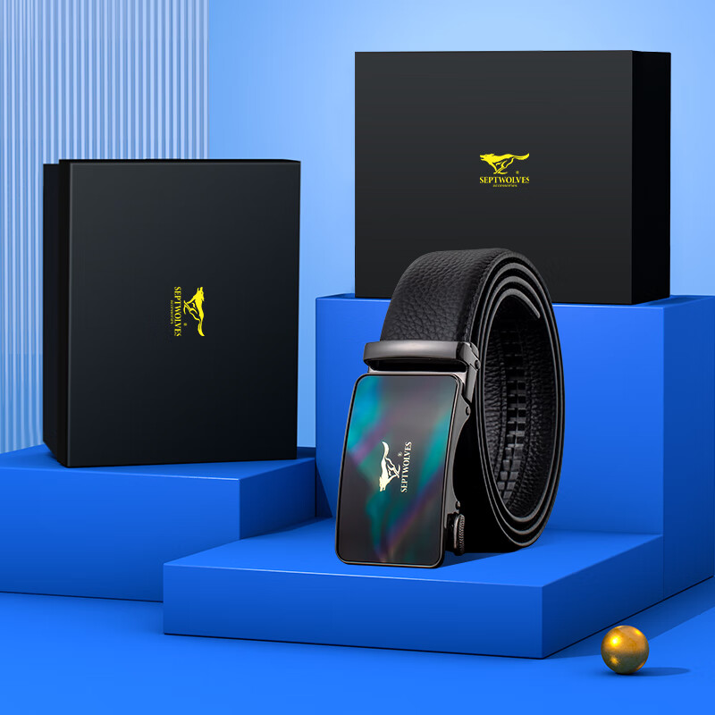 七匹狼男士头层牛皮自动扣皮带裤腰带礼盒款送男友父亲节礼物