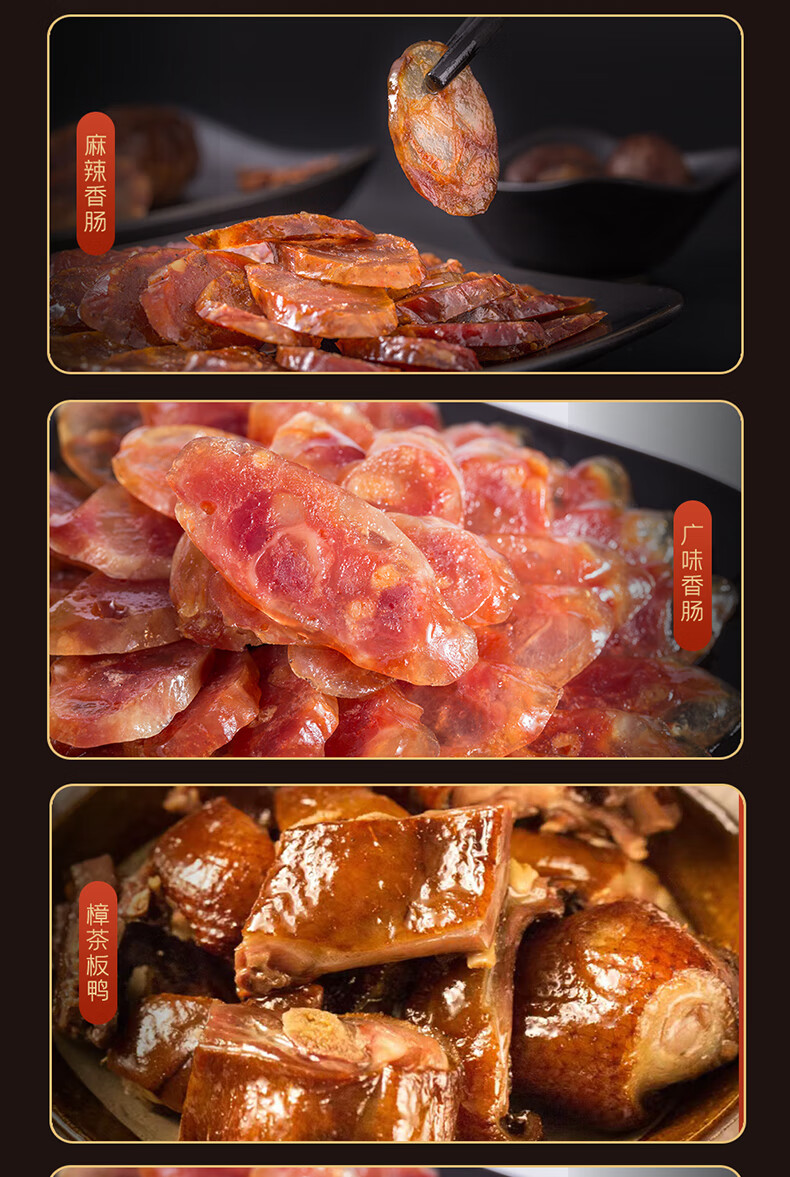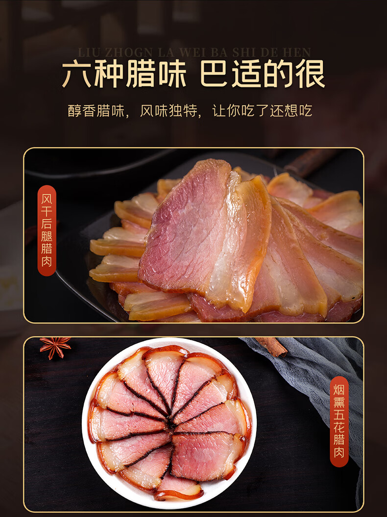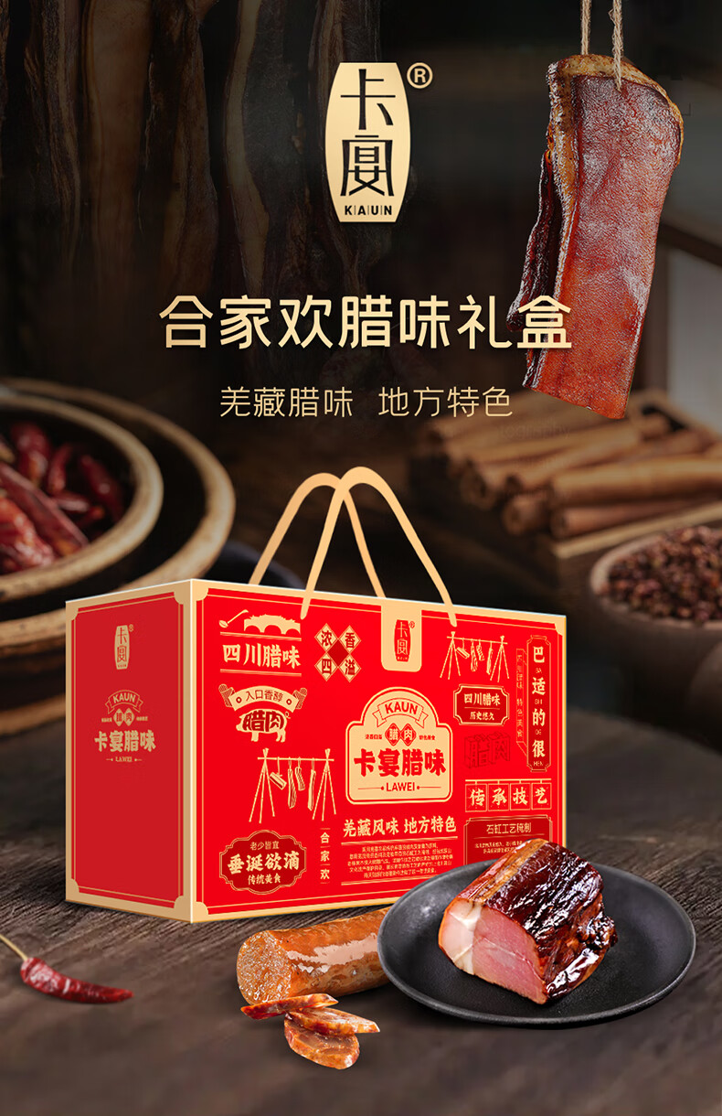卡宴烟熏五花腊肉川式麻辣香风干鸡熟食肠合家欢腊味礼盒2600g