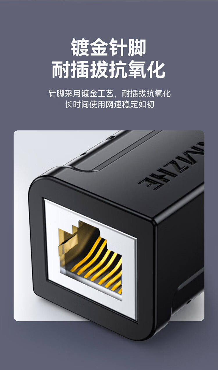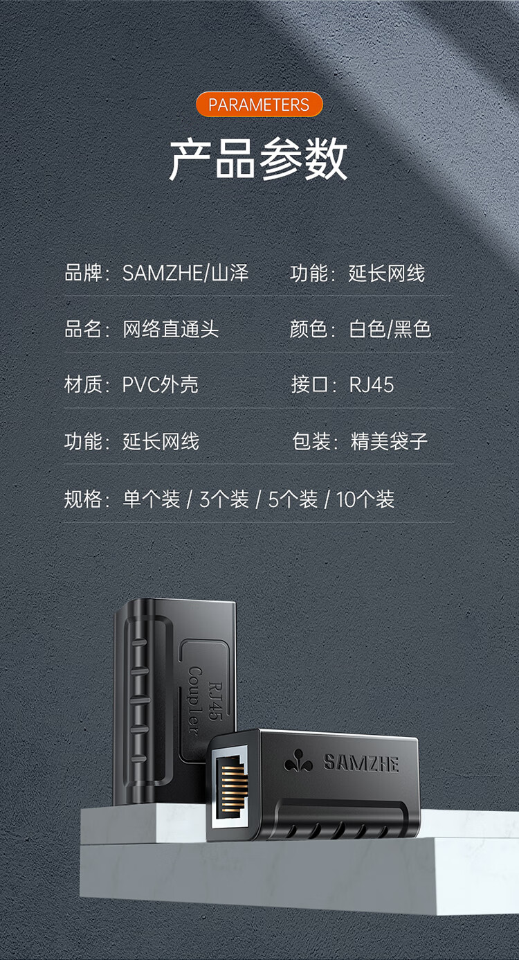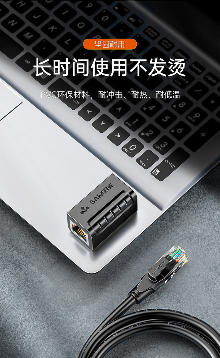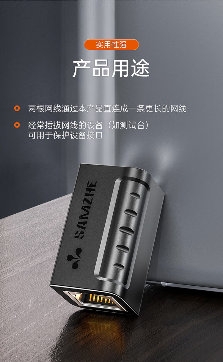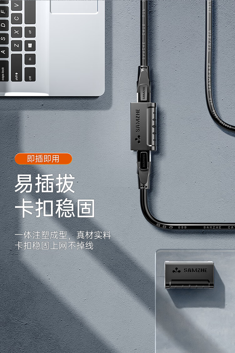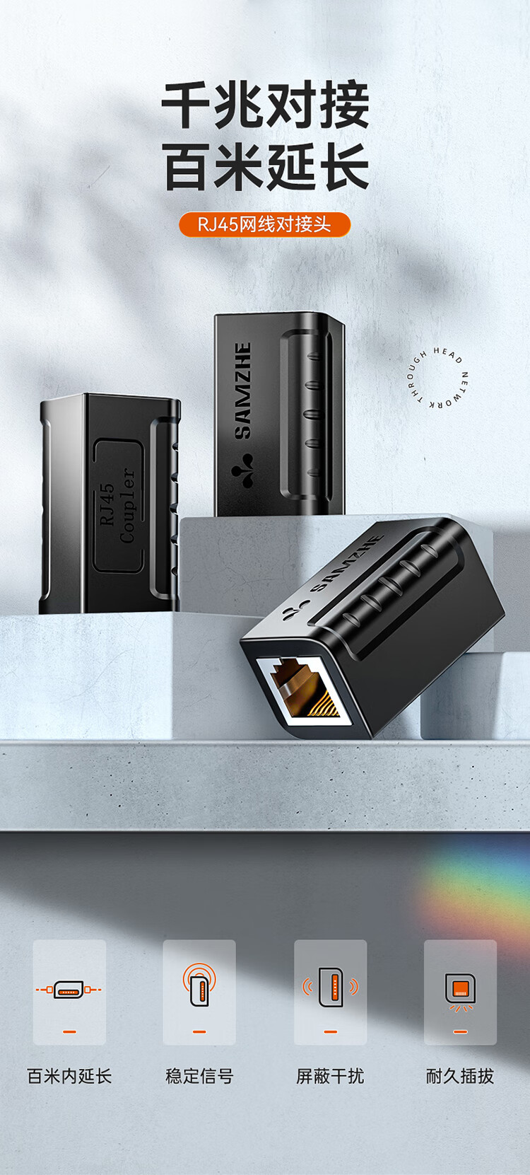 山泽(SAMZHE)网线转接头对接头器 网络直通头RJ45网口 网络模块双通头延长器5/6/7类连接器 黑色SZ-ZTH1010