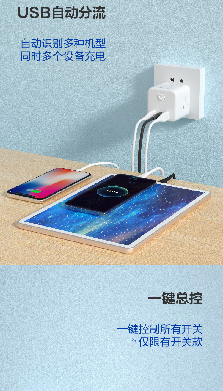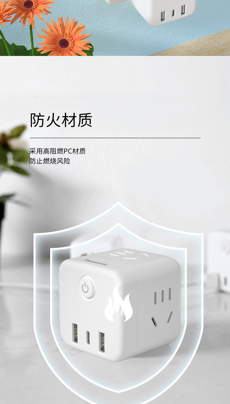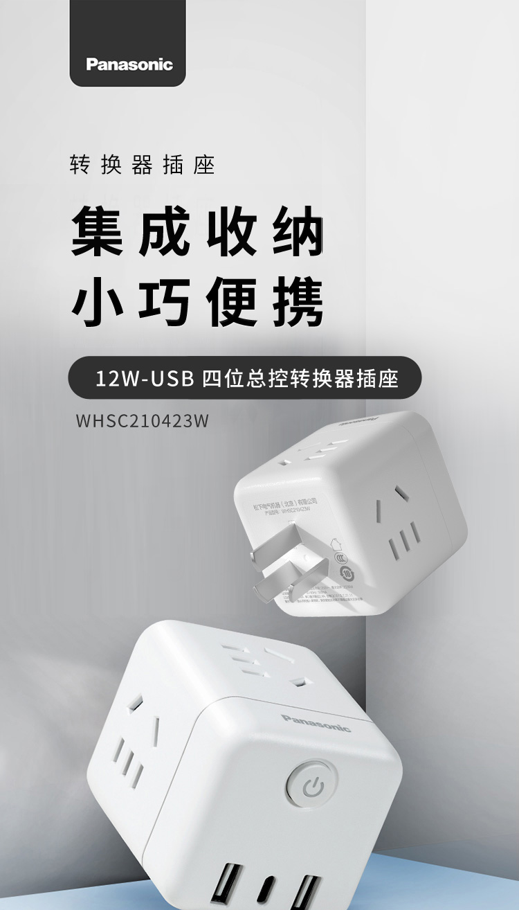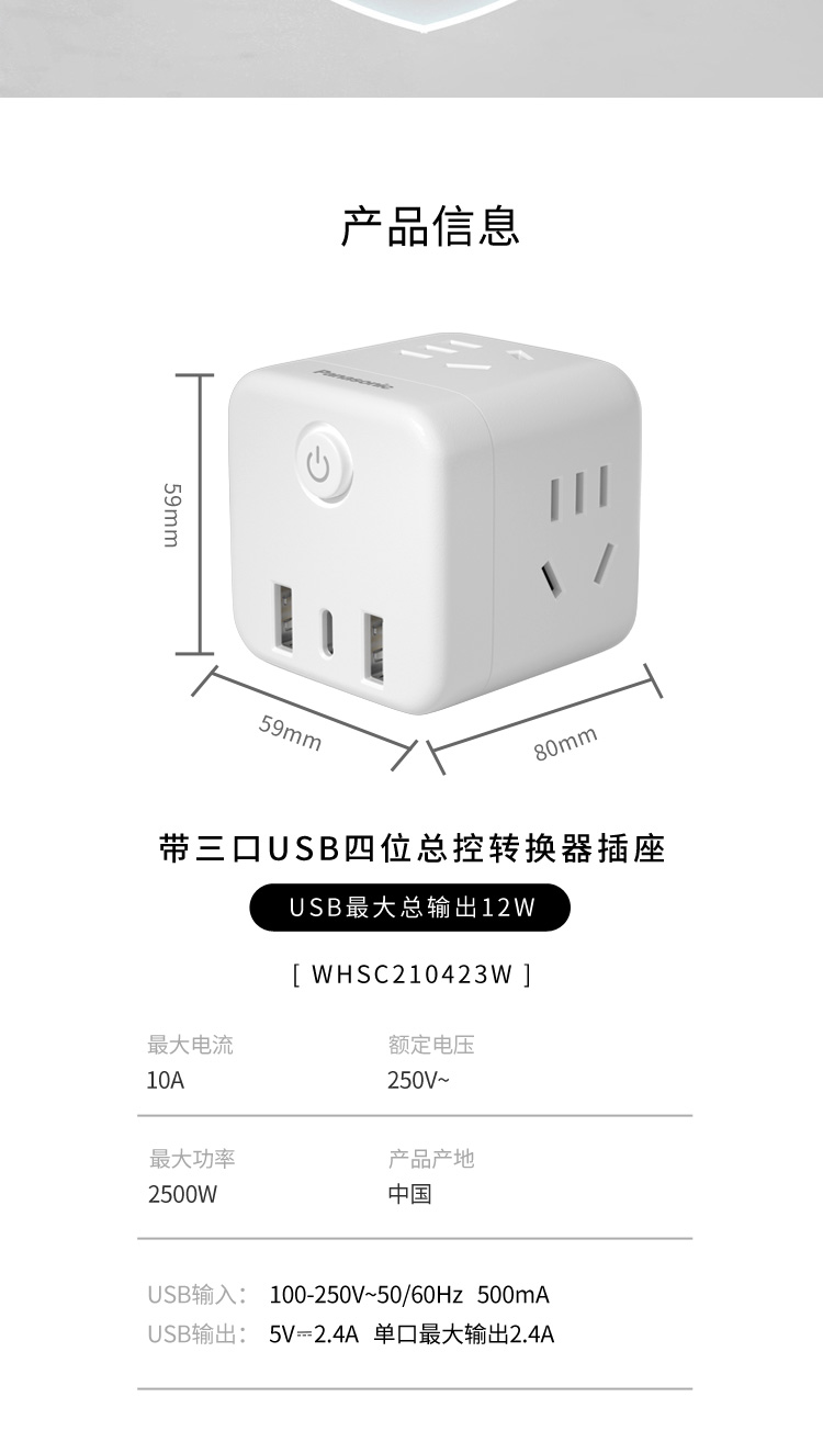 松下( Panasonic)魔方插座/多功能插座/插座转换器 总控一转四无线魔方 USB输出12W转换插头WHSC210423W