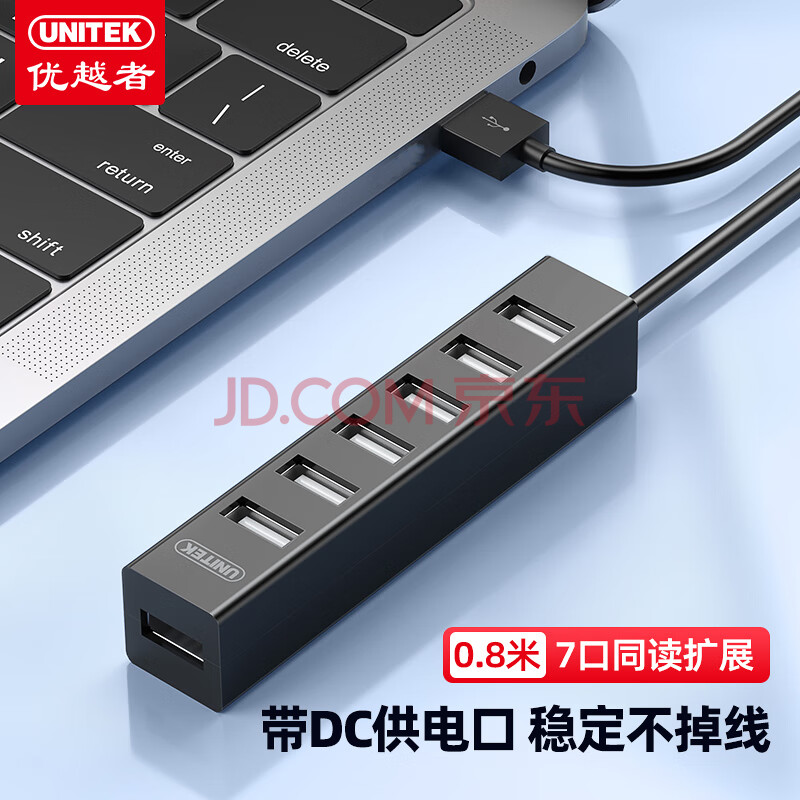优越者(UNITEK)usb分线器一拖七高速拓展7口2.0HUB集线器扩展坞笔记本电脑转换器延长线0.8米Y-2160BK