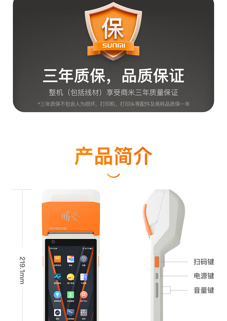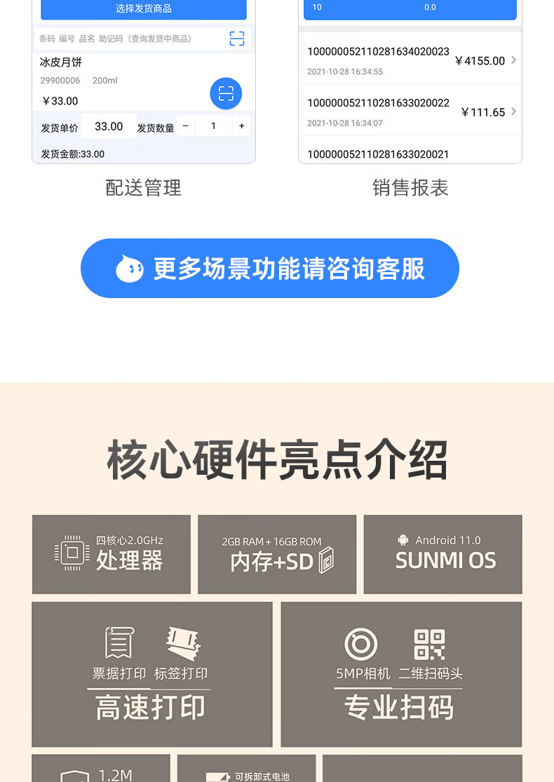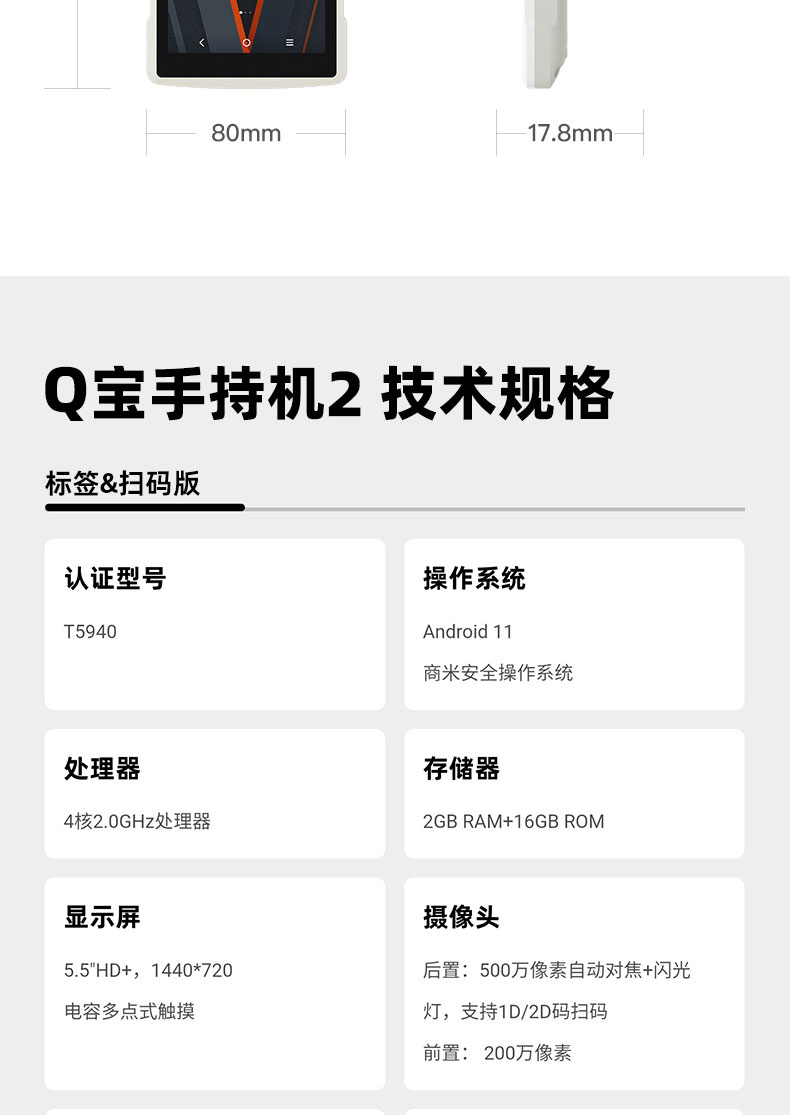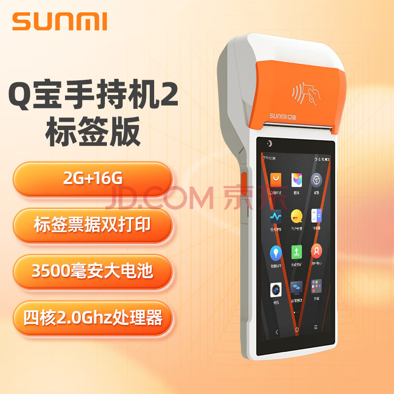 商米(sunmi)Q宝手持机2标签版 收银机一体机 移动点餐机小票标签票据打印 零售餐饮外卖 扫码收款机 2+16G