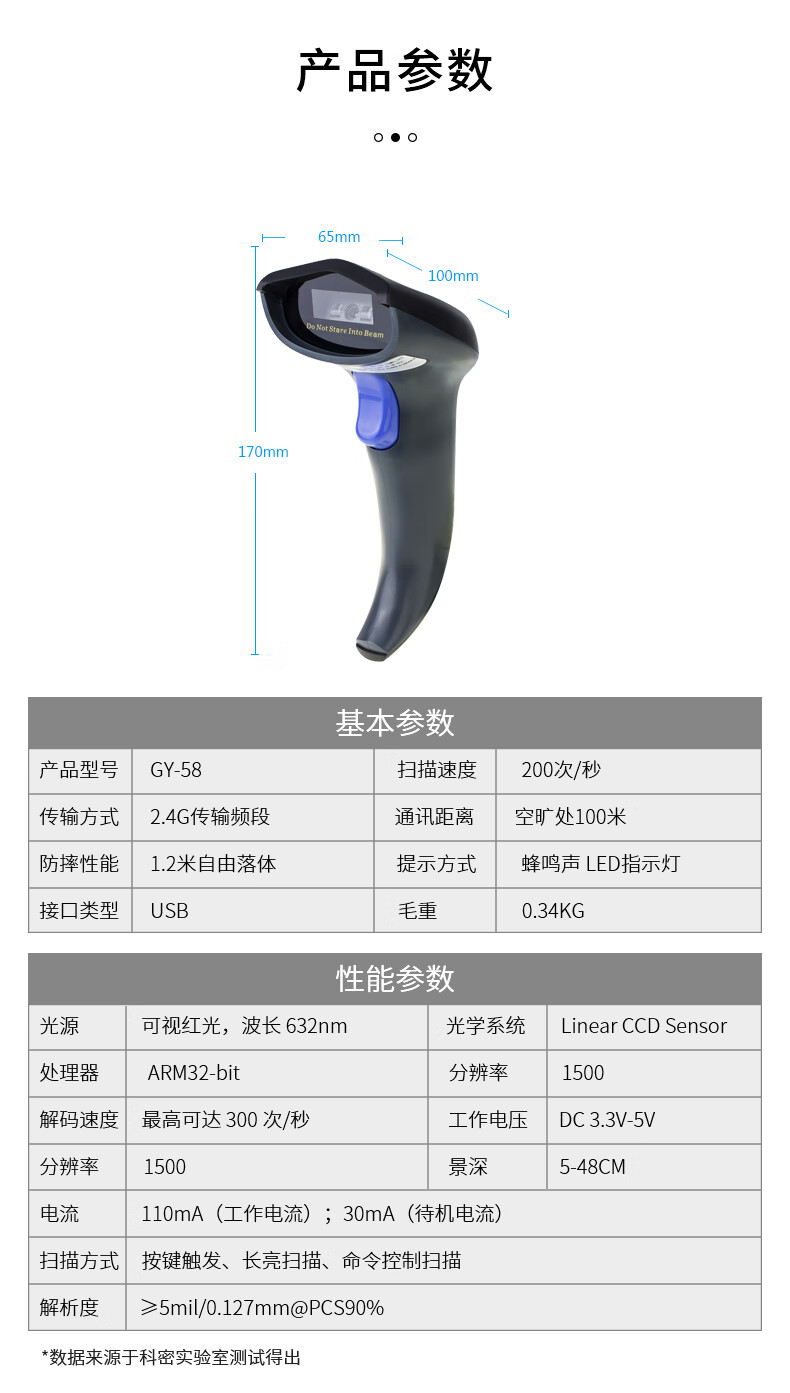 科密(comet) GY-58 无线一维码CCD红光扫描枪扫码枪条码枪扫描器 零售快递物流商品码 屏幕微信收银