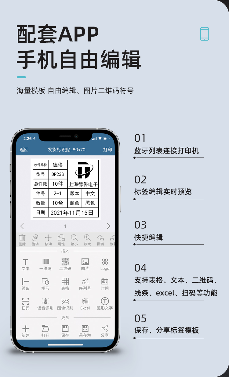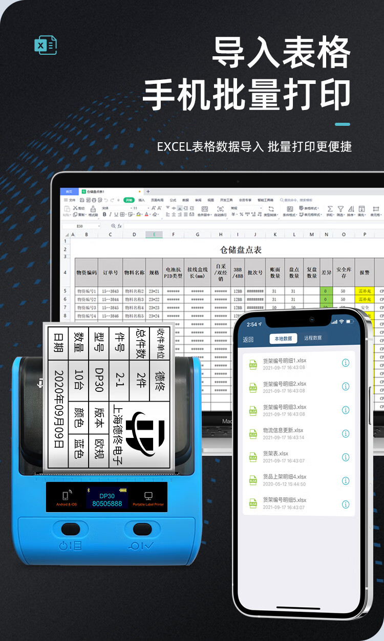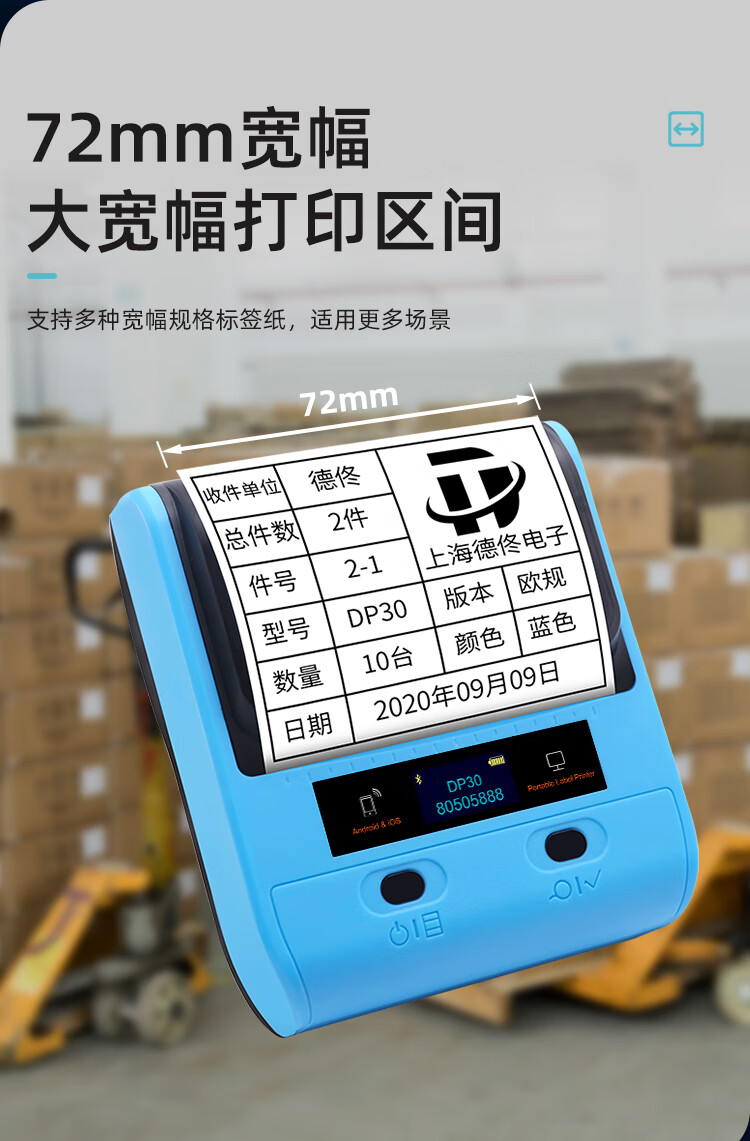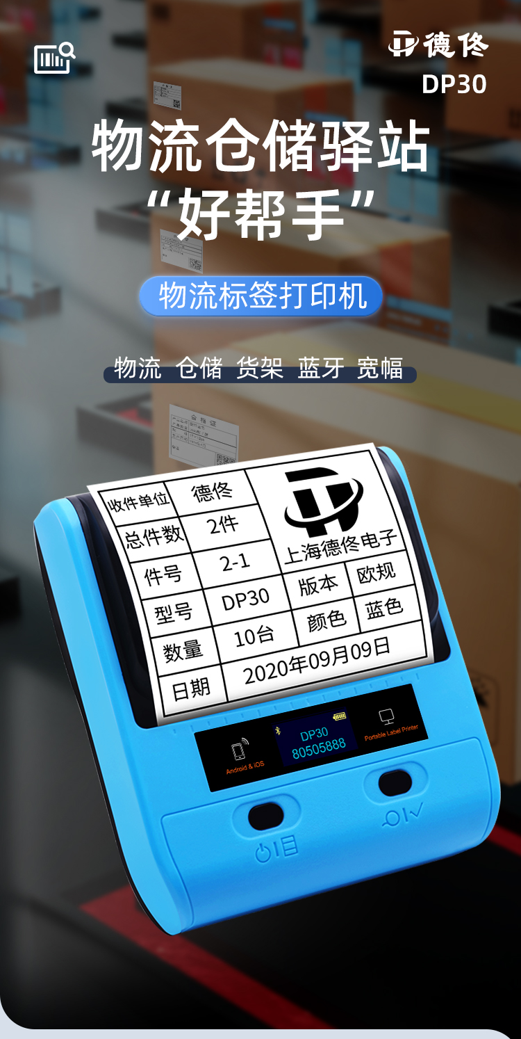 德佟DP30标签打印机热敏手持便携式仓储物流仓库箱唛货架不干胶贴纸手机蓝牙连接打印机 DP30+7卷空白标签