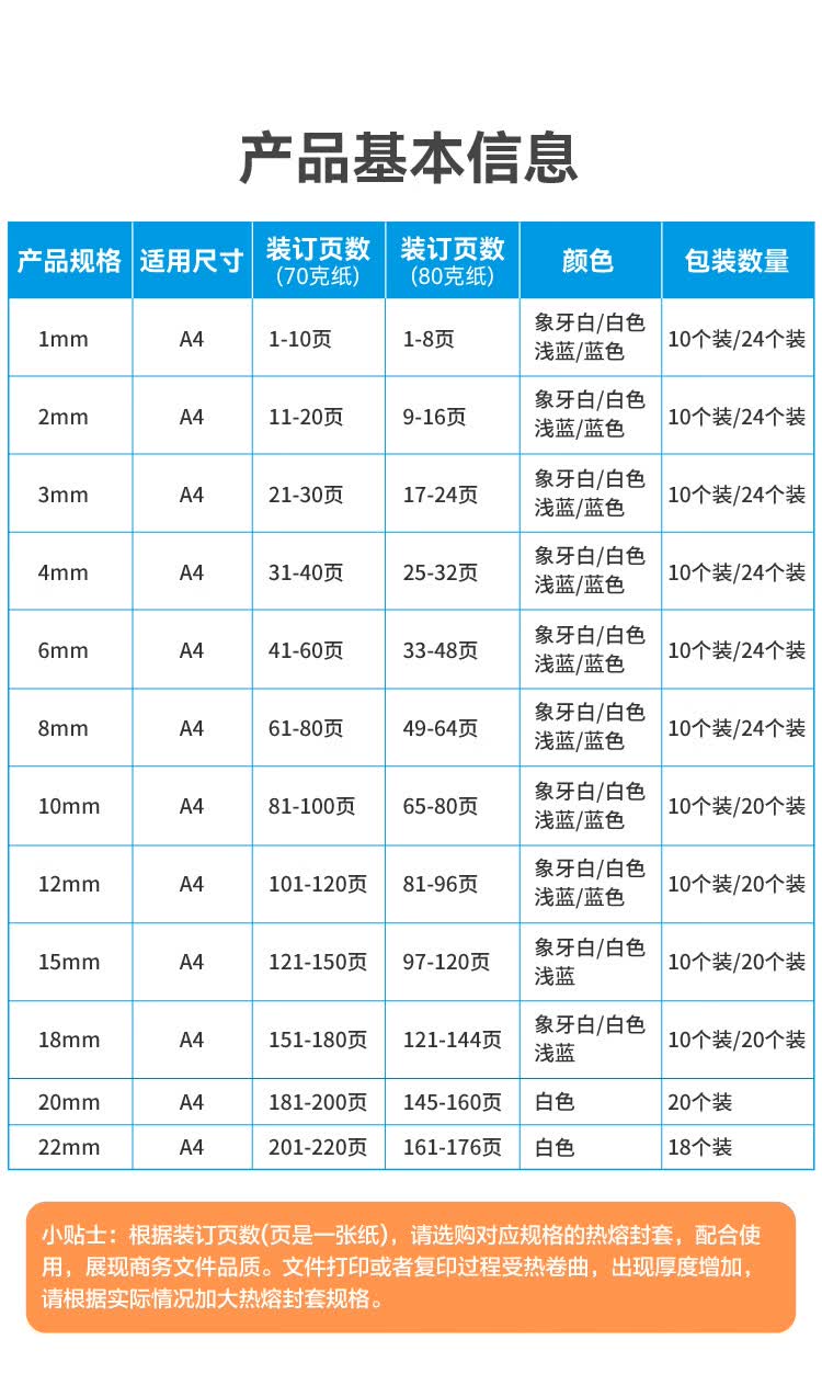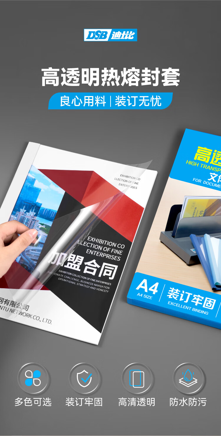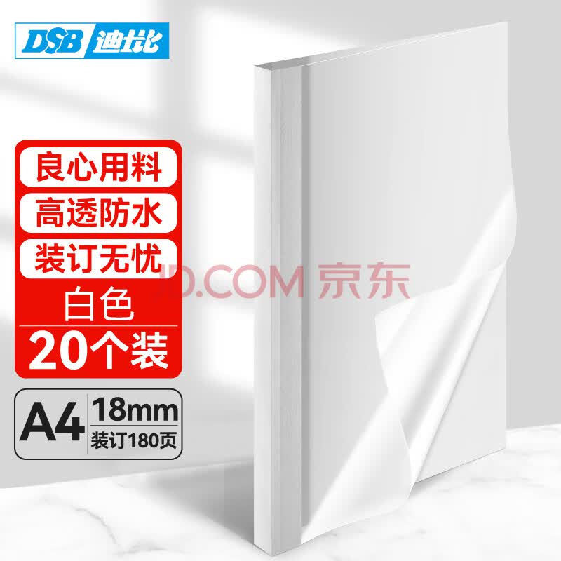 DSB(迪士比)高透明热熔封套A4 热熔装订机专用胶装封面装订封皮 白色 18mm 20个装