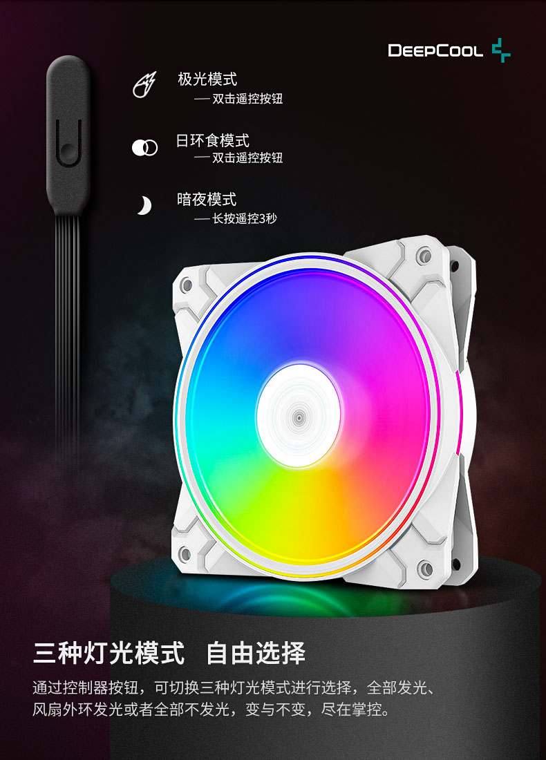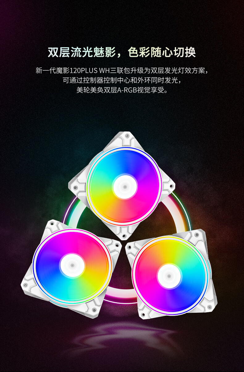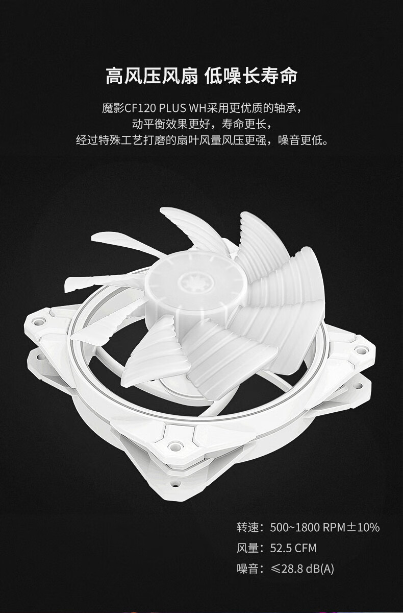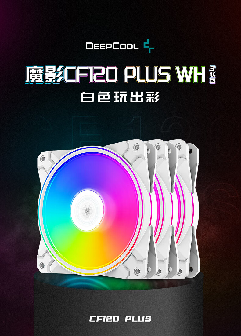 九州风神(DEEPCOOL)魔影CF120Plus白色 三联包 (白色机箱风扇/三个ARGB幻彩风扇/温控/标配线控/主板同步)