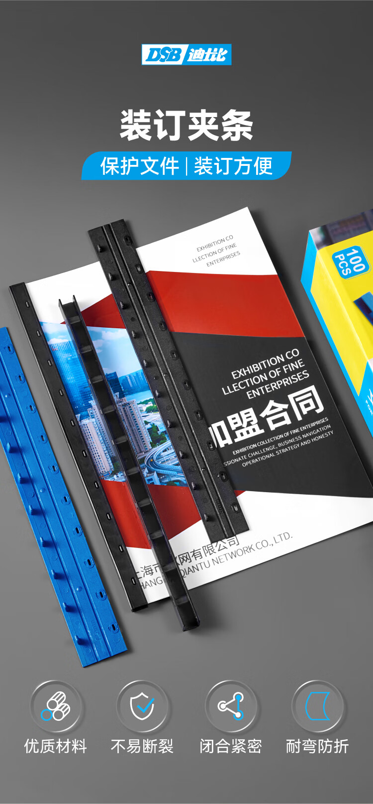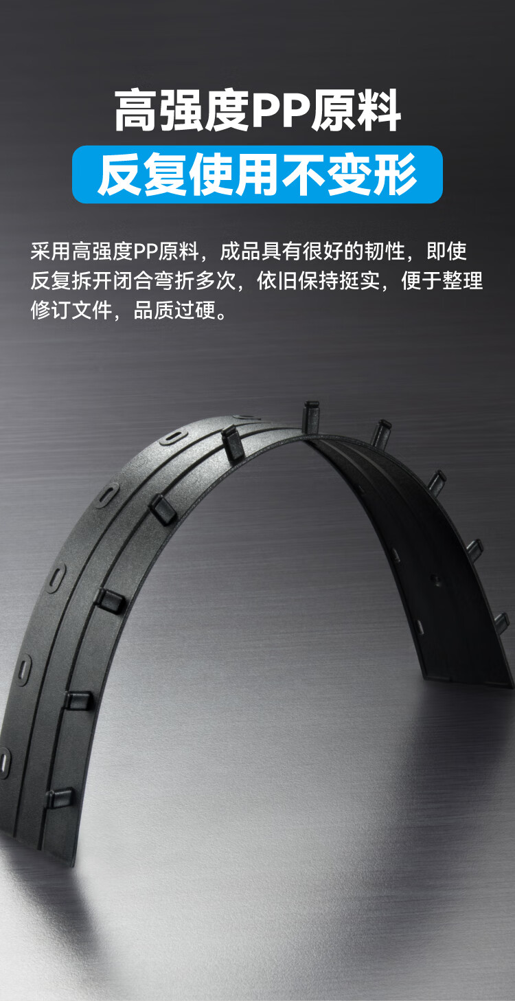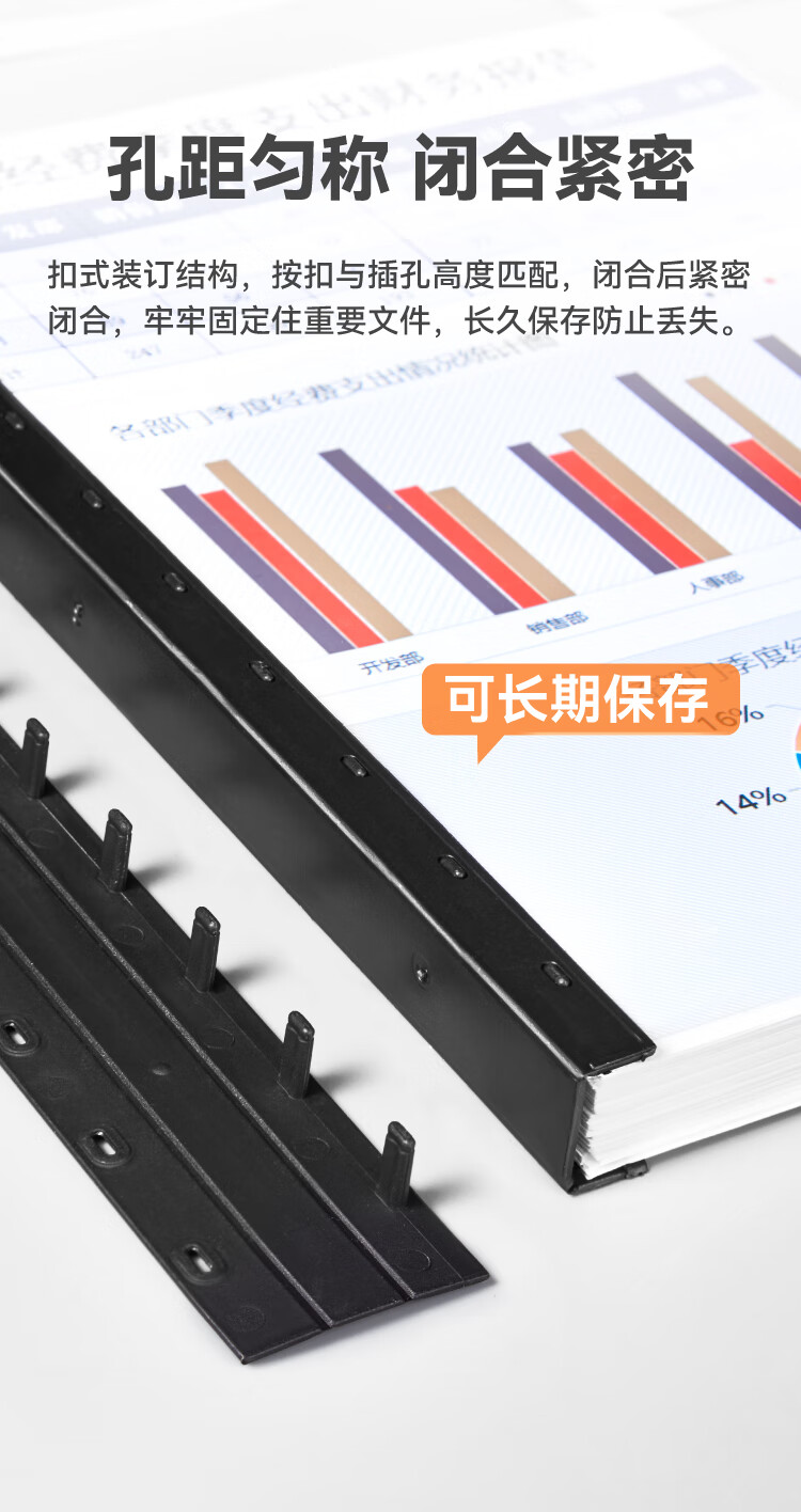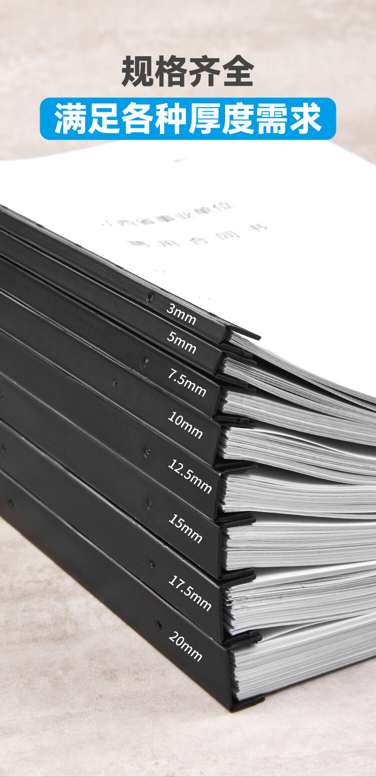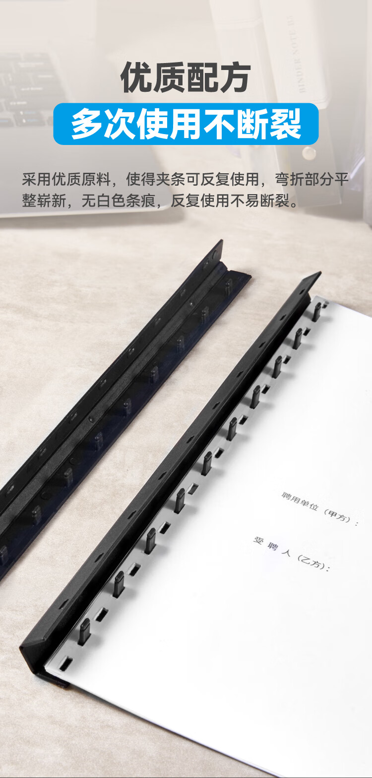 DSB(迪士比)10孔装订夹条 黑色 A4 20mm 装订200页 办公用品标书合同装订打孔机塑料压条 100根/盒