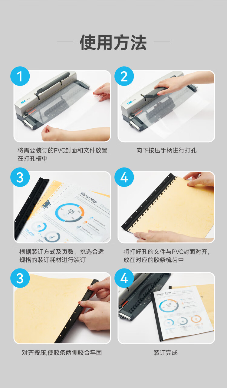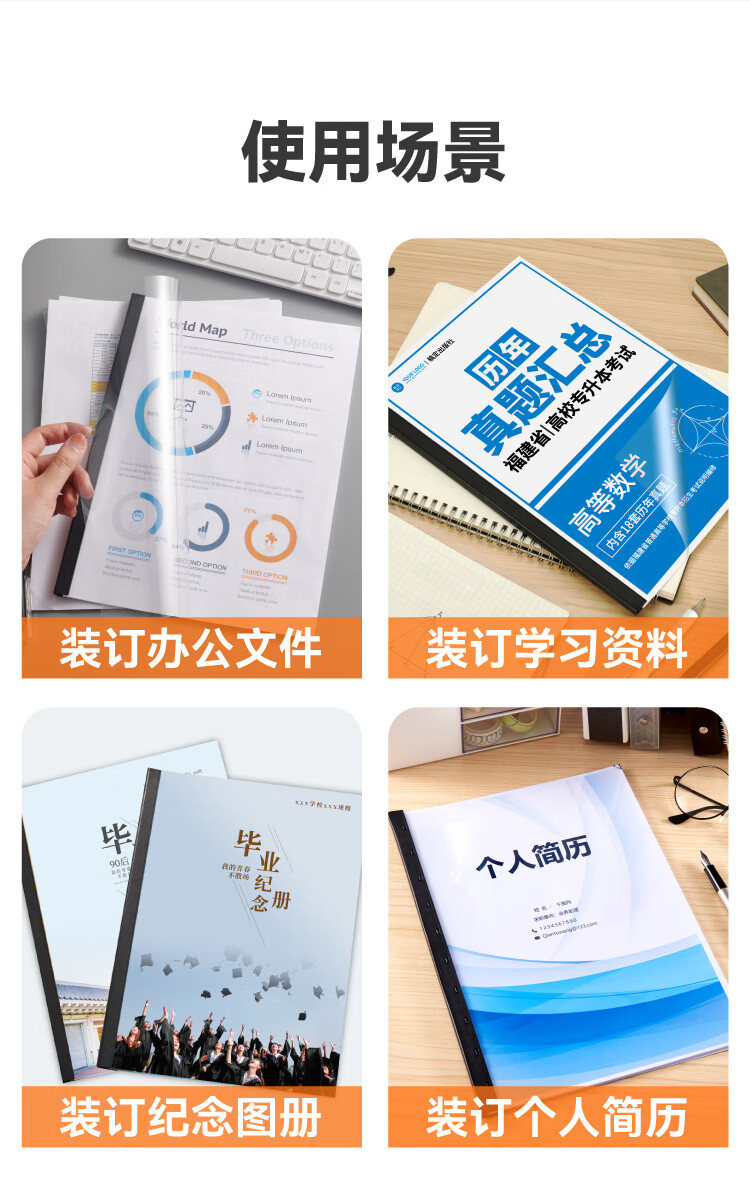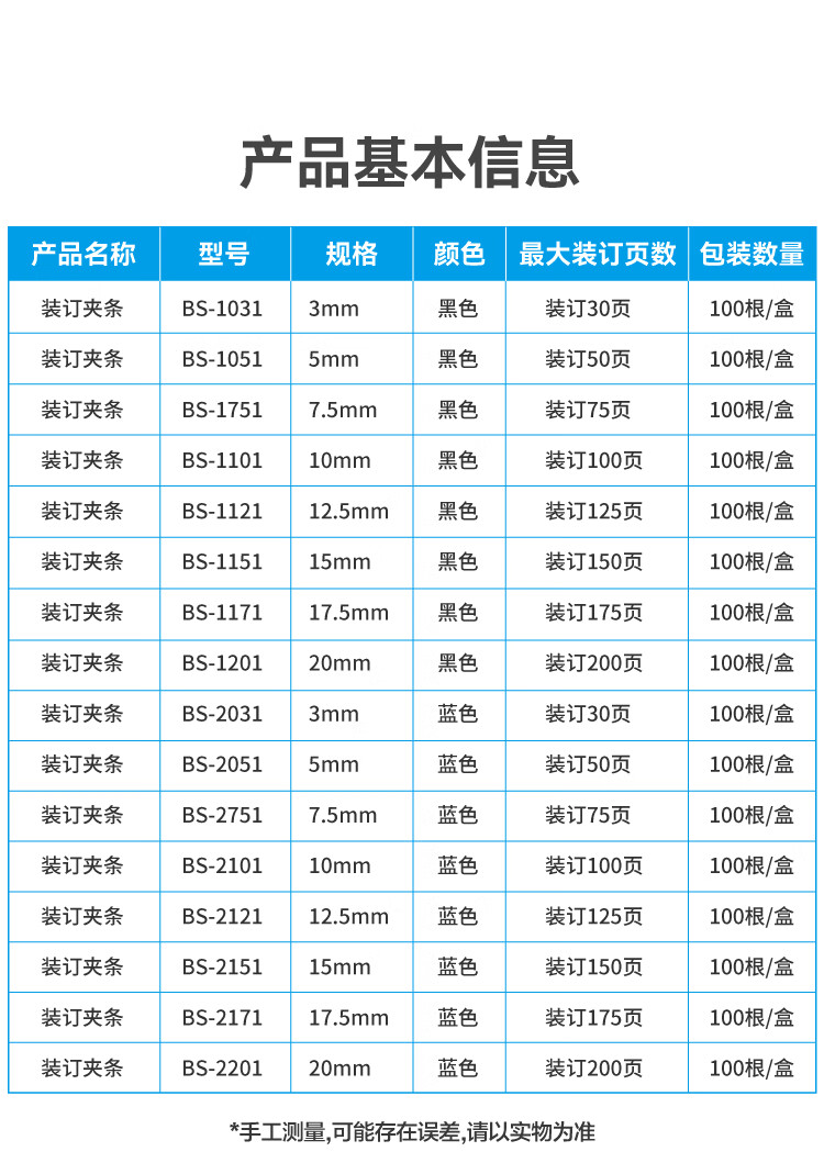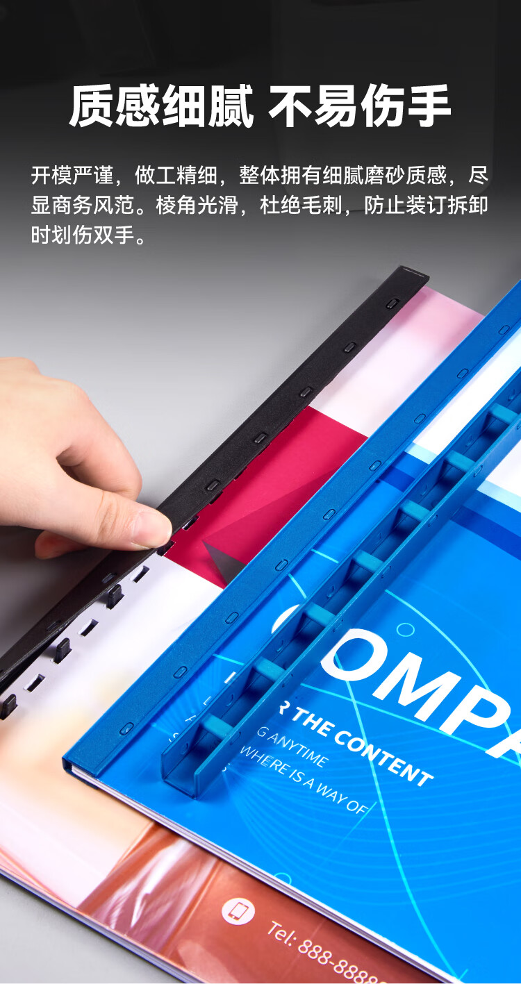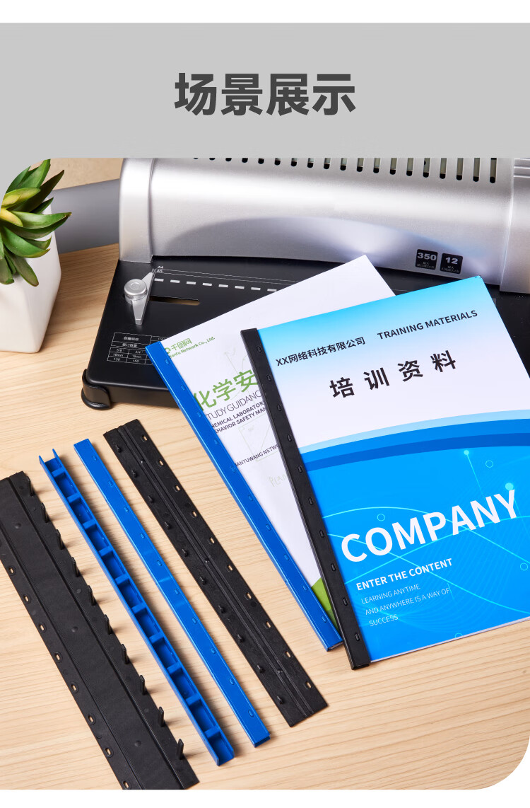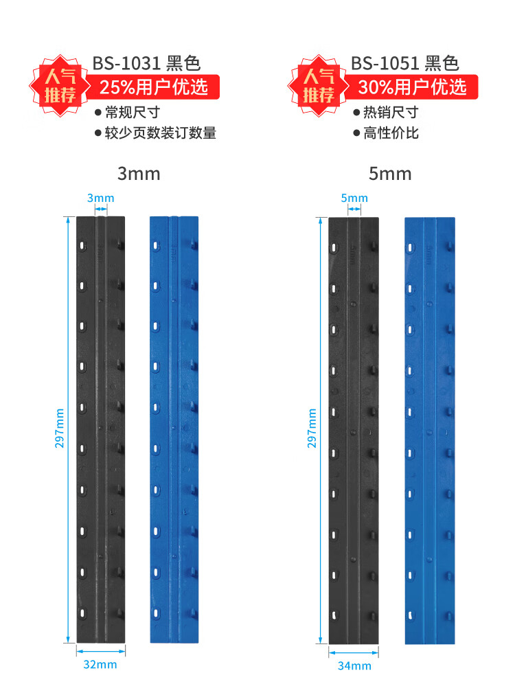 DSB(迪士比)10孔装订夹条 黑色 A4 20mm 装订200页 办公用品标书合同装订打孔机塑料压条 100根/盒
