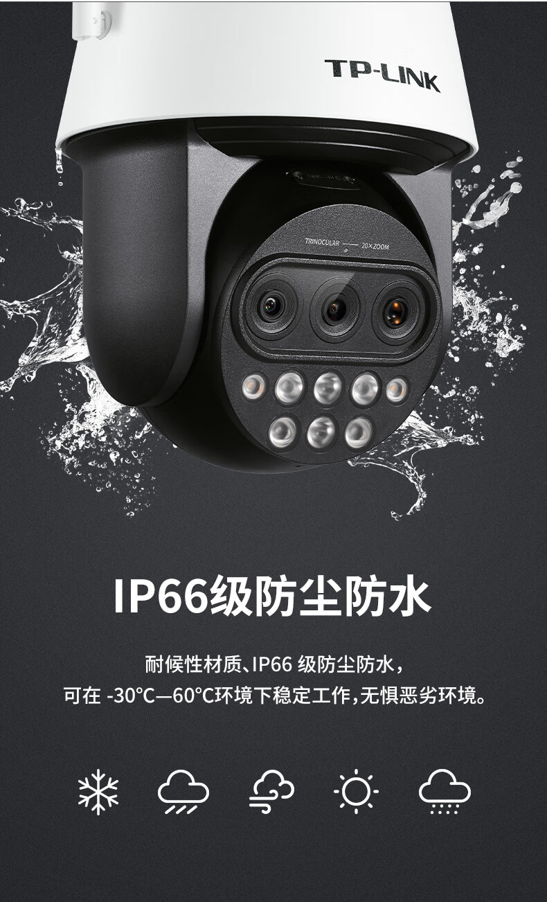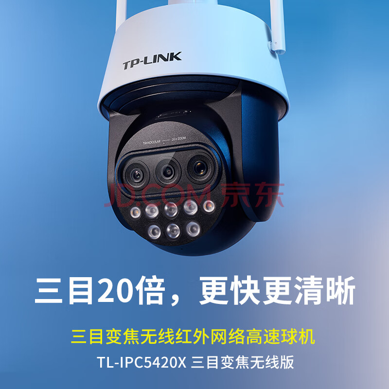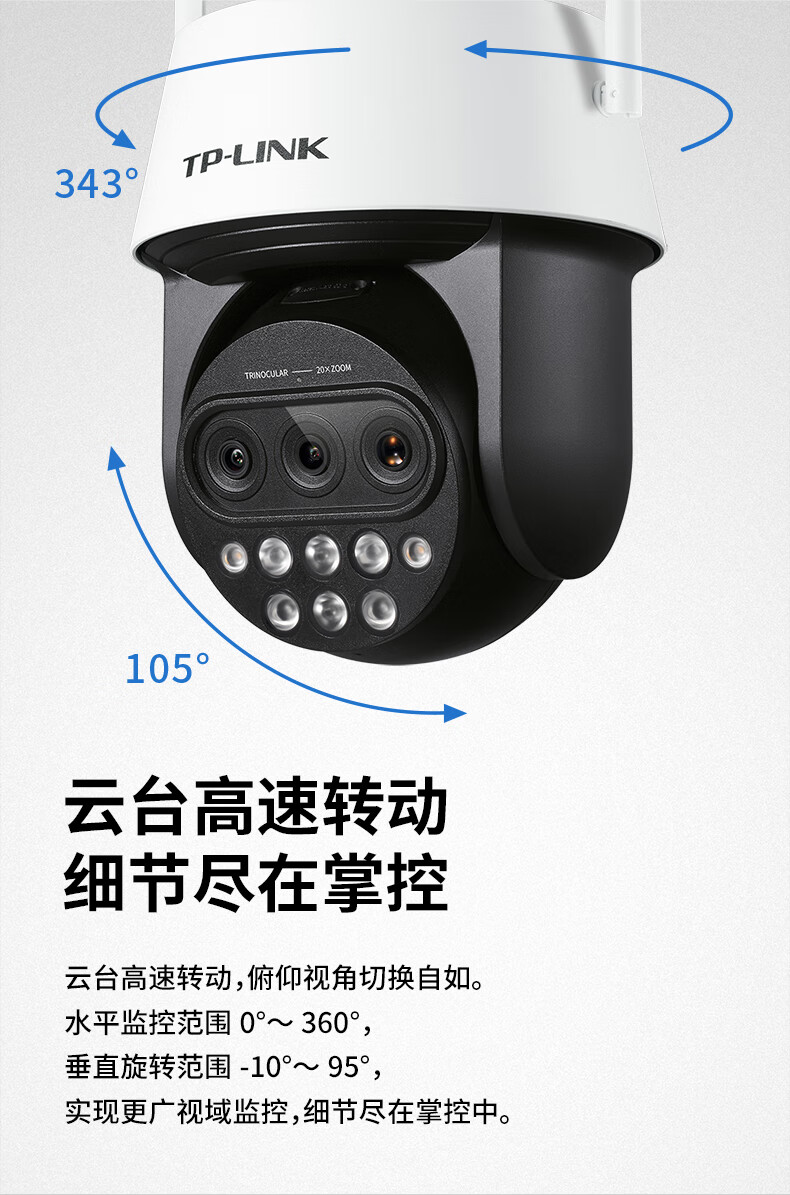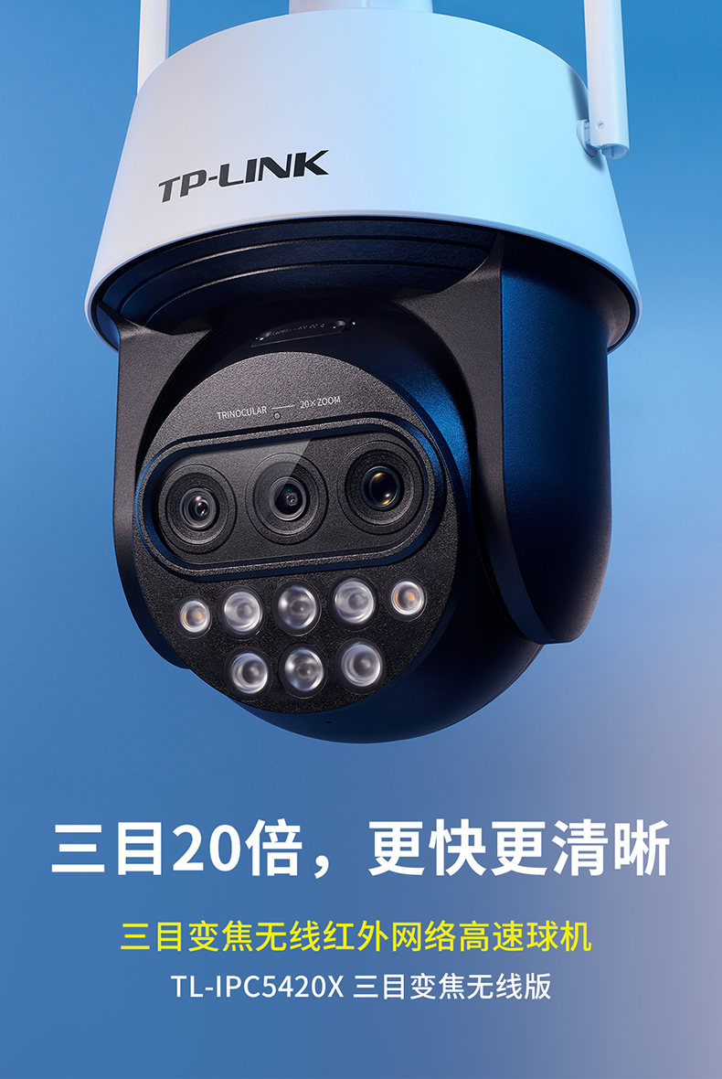 TP-LINK 20倍变焦 双频5G WiFi监控摄像头 360度全景室外防水远程网络高清 TL-IPC5420X三目变焦无线版