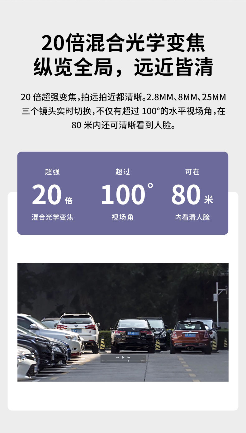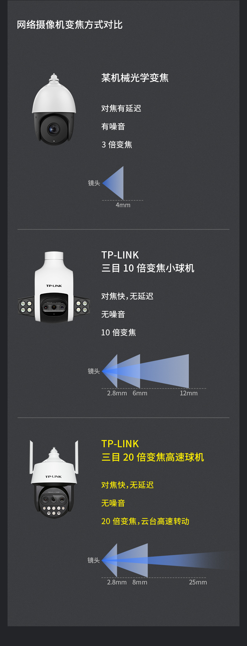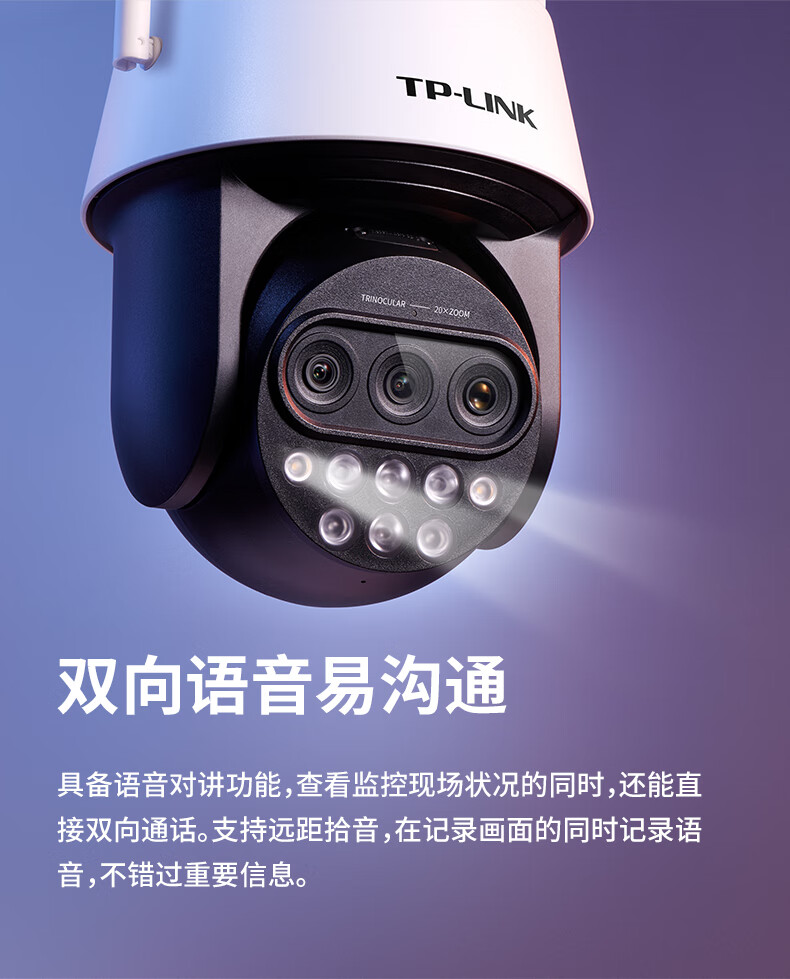 TP-LINK 20倍变焦 双频5G WiFi监控摄像头 360度全景室外防水远程网络高清 TL-IPC5420X三目变焦无线版