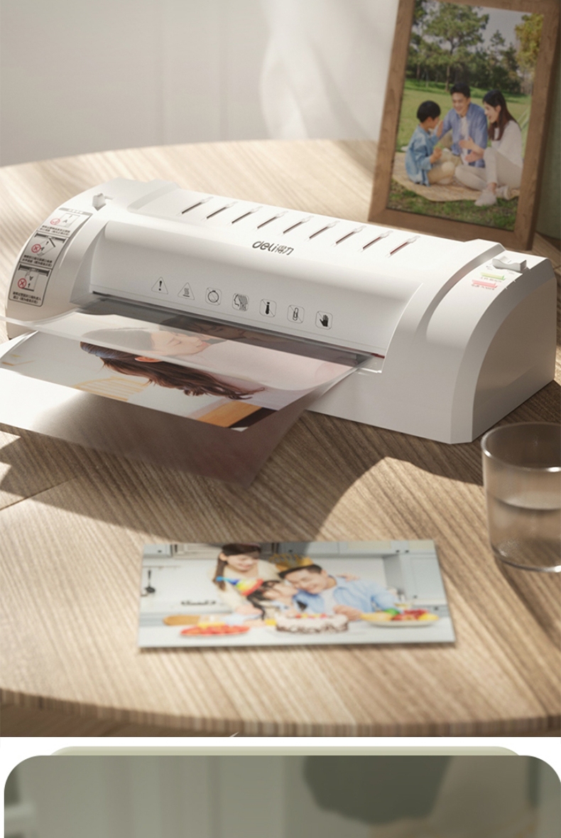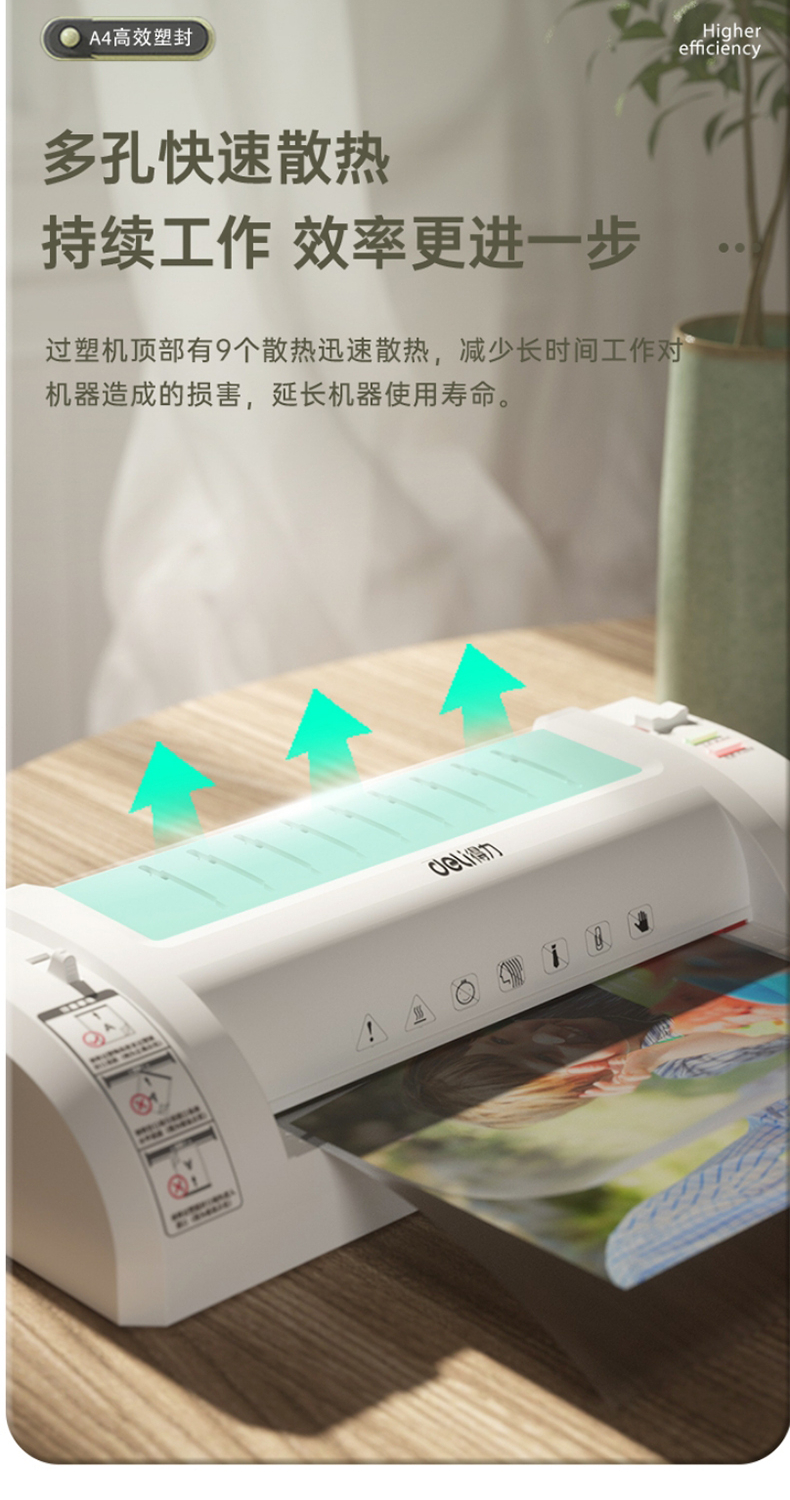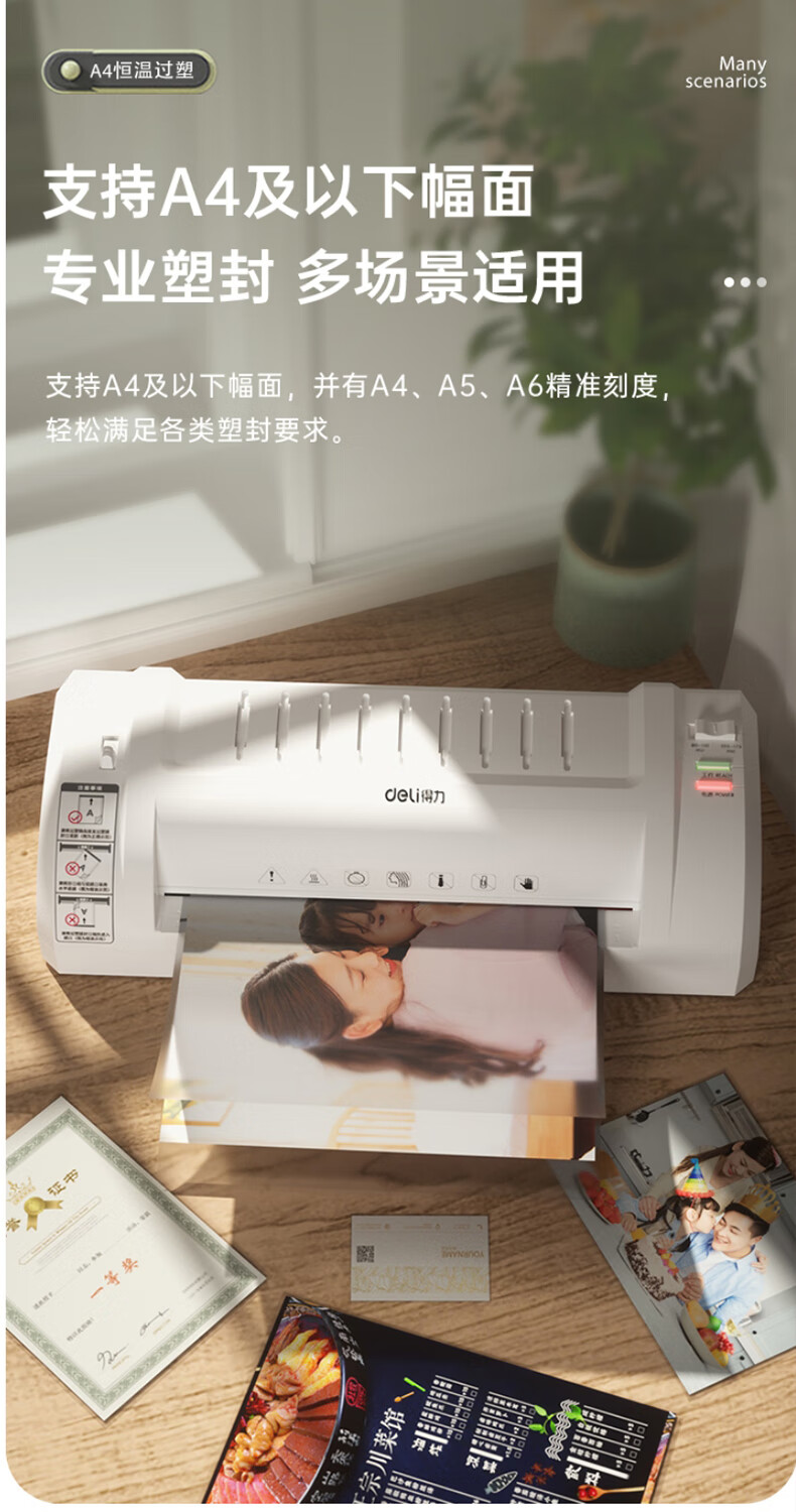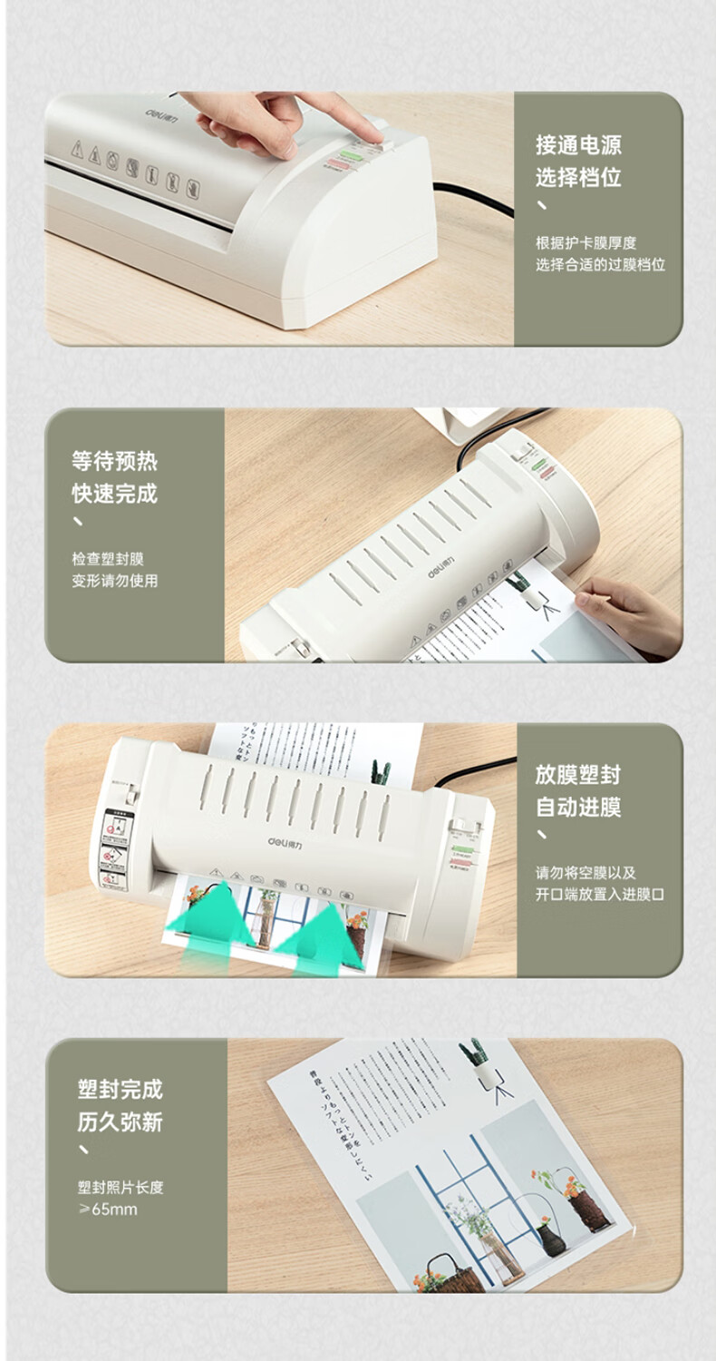 得力 塑封机 封胶机 家用胶装机过膜机覆膜机包装机小型家用适用办公文件A4简洁时尚照片 3893银灰