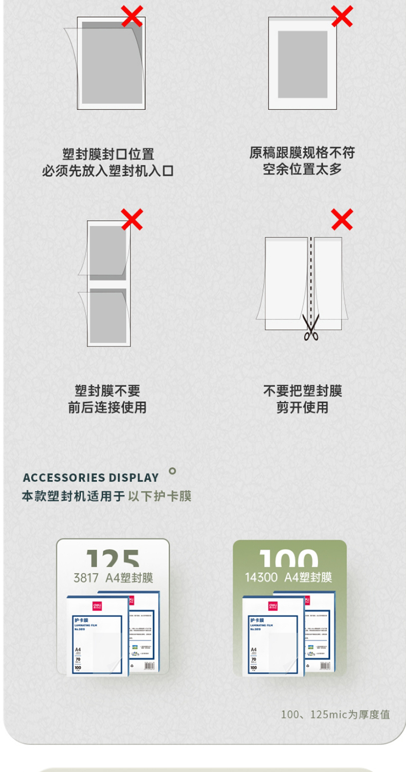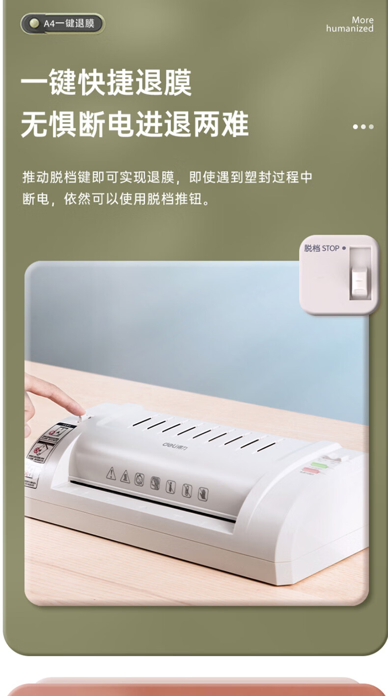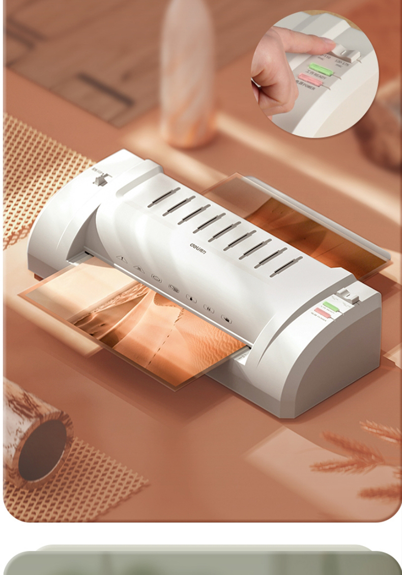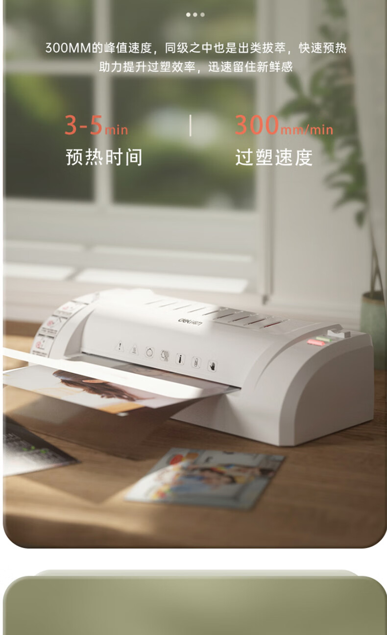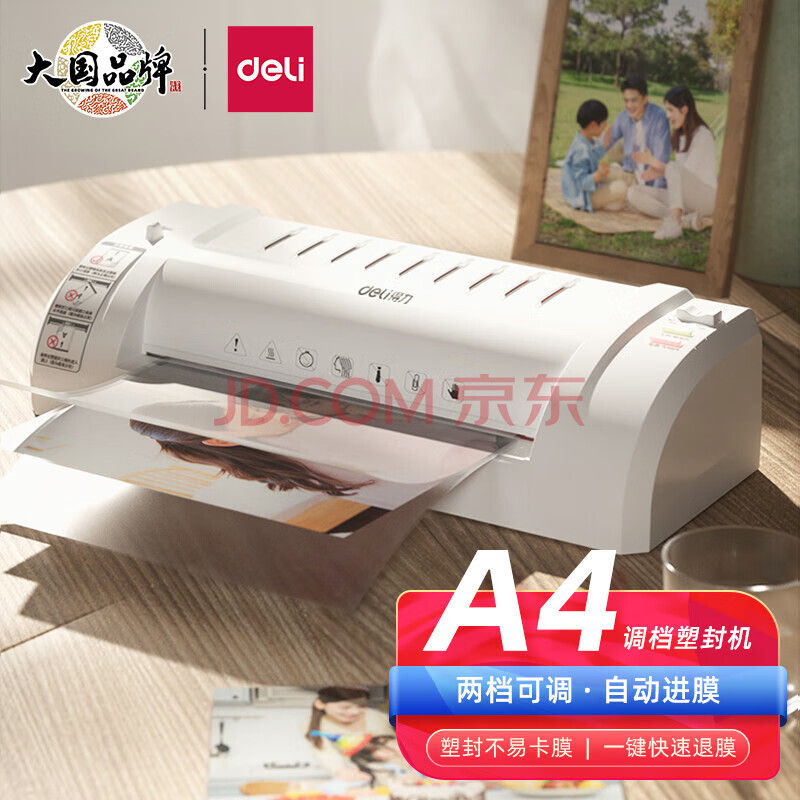 得力 塑封机 封胶机 家用胶装机过膜机覆膜机包装机小型家用适用办公文件A4简洁时尚照片 3893银灰
