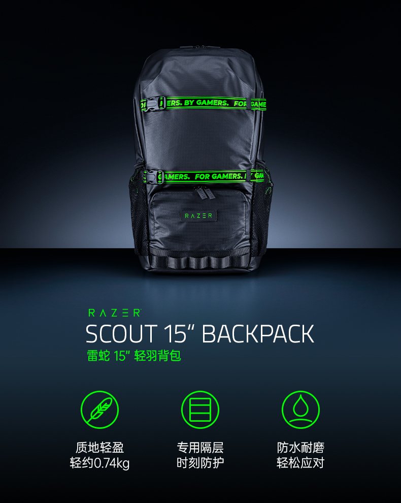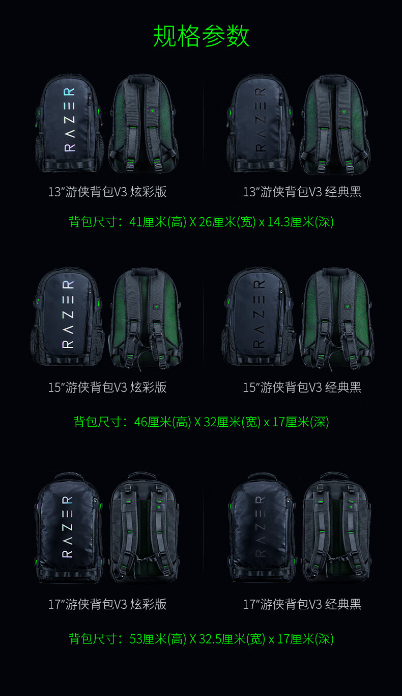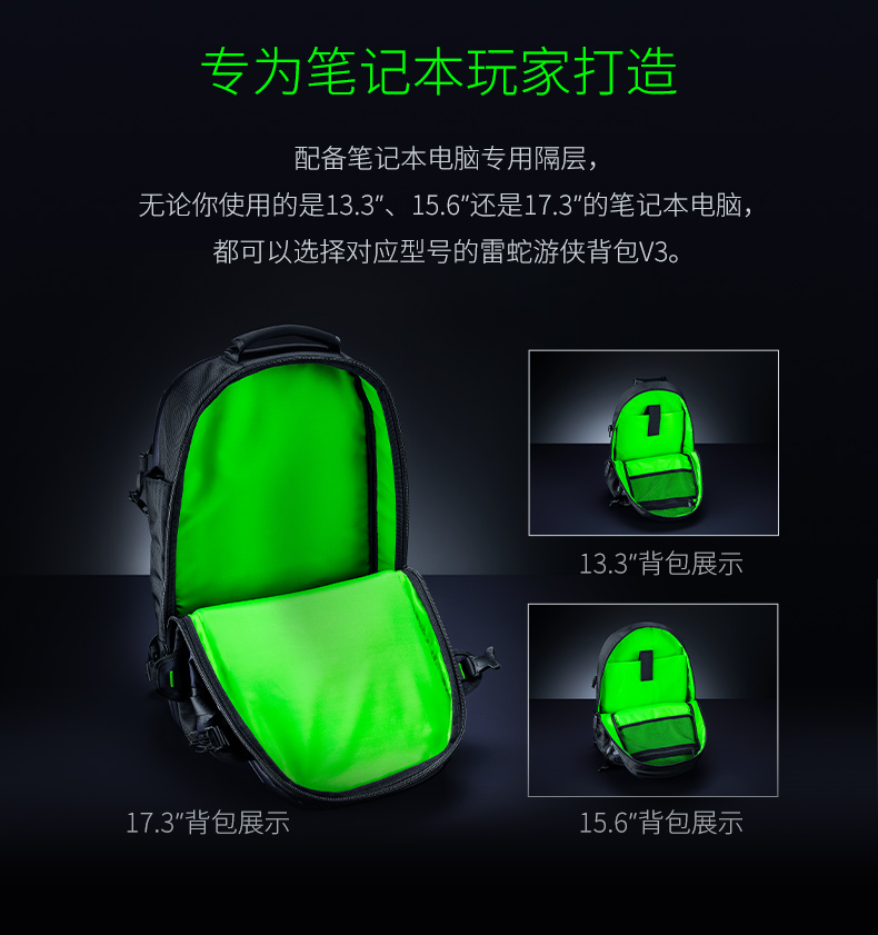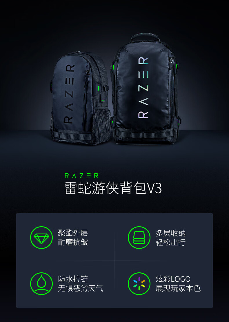 雷蛇(Razer) 全能背包游侠背包战术背包笔记本防水双肩游戏背包登山包 雷蛇13” 游侠背包V3