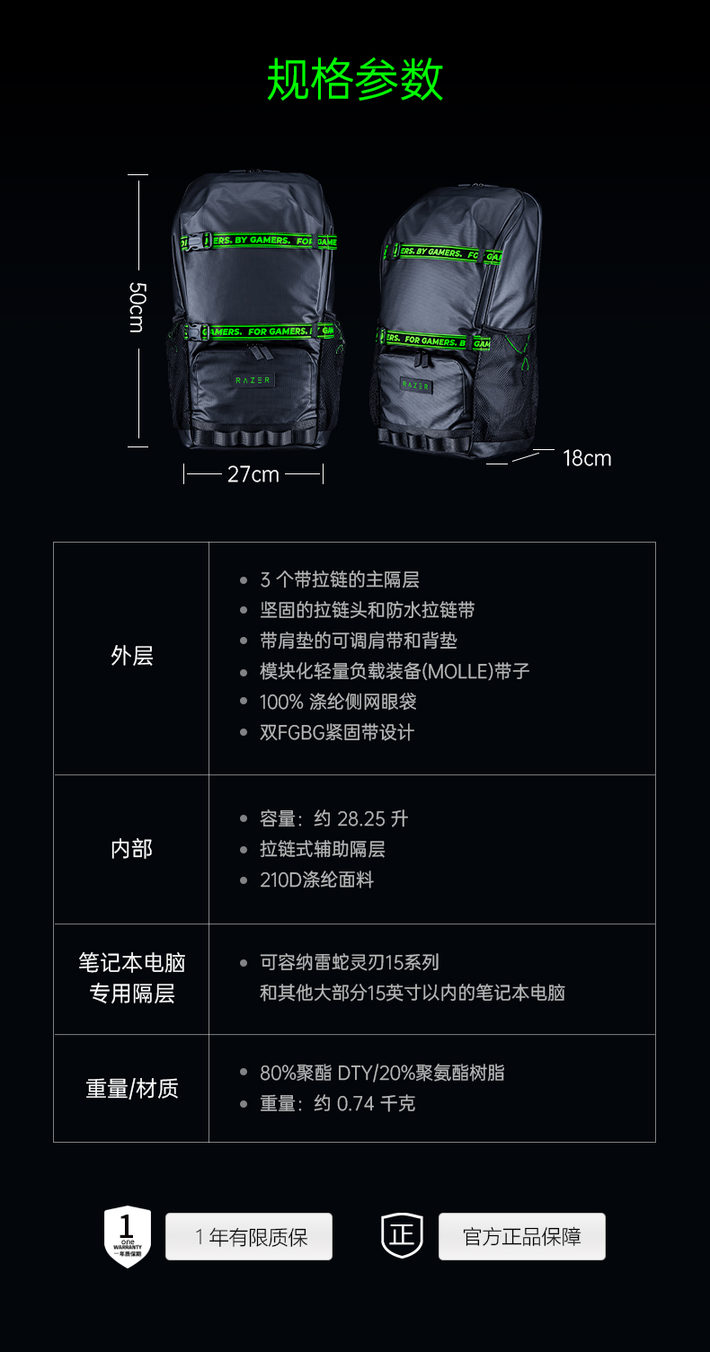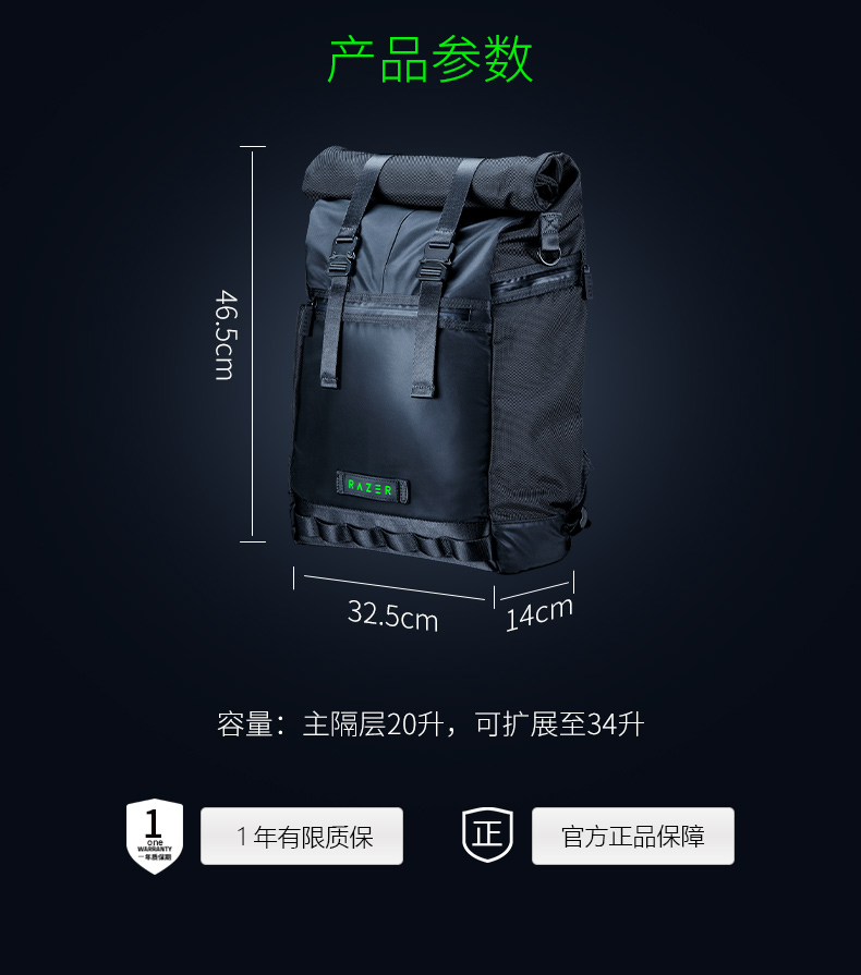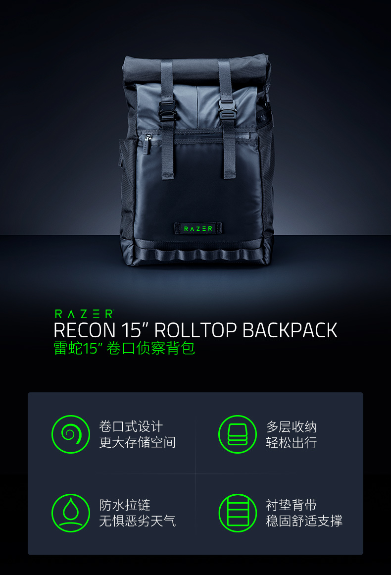 雷蛇(Razer) 全能背包游侠背包战术背包笔记本防水双肩游戏背包登山包 雷蛇13” 游侠背包V3