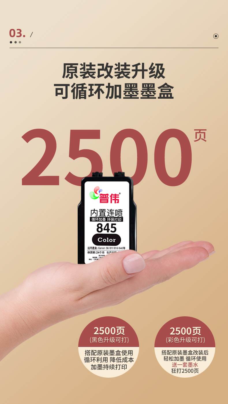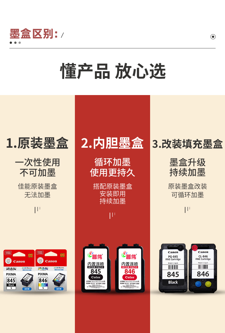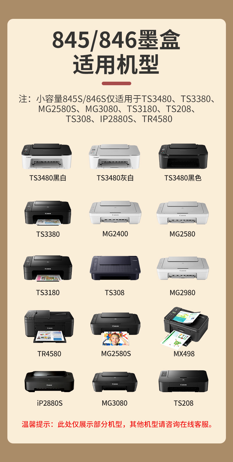 普伟PG845 CL846适用佳能打印机墨盒MG2400 3080 2580 TS3480/3380 普伟CL-846彩色连喷墨盒(装机即用)循环加墨 墨盒