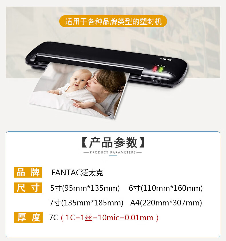 泛太克(FANTAC) 7寸/100张 70mic过塑膜塑封膜8C丝相纸塑封护卡膜相片保护膜