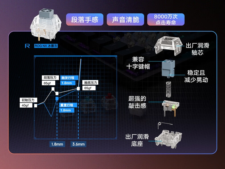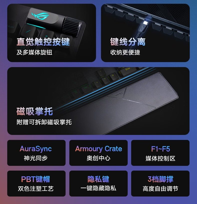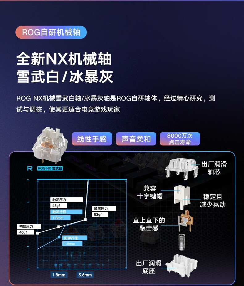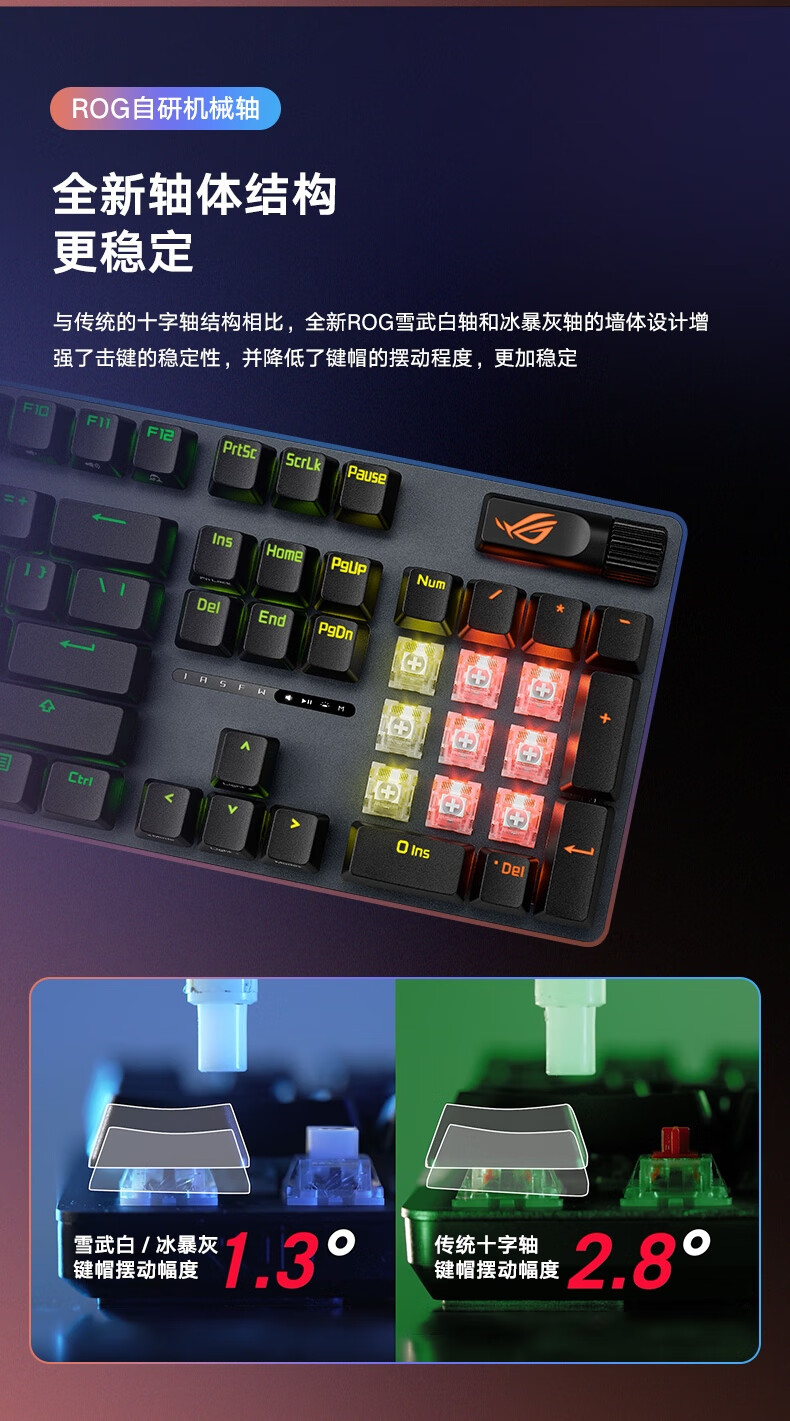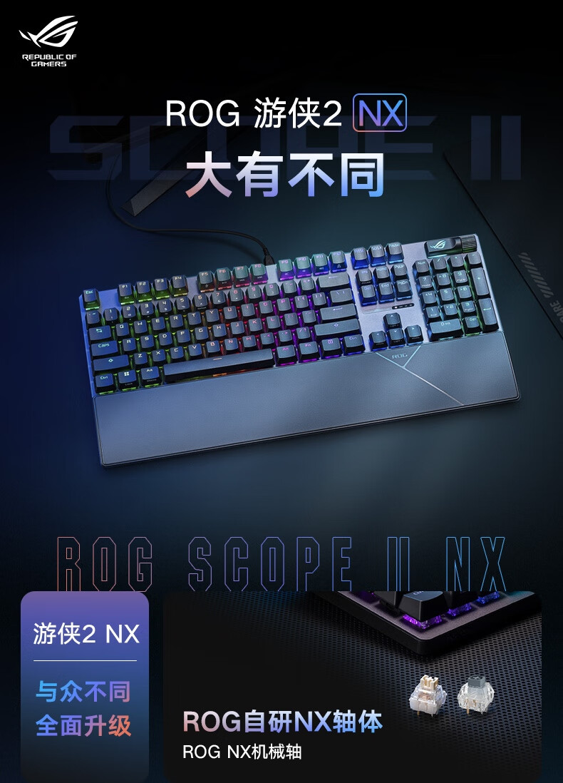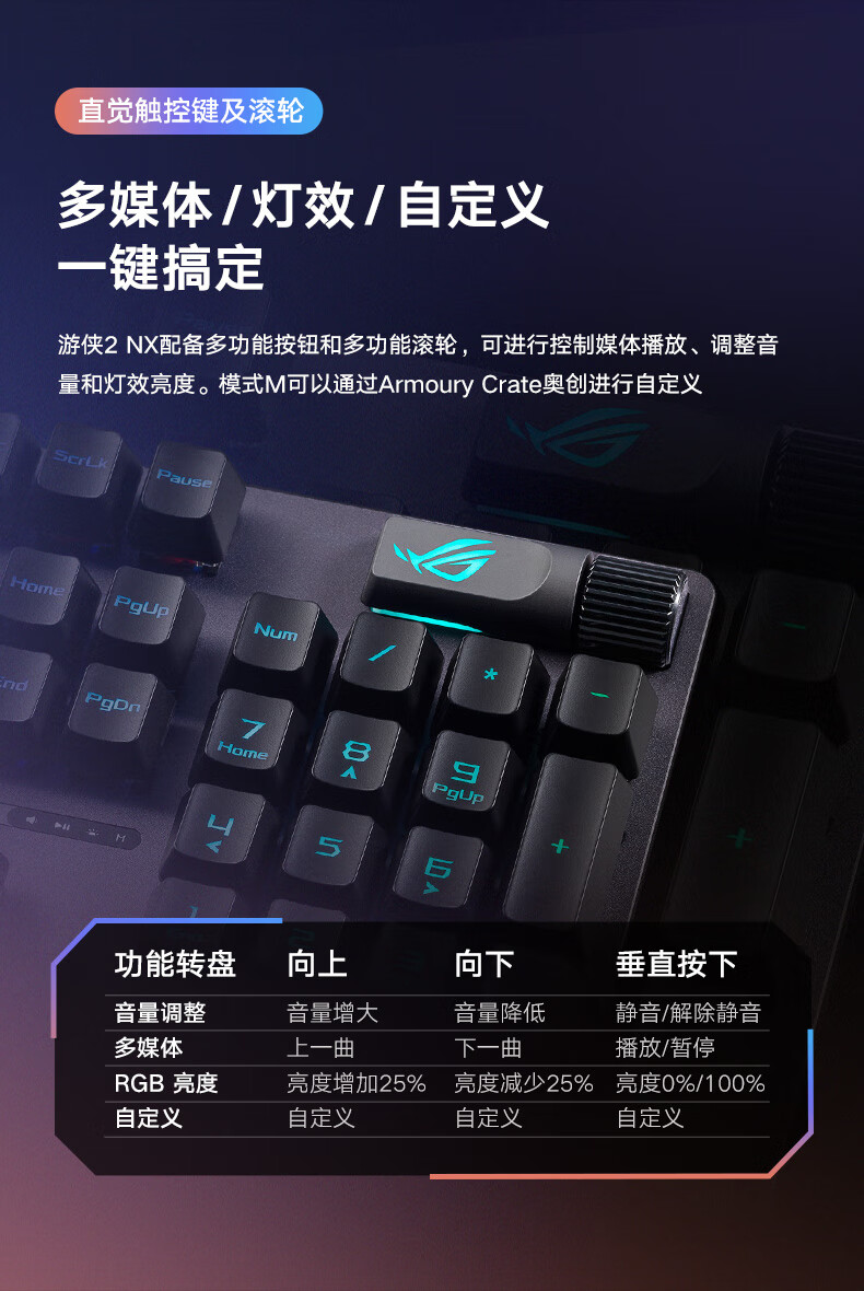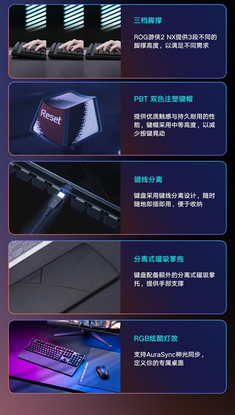 ROG 游侠2 NX PBT版 机械键盘 有线游戏键盘 NX冰暴灰轴 RGB背光键盘 104键 黑色