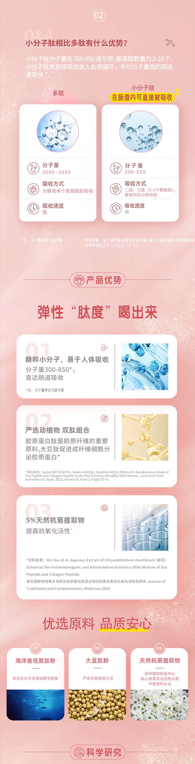 2️⃣小分子活性肽易吸收:小于1000道尔顿的小分子肽,无需经过胃部消化分解,直接到达肠道,更好吸收