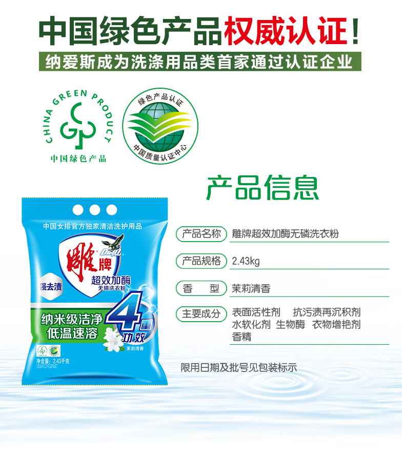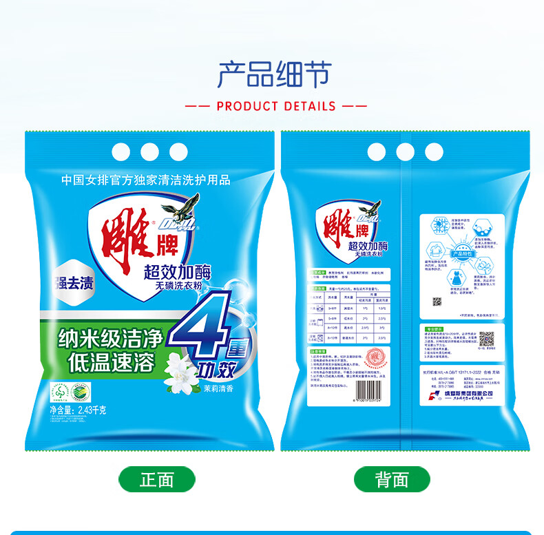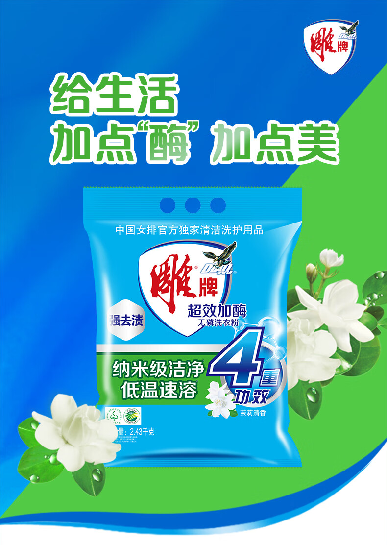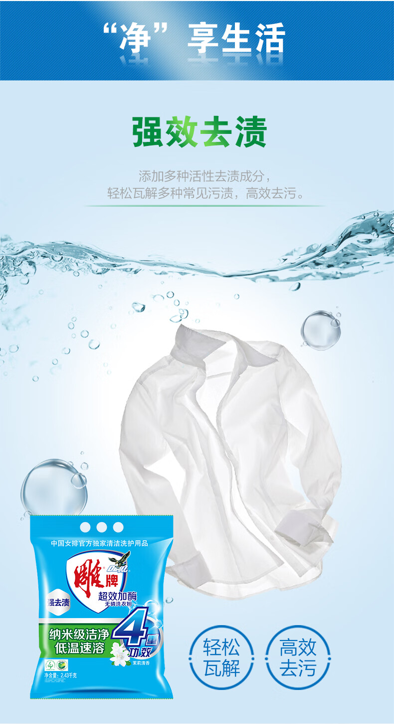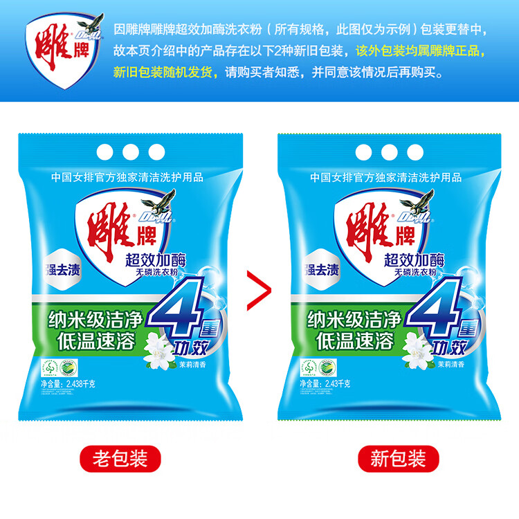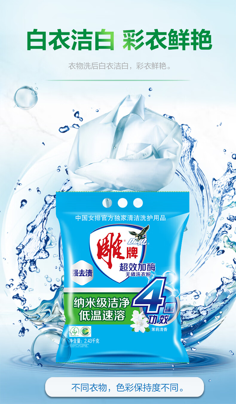 雕牌 超效加酶无磷洗衣粉2.43kg 茉莉清香 强效去渍(新老包装随机发)