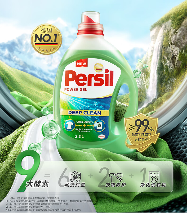 宝莹(Persil)进口洗衣液9大酵素3.7L99%除菌除螨抑菌强效去污护色清香+薰衣草