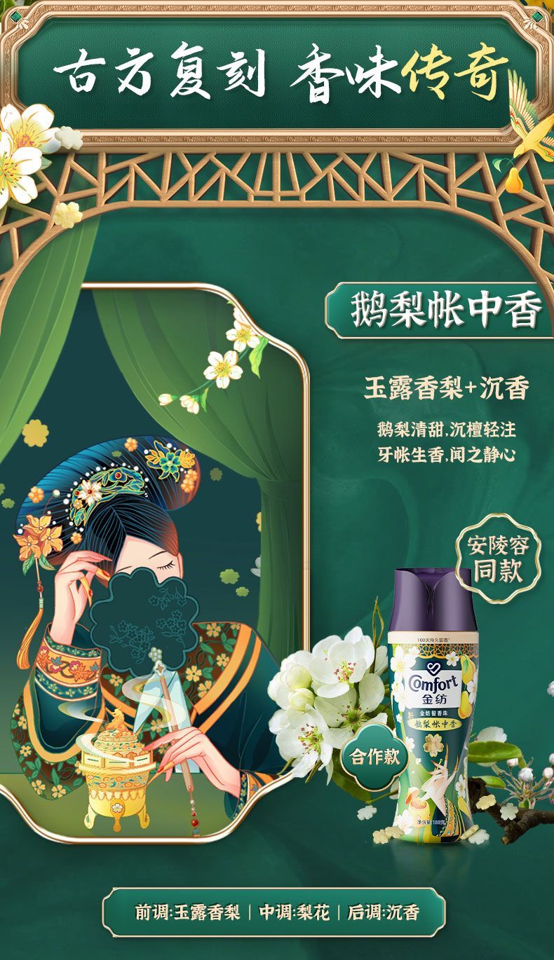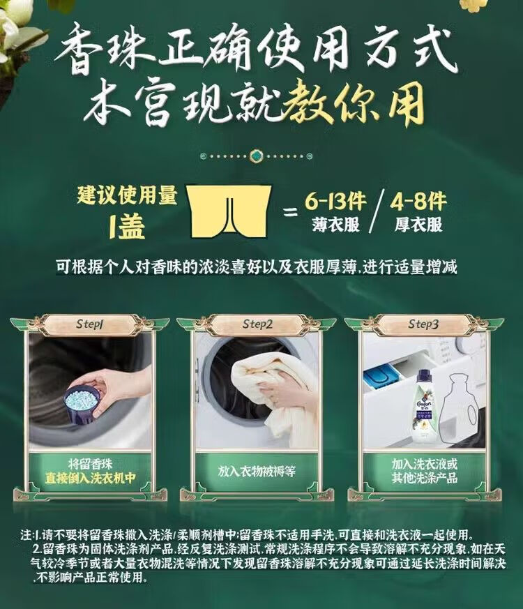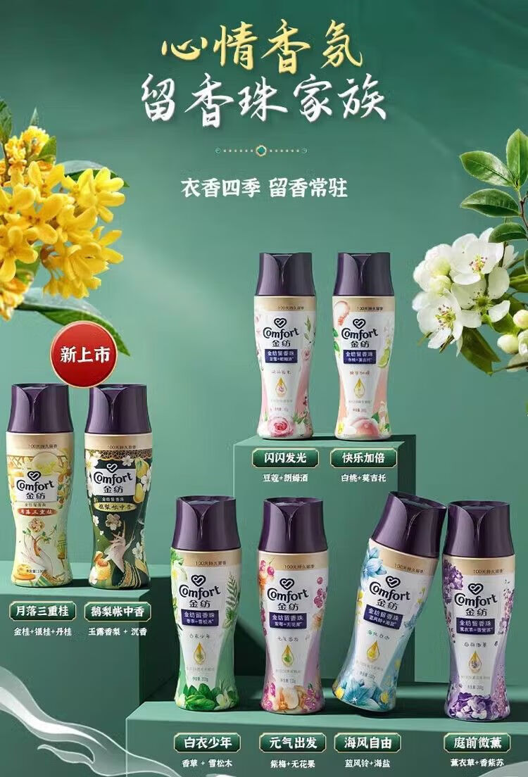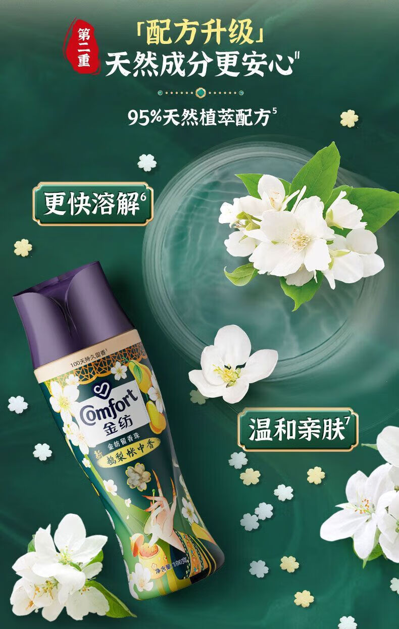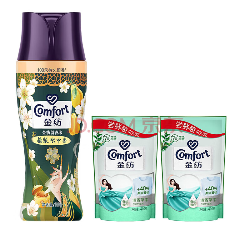 金纺留香珠珠鹅梨+沉香180G+金纺柔顺剂400g*2袋 去静电 不伤衣