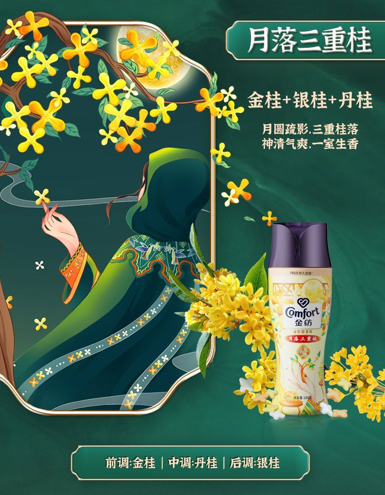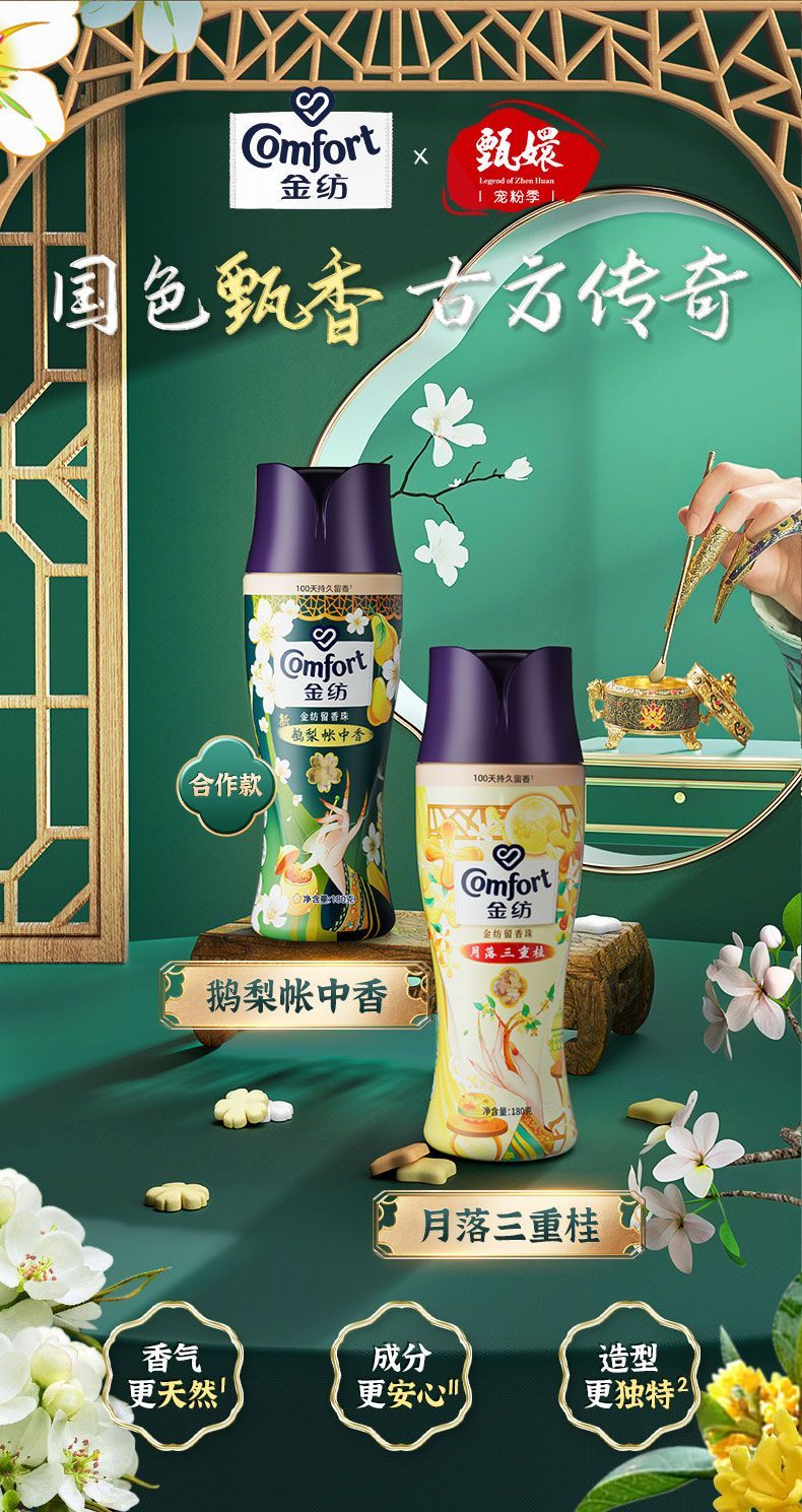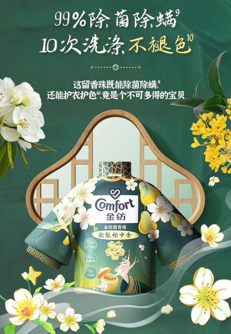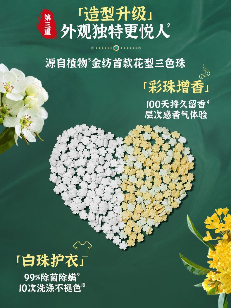 金纺留香珠珠鹅梨+沉香180G+金纺柔顺剂400g*2袋 去静电 不伤衣