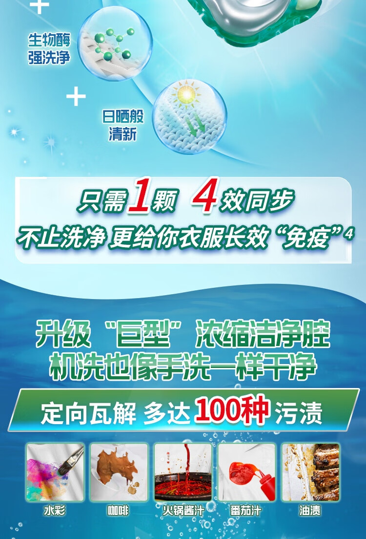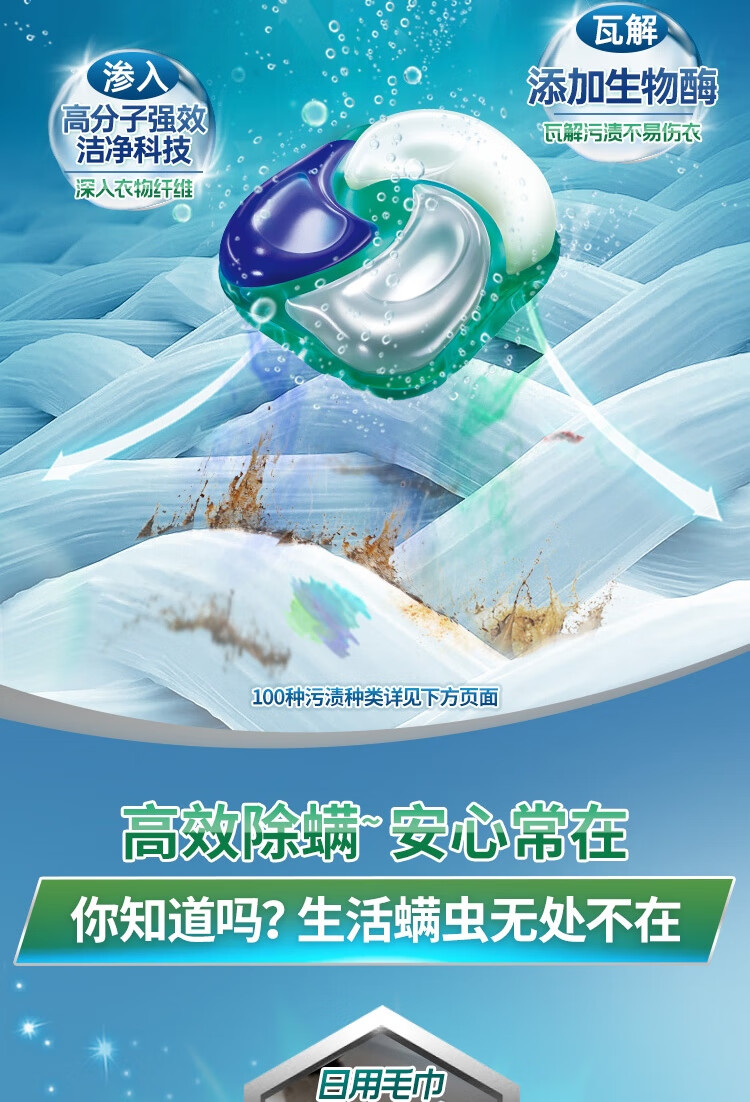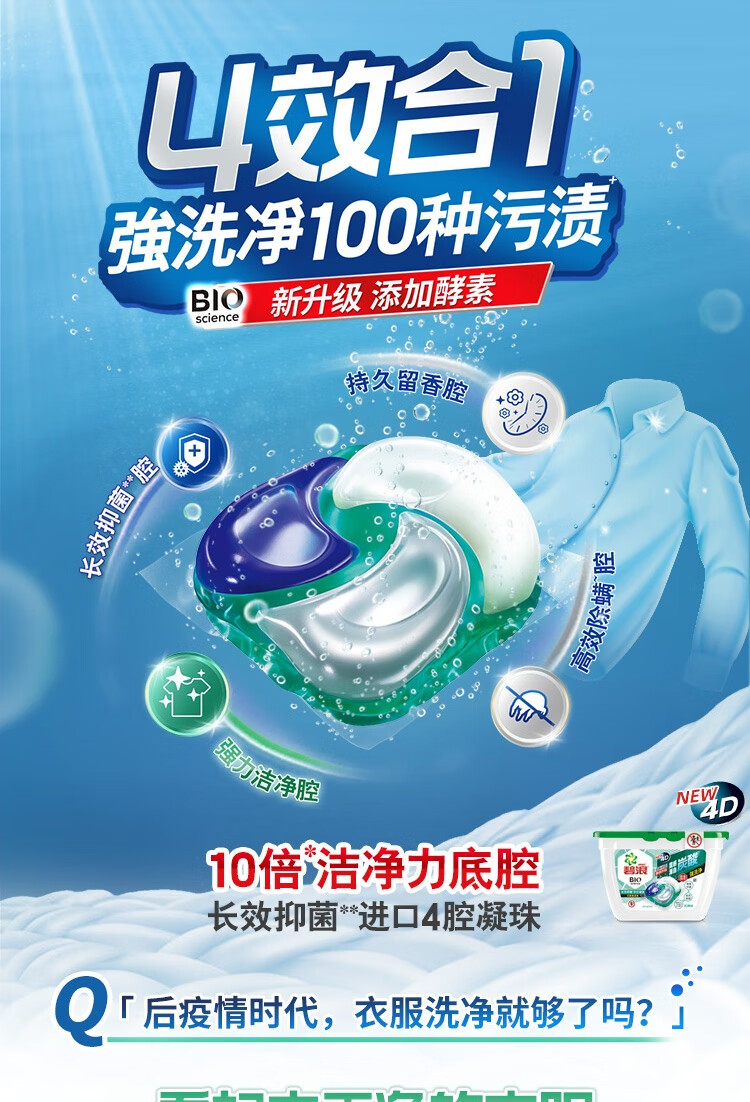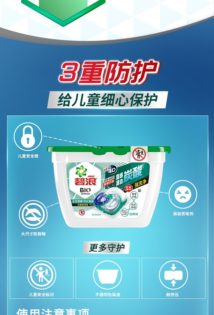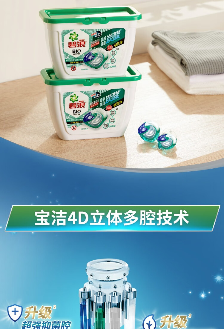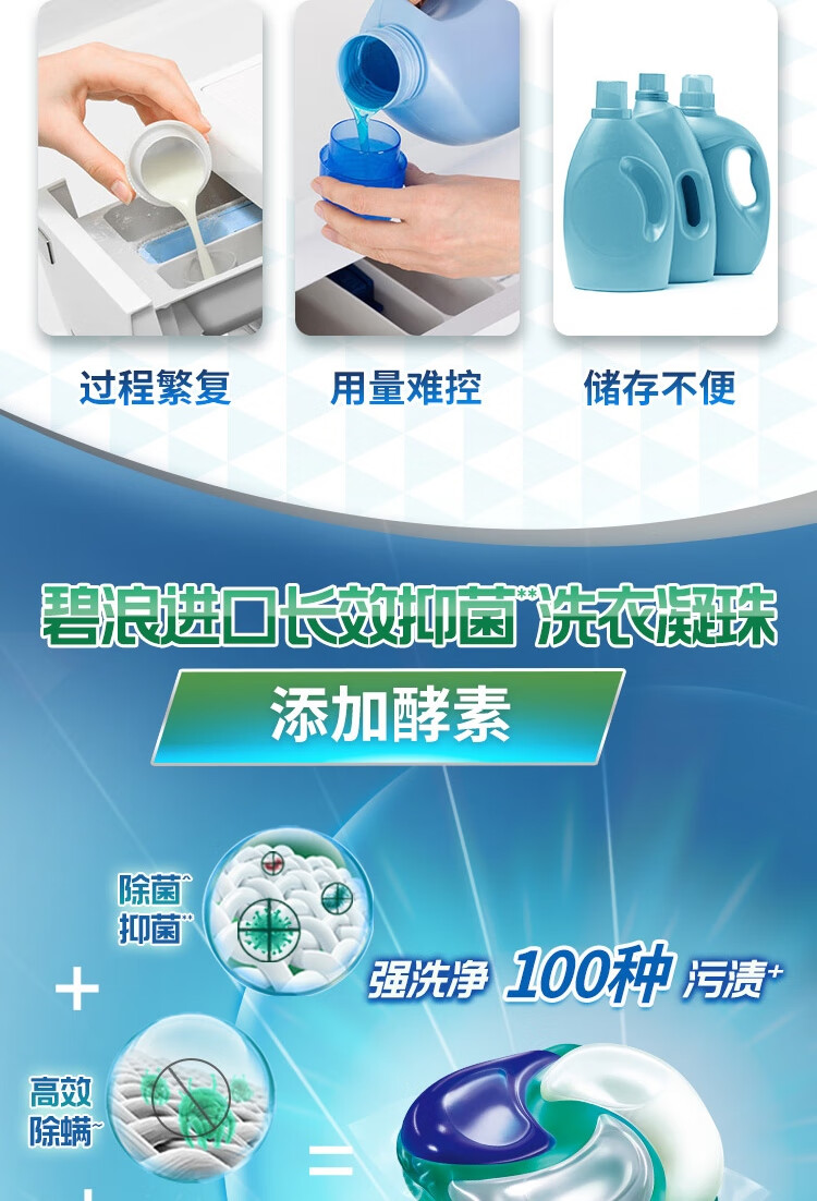 碧浪洗衣凝珠40颗杀菌抑菌除螨持久留香深层洁净进口洗衣珠家庭装
