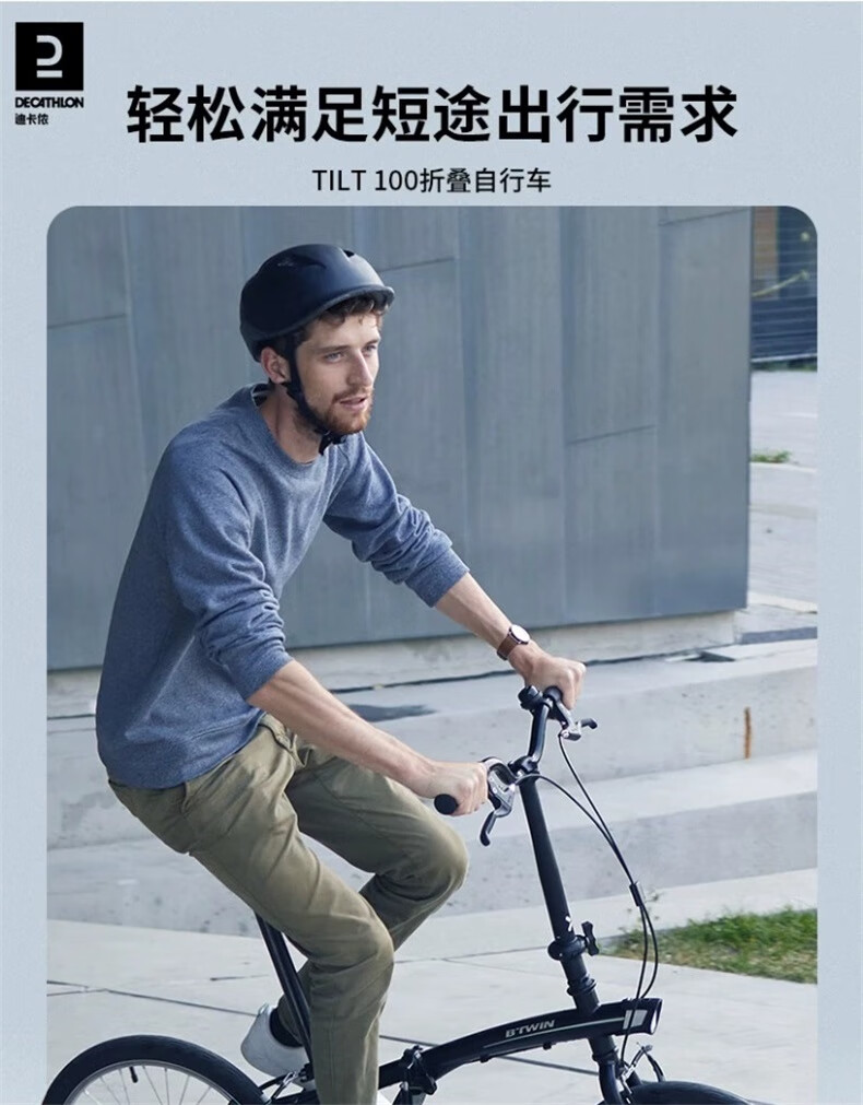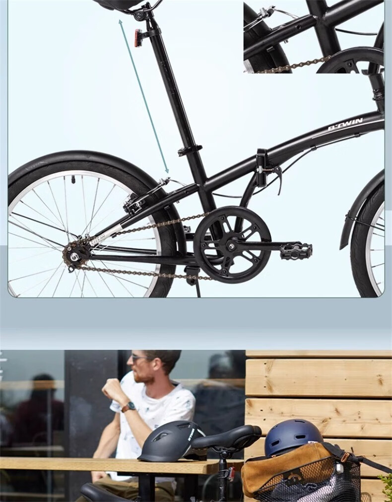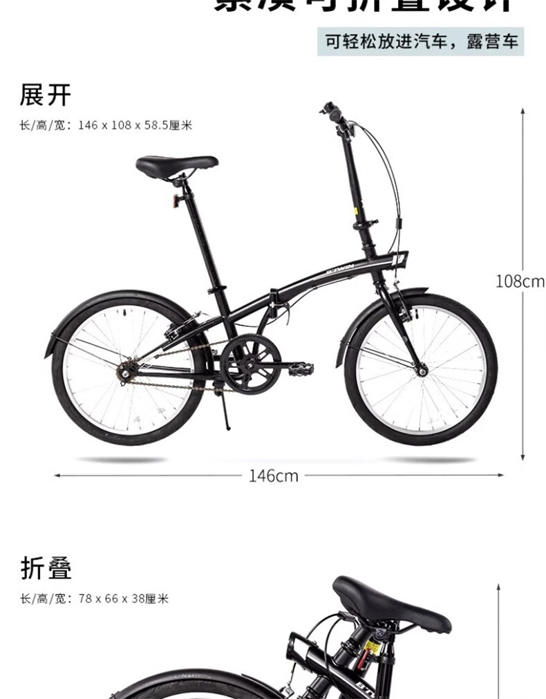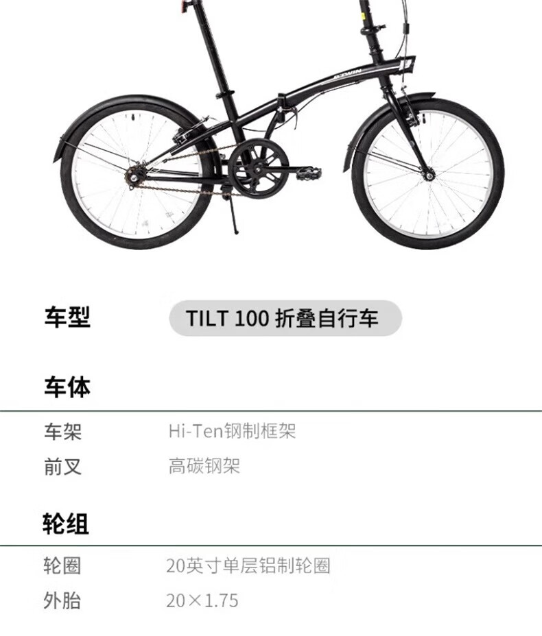 迪卡侬TILT100折叠车20寸男女轻便便携城市通勤上班轻量单车OVB1 黑色 20英寸