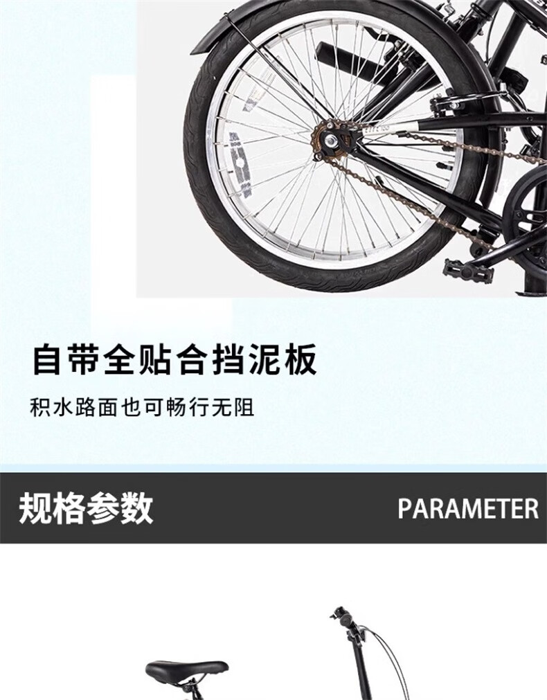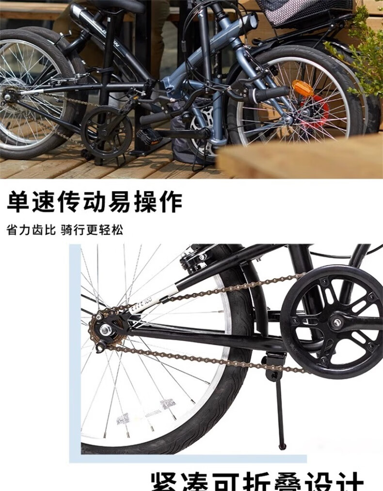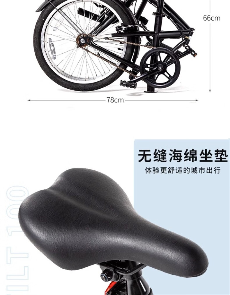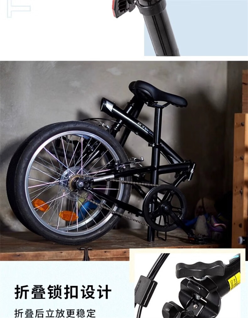 迪卡侬TILT100折叠车20寸男女轻便便携城市通勤上班轻量单车OVB1 黑色 20英寸