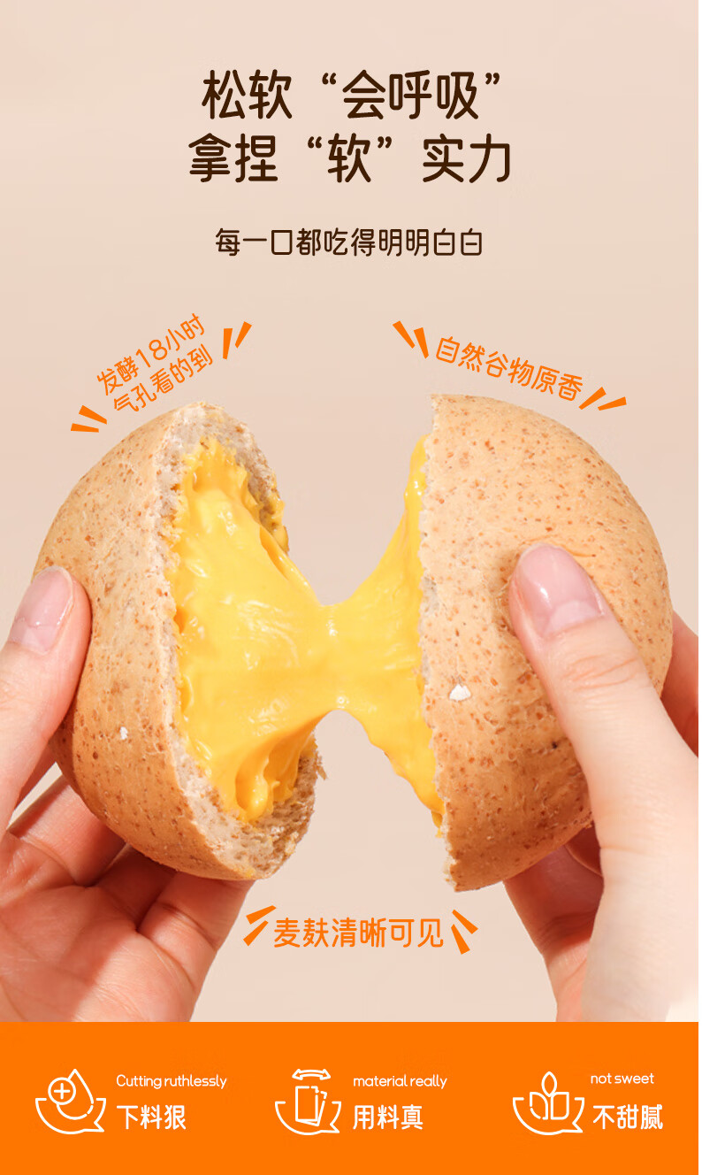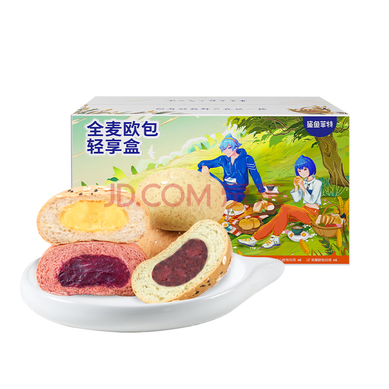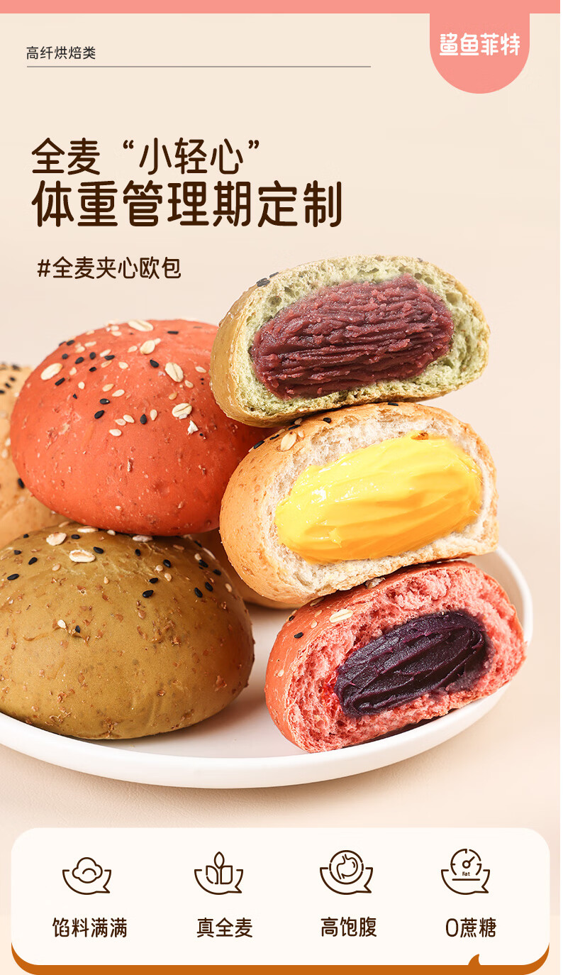 鲨鱼菲特 全麦面包欧包 奶酪夹心无蔗糖粗粮健身代餐早餐面包轻享盒共26袋
